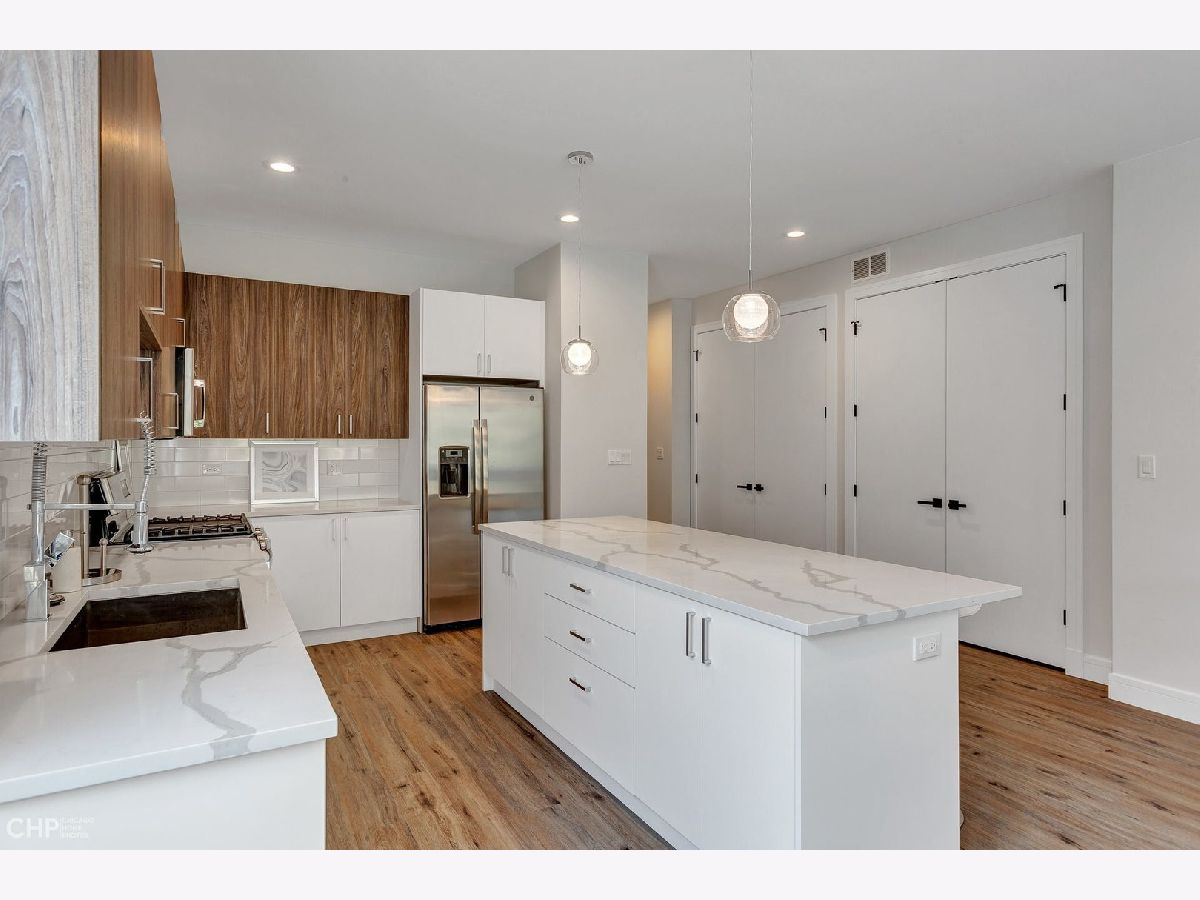 On the Confluence of the West Loop, Little Italy and Medical District, The Monroe offers classic urban intimacy, hyper convenience and transcends Intelligent Design. New Construction Luxury 9 units Boutique building. Wide and Bright 3 Bed/2 Bath simplex with tons of natural light, LVT flooring, spacious living room with dedicated space for dining, modern flat panel cabinetry, large island, stainless appliances, quartz countertops and full backsplash. Guest bedrooms that can accommodate queen sized beds and a generous primary suite including the primary suite with walk in closet and spa-level bath with double vanity. Large rear deck plus PRIVATE ROOFTOP DECK with amazing views. Window treatments & closet organizers included- designer selected lighting and tile for beautiful presentation. Garage parking included and ready to Move-in. Short walk to blue line, Pete's Grocery and Tri-Taylor/West Loop amenities! Member of development group is licensed IL broker.