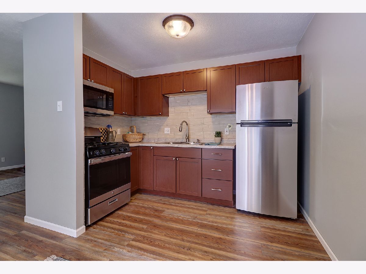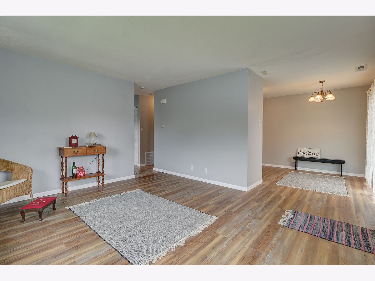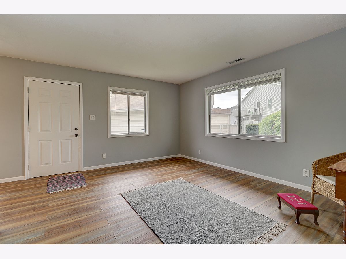 NEW, NEW, NEW! Completely remodeled RANCH condo with lovely views of open green space featuring walking path! New stylish Pergo flooring and carpet, plus ceramic flooring Laundry Area and remodeled Bath! New white woodwork and 6 panel doors though out, BRAND NEW Kitchen cabinets, backsplash, countertops, and Stainless Kitchen Appliances! Nice eating area with patio door to fenced patio area! Bedroom #1 has 2 closets! This unit location has no other units above it and the complex features a clubhouse which can be reserved for private gatherings! With easy access to shopping, restaurants, and I-55, why rent?