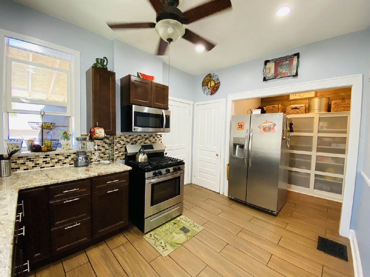 Gorgeous and timeless, newly updated brick home located in beautiful sought after Little Village. This home will immediately captivate you as you walk into your own private gated entrance with it's beautiful landscape and new concrete sidewalk. As you walk up the brand new front covered porch, you will notice the stunning original stained glass window. Updated throughout, you'll walk into the sun filled living room and you'll immediately notice the high ceilings, bay windows and the stunning original historical Victorian style staircase that has been updated but kept original. This home features 4 bedrooms, 1.5 bath, living room,, large fully updated kitchen featuring new 36" cabinets, granite countertops, stainless steel appliances, recessed lighting and a huge open walk in pantry. Combined dining room with built in dry bar, large separate dining room, and gorgeous newly remodeled luxurious full bathroom with tiled walk in shower. This home features new laminate flooring as well as the original hardwood flooring. Painted in modern colors. Nothing to give up in this spacious two-level home with a full walk out unfinished basement that also features a bathroom rough-in that is ready for your finishing touches to add even more space. The possibilities are endless. Let's not forget the huge brand new back porch where you can envision spending your warm summer nights. The backyard features a huge fenced in yard with a new concrete slab. There is plenty of parking space up to 6 cars. Sellers spared no expense renovating on this home. Updated electrical and copper plumbing. New windows. Furnace is 5 years old. Property has been extremely well cared for, therefore seller is selling property AS-IS.