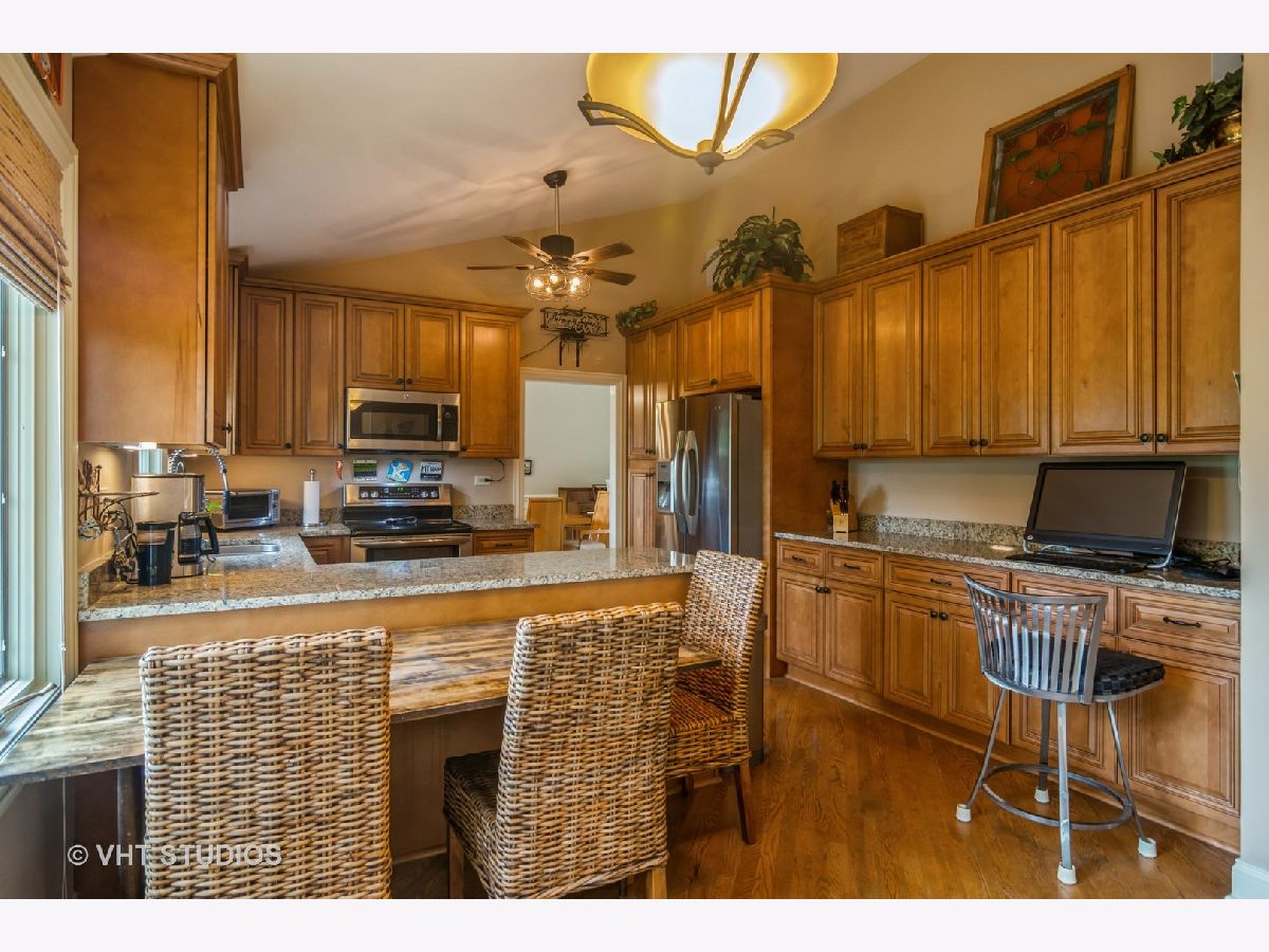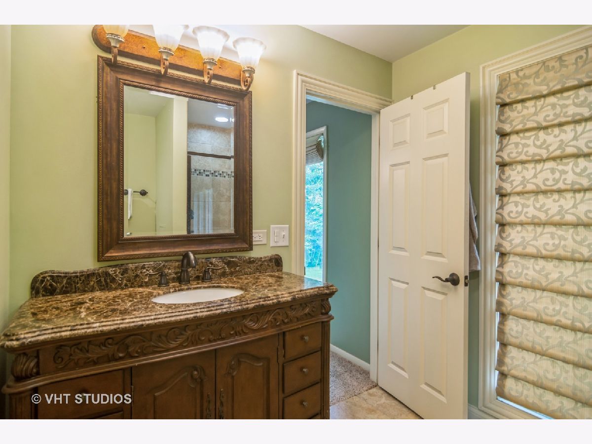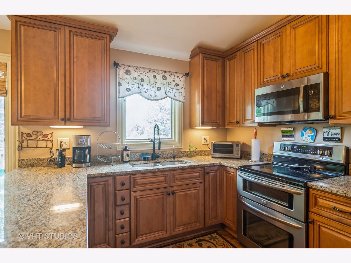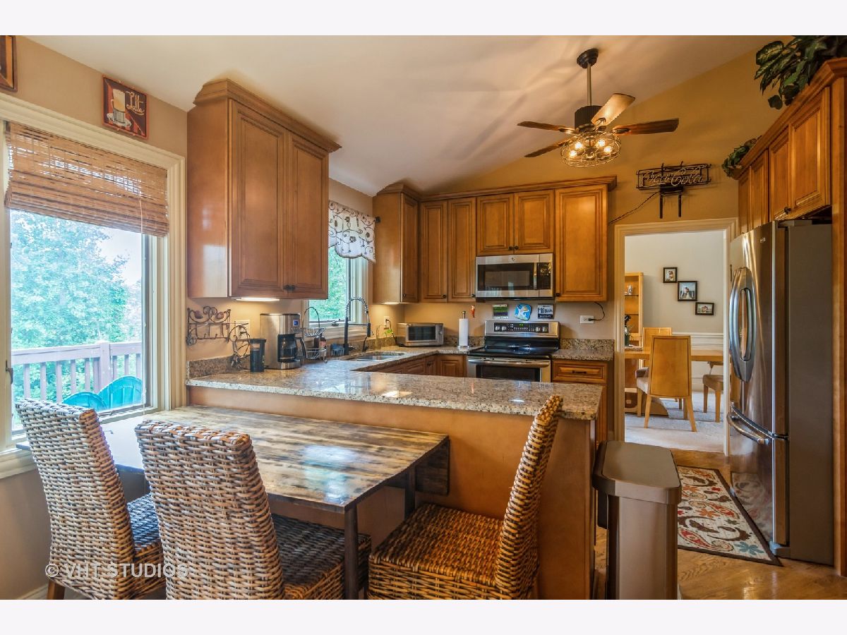The home sits amongst a tree lined property for privacy and tranquility. A truly beautifully appointed home featuring a large eat in kitchen with granite, gorgeous cabinets, buffet bar and stainless steel appliances. Oversized formal living and dining room. Features include stone wood burning fireplace and window cornices with up lighting. Primary suite has updated bathroom with shower and decorative vanity. Great sized secondary bedrooms. Laundry room has work sink, storage and exterior access. The lower level family room has area for a pool table and room for everyone to enjoy. A full updated bathroom and additional bedroom complete the level. Lots of storage options. Outdoor enthusiasts will not be disappointed in the back yard. Enjoy an upper level deck, yard level patio, fire pit and gardening beds. Extra deep garage. Neutral and like new flooring. Enjoy the ease of travel to nearby interstates, shopping, Forest preserves and dining.