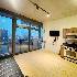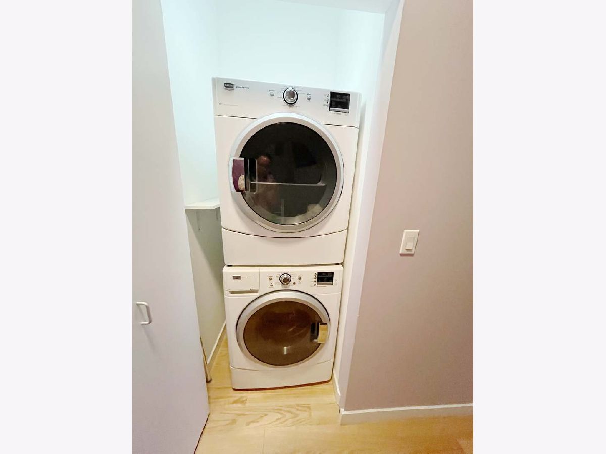 One bedroom One bathroom condo, facing south, a balcony with city and river view. Modern interiors featuring floor-to-ceiling windows, 10-foot ceilings, and exposed concrete accents. In unit washer and dryer. Hardwood floor in living room. Low assessment, all utilities are covered, except for electricity. No rental cap. Great opportunity for the first time home buyer or an investor. New tenant just moved in April 2200 per month. Great investment opportunity.
