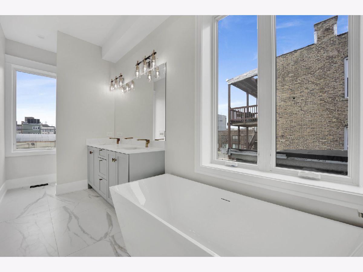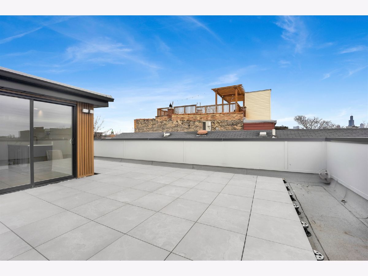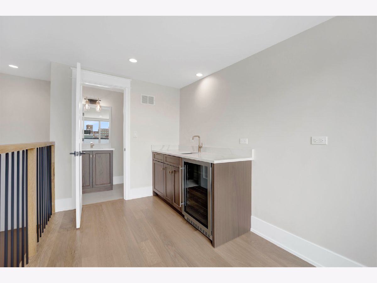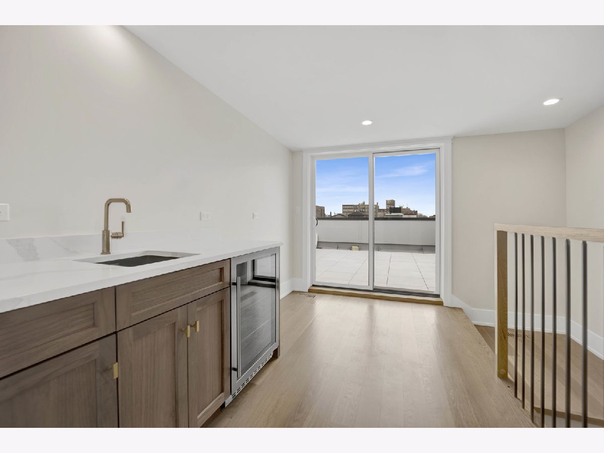 New Construction Modern Transitional Home! Open floor plan with high-end fixtures from Studio 41 and premium finishes. Very bright with oversized windows. The open-concept main level is perfect for entertaining. The open living/dining area features a direct vent gas fireplace with a floor-to-ceiling surround. The chef-quality kitchen includes top-of-the-line Sub-Zero and Wolf appliances, integrated custom cabinetry with Taj Mahal quartz countertops, and a large island with bar seating, plus an eat-in kitchen. The upper-level primary suite has a walk-in closet and an ensuite bath featuring a freestanding tub, frameless glass shower, dual sinks, and heated flooring. Two additional bedrooms, a full bath with a tub and dual sinks, and a separate laundry room with a washer, dryer, and sink complete this level.The third floor includes a wet bar and a half bath, opening to a roof deck with city views. The finished lower level offers a spacious recreation room complete with a wet bar, a fourth bedroom with large closets, a full bath with an oversized shower, and a utility closet. The rear balcony includes a staircase leading down to a stone patio and garage. Located in prime West Town, this home is close to restaurants, shopping, entertainment, and Smith Park! Enjoy easy access to public transportation and nearby neighborhoods.