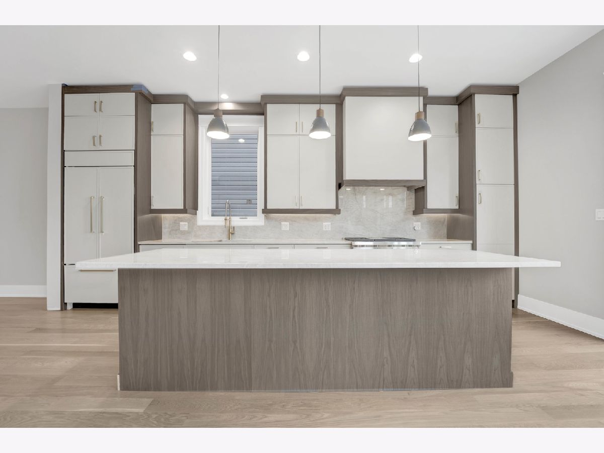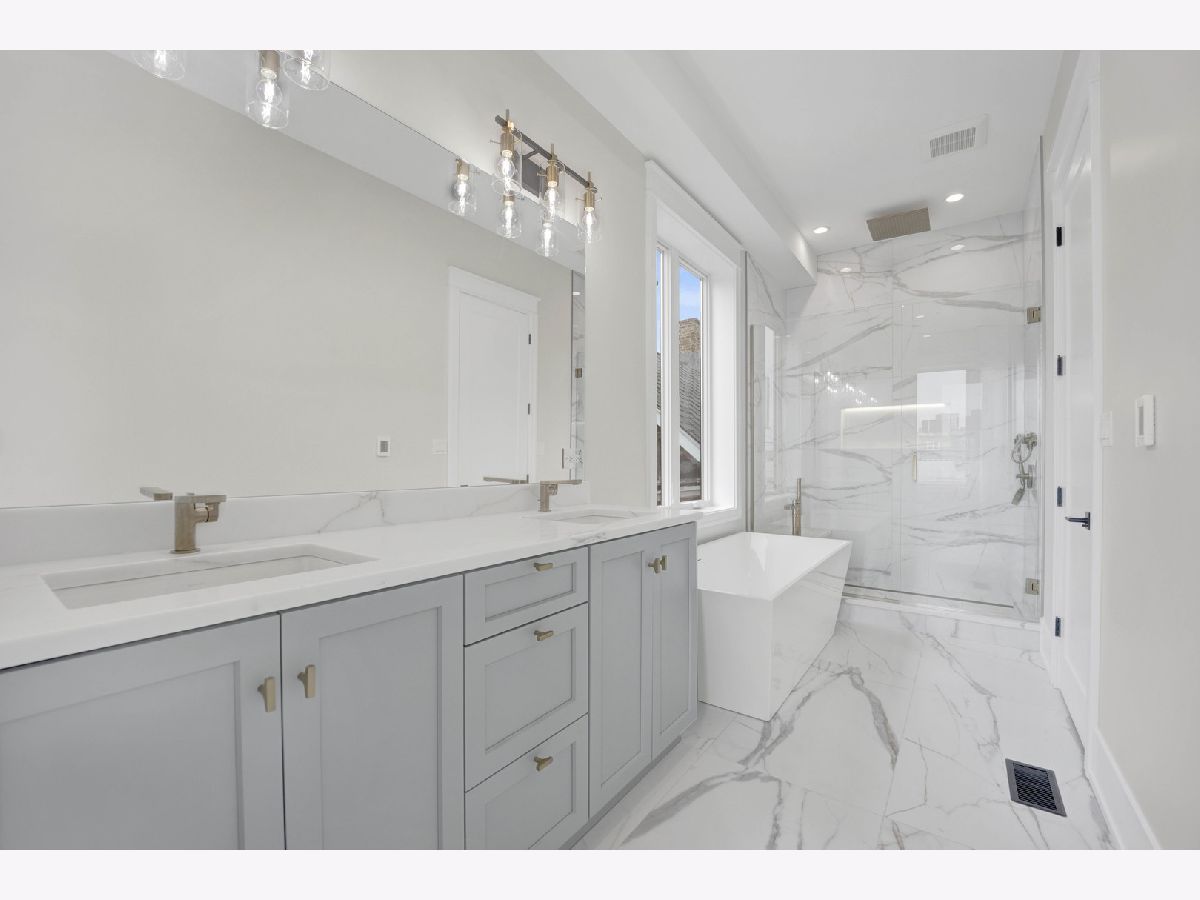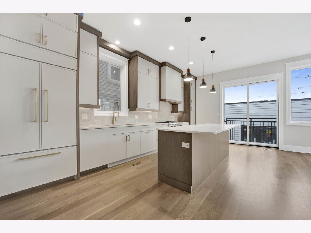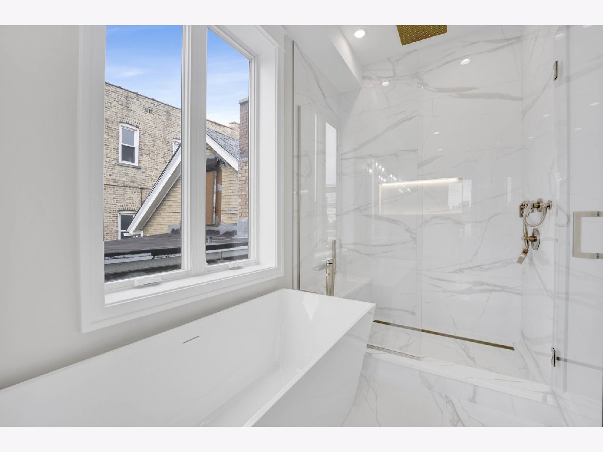 New Construction Modern Transitional Home! Open floor plan with high-end fixtures from Studio 41 and premium finishes. Very bright with oversized windows. The open-concept main level is perfect for entertaining. The open living/dining area features a direct vent gas fireplace with a floor-to-ceiling surround. The chef-quality kitchen includes top-of-the-line Sub-Zero and Wolf appliances, integrated custom cabinetry with Taj Mahal quartz countertops, and a large island with bar seating, plus an eat-in kitchen. The upper-level primary suite has a walk-in closet and an ensuite bath featuring a freestanding tub, frameless glass shower, dual sinks, and heated flooring. Two additional bedrooms, a full bath with a tub and dual sinks, and a separate laundry room with a washer, dryer, and sink complete this level.The third floor includes a wet bar and a half bath, opening to a roof deck with city views. The finished lower level offers a spacious recreation room complete with a wet bar, a fourth bedroom with large closets, a full bath with an oversized shower, and a utility closet. The rear balcony includes a staircase leading down to a stone patio and garage. Located in prime West Town, this home is close to restaurants, shopping, entertainment, and Smith Park! Enjoy easy access to public transportation and nearby neighborhoods.