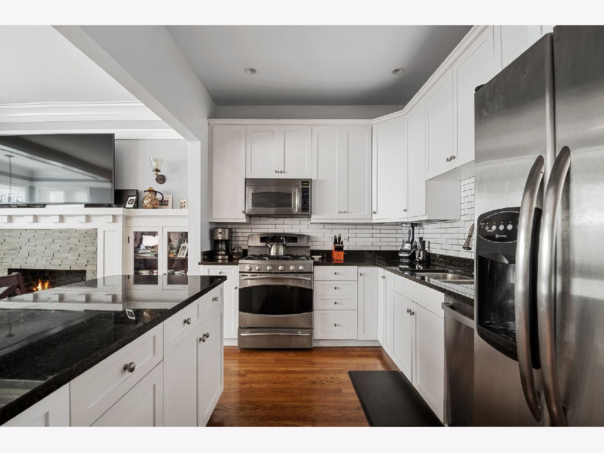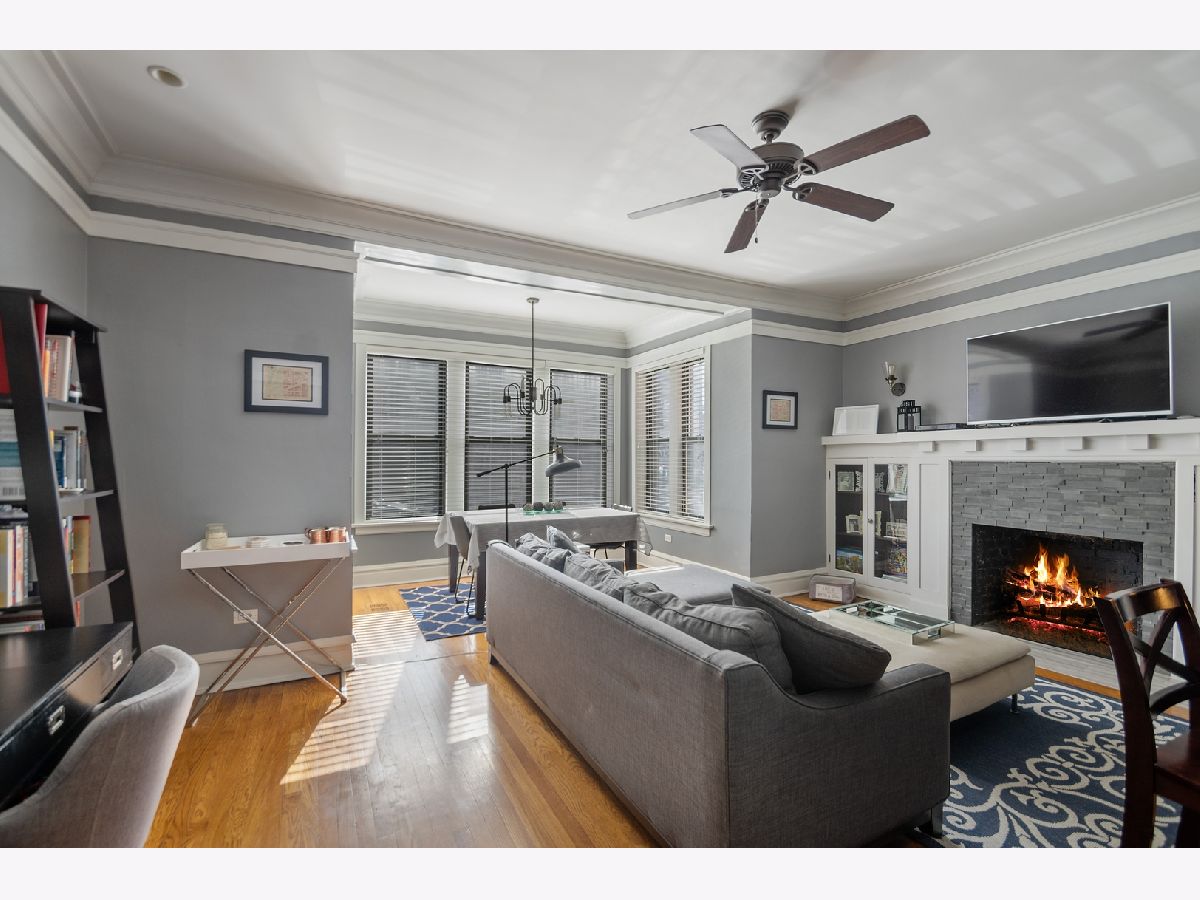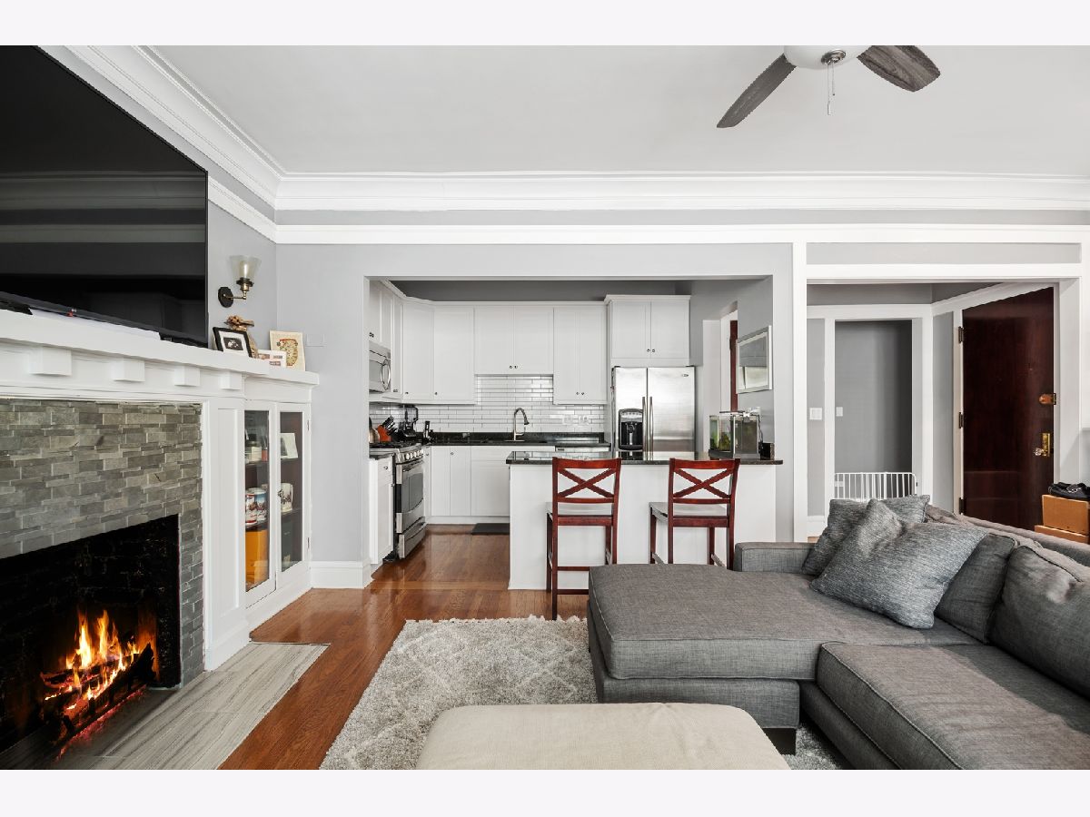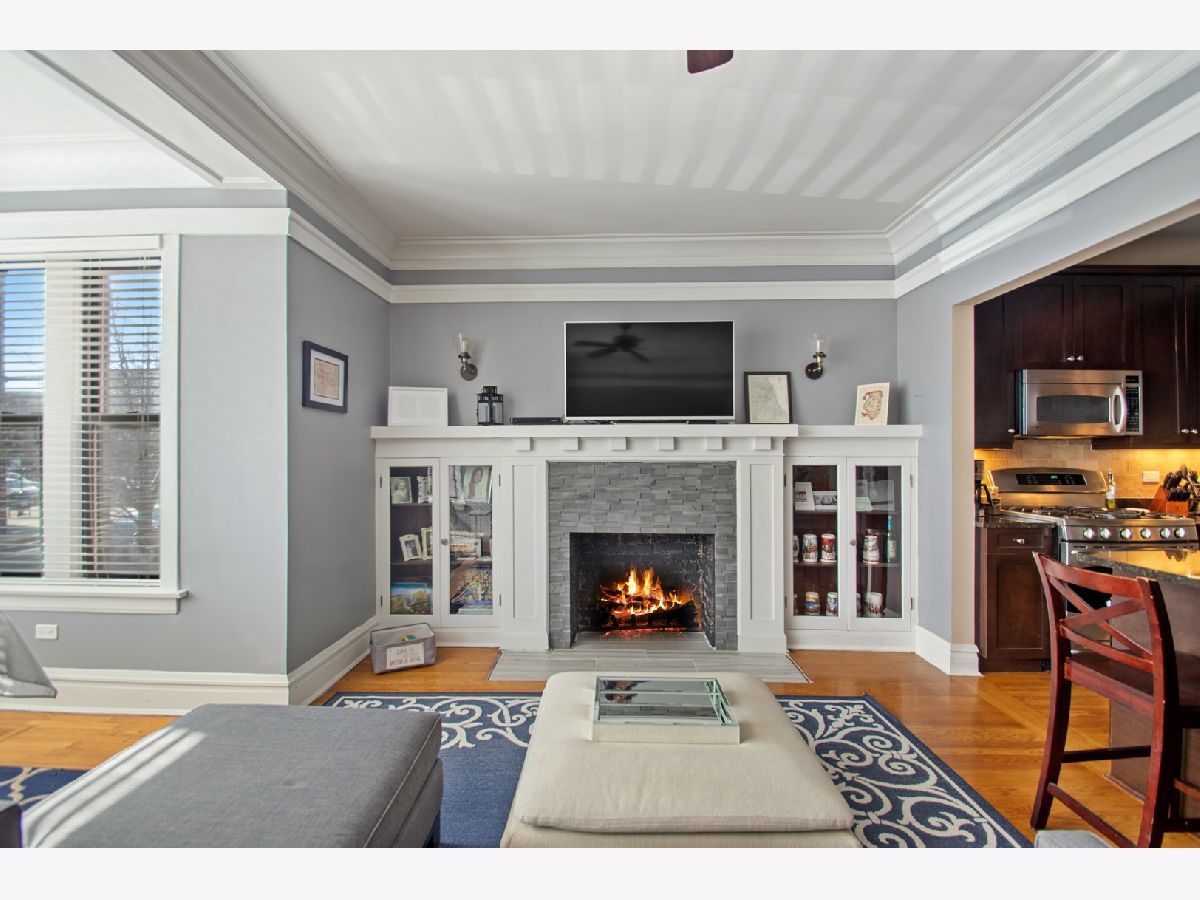 BEAUTIFUL SOUTH-FACING CONDO IN THE HEART OF LINCOLN SQUARE! Lots of updates, including a fully renovated Master Bath. The perfect balance: handsome vintage details, high ceilings & modern finishes. Luxurious trim, original custom mantel & bookcases with fireplace. Large, open layout ideal for entertaining. Sunny separate dining space with new double paned windows. Spacious kitchen with big island open to living area, large cabinets, stainless steel appliances & ample storage. Natural stone baths, new stackable in-unit WD, large back deck & additional storage! Move-in ready unit in a very well managed building. Just a short walk to Starbucks, Welles Park, CTA train & all the best of Lincoln Square amenities!