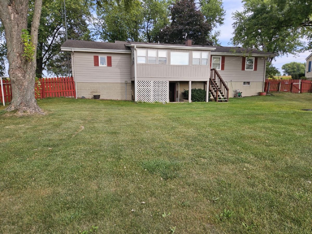 Settled just outside of town on 1/2 acre, this 3 bedroom, 2 bath ranch home has so much to offer! Great curb appeal with a welcoming front porch! Step inside to the spacious living room with a triple window to enjoy the country views! You will find beautiful hardwood floors throughout most of the main level of the home, including the three bedrooms, all with closets and abundant windows for natural light! The full bath has a tub/shower and its own linen closet. There's room for your dining set in the eat-in kitchen with plenty of cabinetry, counter space, a pantry closet, and all the stainless steel appliances stay! Off the kitchen, through the sliding glass doors, you will enjoy the four-season sun room overlooking the nicely landscaped fenced-in back yard complete with a beautiful in-ground heated swimming pool surrounded by a fabulous patio. So tastefully done! This pool is approximately 22' X 35', has a diving board and spans from 3' - 9' in depth. The storage shed will house your lawn, garden, and pool equipment! The exterior of the home was freshly painted in 2023. The 1.5 car garage will allow you more storage as well! When you finish enjoying the outside activities, there's a finished basement with a family room, entertainment area, 2nd full bath, storage room, laundry, and a possible fourth bedroom, exercise room, office, or craft room. Exterior access to the back yard a plus! No back yard neighbors, close to Sycamore Park and a short drive, bike ride or walk to downtown Sycamore! Close proximity to the Great Western Trail right up the road! A little bit of country with the convenience of being close to town! Cash or Renovation Financing Only. Short Sale Approved at List Price, Should Make for a Quicker Close! Multiple Offers Received. Highest and Best Offers Due Wednesday April 2nd at 12pm.