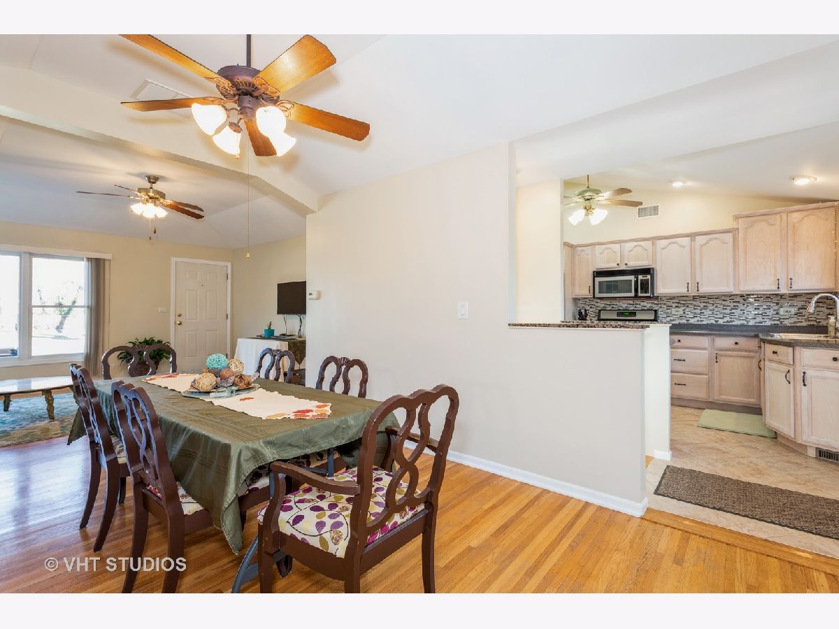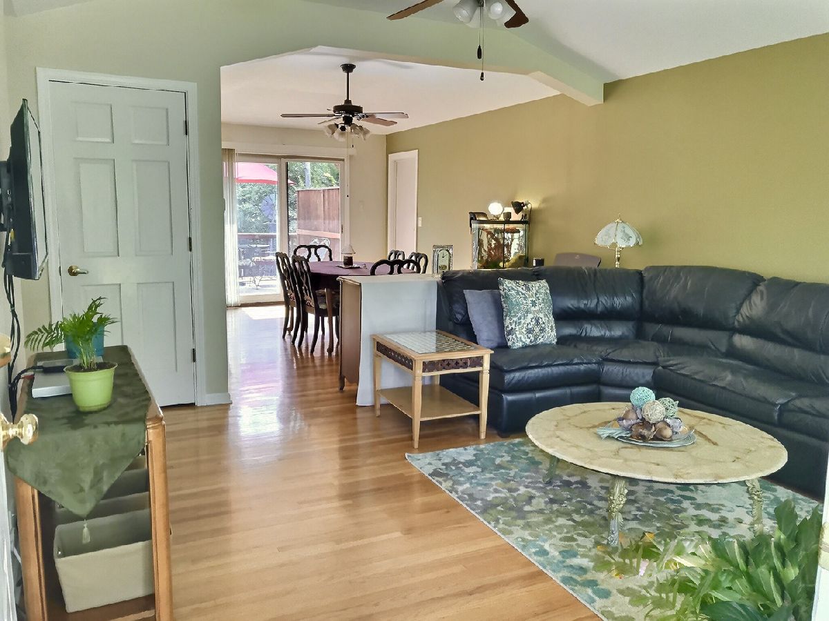 Beautiful updated brick ranch with 3 bedrooms and 2 bath. (2nd bathroom is in the partially finished, full basement. ) Home has hardwood floors throughout. The living and dining room have trey ceilings with tons of natural light. Kitchen has beautiful Corian counter tops, plenty of cabinet storage, a work area wired for a computer, porcelain floor tile, cathedral ceiling, skylight, and stainless steel appliances. Master has double closets and trey ceiling. Bathroom has a drop down counter for additional counter space. Home has a full basement, partially finished with family/recreation room, a full bathroom, a wet bar, wired speakers, and carpeting. The other half of basement has washer and dryer, double sink, and tons of storage space. Fans throughout the home. Yard has a low maintenance, composite deck with privacy wall. Paver walkway that leads to your own fire pit. The end of the yard beds up to a creek with wooded area for privacy. No overhead electric wires as they are buried. Deep one car garage with built in storage. Driveway holds an additional 3 cars. Home is located at the end of a dead end street. Close to forest preserve, walking paths, shopping, and the highway. Beautiful, well meticulously maintained home. Move in ready. Come see for yourself!!