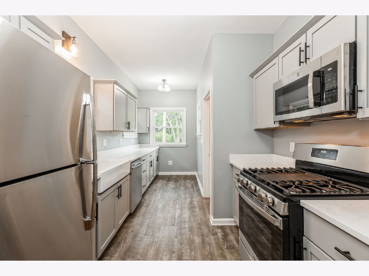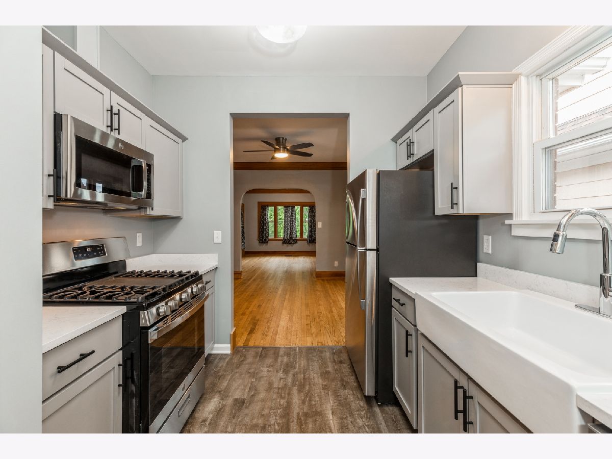 All Brick COMPLETELY REHABBED 1,035 sq. ft. of UPDATED WOW!!! 2 bedroom, 1 bath. All of the old world charm; decorative fireplace, cove moulding, arched doorways, tall ceilings. All of the modern conveniences, newer windows, refinished hardwood floors, new furnace, newer hot water heater. Magnificent Kitchen, with new cabinetry, stainless steel appliances, quartz counter tops, farm sink, wood laminate flooring. STUNNING bath. Side drive. Solid block 2 car garage. Serene setting with beautiful park like setting behind the home. HURRY, you know how the market is. This one will be ...G O N E ! ! ! ! !