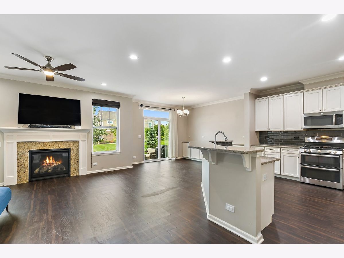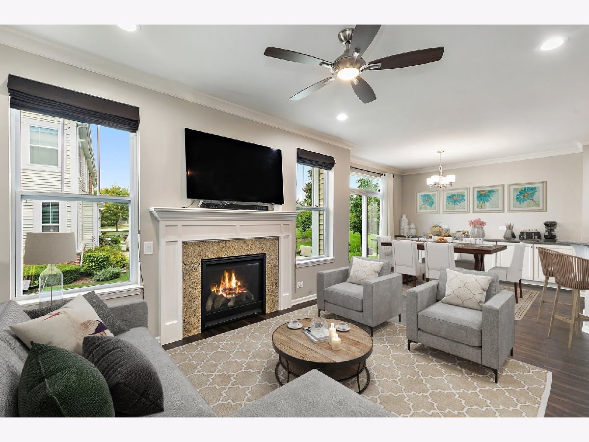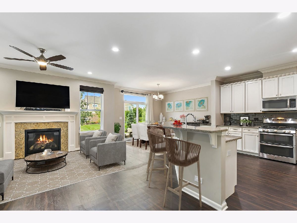 Nothing to do but move in! Gorgeous and fully upgraded former model home in desirable Lexington Hills. Attractive curb appeal and a covered porch. Inside, you'll be met with rich new Luxury Vinyl Plank flooring, crown molding, canned lights, and tons of natural sunlight through the open-concept floorplan. The living room showcases a cozy fireplace with gas logs. Adjoining the living room are the dining area and the kitchen ~ ideal layout for entertaining! The beautiful kitchen boasts granite countertops, tile backsplash, stainless steel appliances, and a large tiered island with breakfast bar seating. Tons of cabinet space for ample storage! A half bath completes the main level. Upstairs, the spacious master suite is accented by crown molding and features a private master bathroom with double sink vanity and a large frameless glass step-in shower. Huge walk-in closet. The 2nd and 3rd bedrooms are both generously sized and share access to the full hall bath. Convenient 2nd floor laundry with a utility sink! The 2nd floor also features a loft space. The finished basement adds even more living space and features your very own home theater (projector, screen, and sound equipment will stay)! Attached two-car garage. The backyard features a large concrete patio, complete with beautiful patio furniture and a propane grill that are included in the sale! Great location in a quiet neighborhood, down the street from a park, and just a stone's throw from the forest preserve! Convenient access to highways, the Metra, shopping, dining, and more. This one has it all... WELCOME HOME!