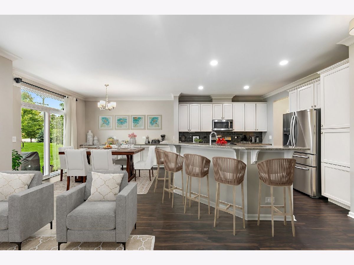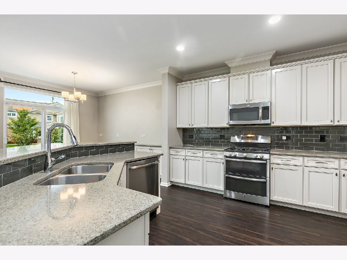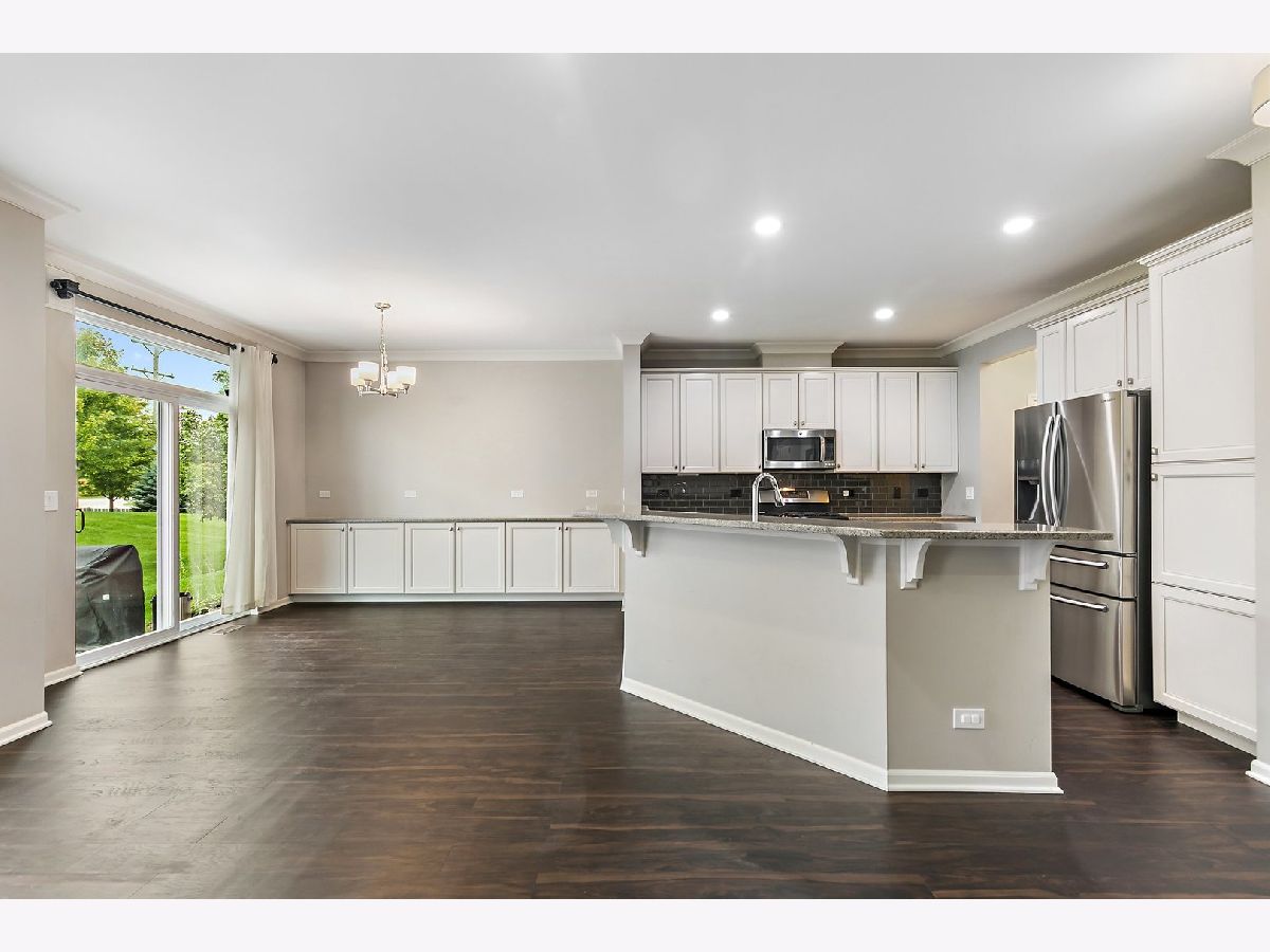 Nothing to do but move in! Gorgeous and fully upgraded former model home in desirable Lexington Hills. Attractive curb appeal and a covered porch. Inside, you'll be met with rich new Luxury Vinyl Plank flooring, crown molding, canned lights, and tons of natural sunlight through the open-concept floorplan. The living room showcases a cozy fireplace with gas logs. Adjoining the living room are the dining area and the kitchen ~ ideal layout for entertaining! The beautiful kitchen boasts granite countertops, tile backsplash, stainless steel appliances, and a large tiered island with breakfast bar seating. Tons of cabinet space for ample storage! A half bath completes the main level. Upstairs, the spacious master suite is accented by crown molding and features a private master bathroom with double sink vanity and a large frameless glass step-in shower. Huge walk-in closet. The 2nd and 3rd bedrooms are both generously sized and share access to the full hall bath. Convenient 2nd floor laundry with a utility sink! The 2nd floor also features a loft space. The finished basement adds even more living space and features your very own home theater (projector, screen, and sound equipment will stay)! Attached two-car garage. The backyard features a large concrete patio, complete with beautiful patio furniture and a propane grill that are included in the sale! Great location in a quiet neighborhood, down the street from a park, and just a stone's throw from the forest preserve! Convenient access to highways, the Metra, shopping, dining, and more. This one has it all... WELCOME HOME!