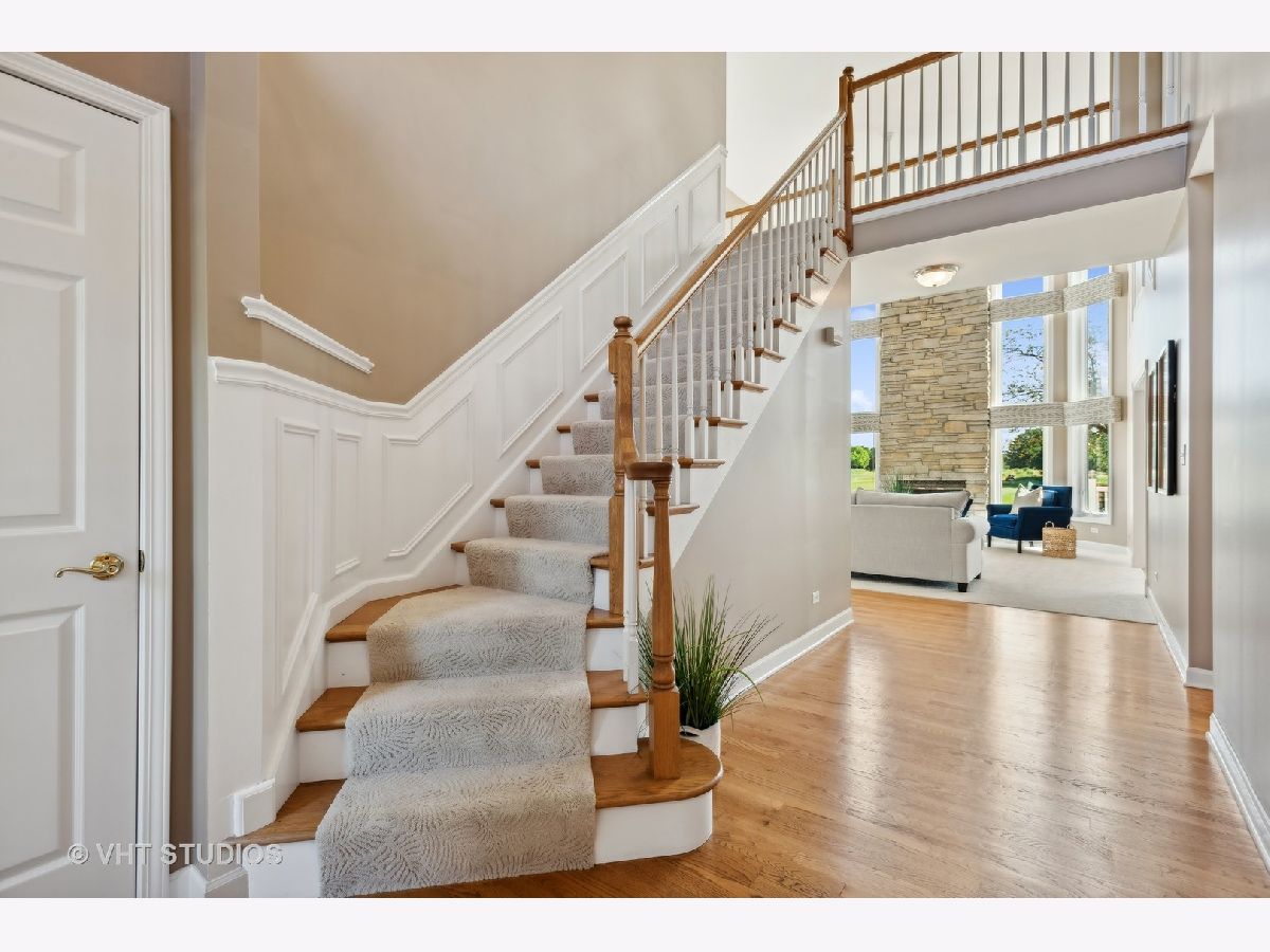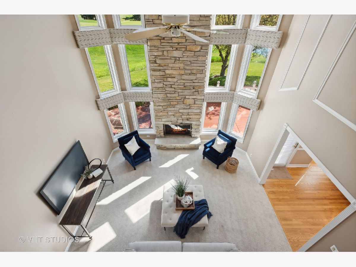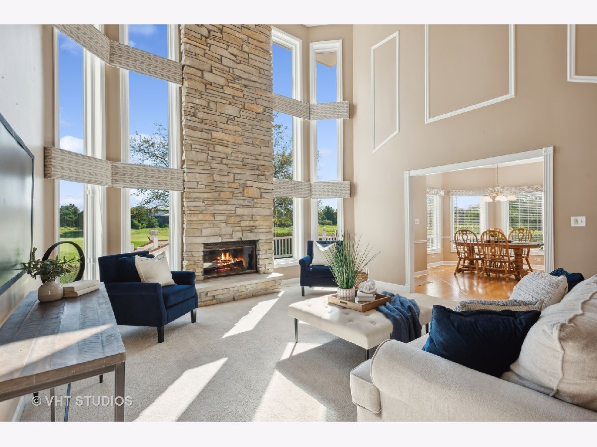 Welcome to this stunning 4-bedroom, 2.5-bathroom home located on one of the most beautiful, cul-de-sac lots in The Glen neighborhood of Stonebridge. As you enter, you'll be greeted by the two story, floor to ceiling windows in the living room overlooking the picturesque 3rd green of Stonebridge Country Club's golf course. The first floor has gorgeous hardwood floors that flow throughout the foyer and expansive eat-in kitchen that is big enough to accommodate large gatherings with family and friends. The kitchen is light and bright with plenty of cabinet and pantry space, and an island built for meal prep, homework help or late-night snacks. The kitchen flows directly into the lovely dining room that can accommodate a dinner party of 10 or more. Step into the living room and relax by the fireplace, or step outside to enjoy the tranquil water views from the deck or stamped concrete patio. The views of the golf course continue as you head into the first-floor primary bedroom ensuite with a large, jetted tub, separate shower, and walk-in closet. The second floor is home to 3 additional bedrooms and full bath with double bowl vanity and separate shower/toilet area - ideal for today's busy family. The finished basement provides additional living space, perfect for a home office, gym, or entertainment area and a utility area ideal for storage and/or a hobbyist. With an in-ground sprinkler system, brick/hardie board exterior, trex composite decking and an HOA that takes care of all lawn maintenance and snow removal, this home is perfect for those seeking to take back their weekends and enjoy maintenance-free living! Don't miss out on this rare opportunity to own a home in this desirable neighborhood with top-notch amenities and District 204 schools. Welcome Home!