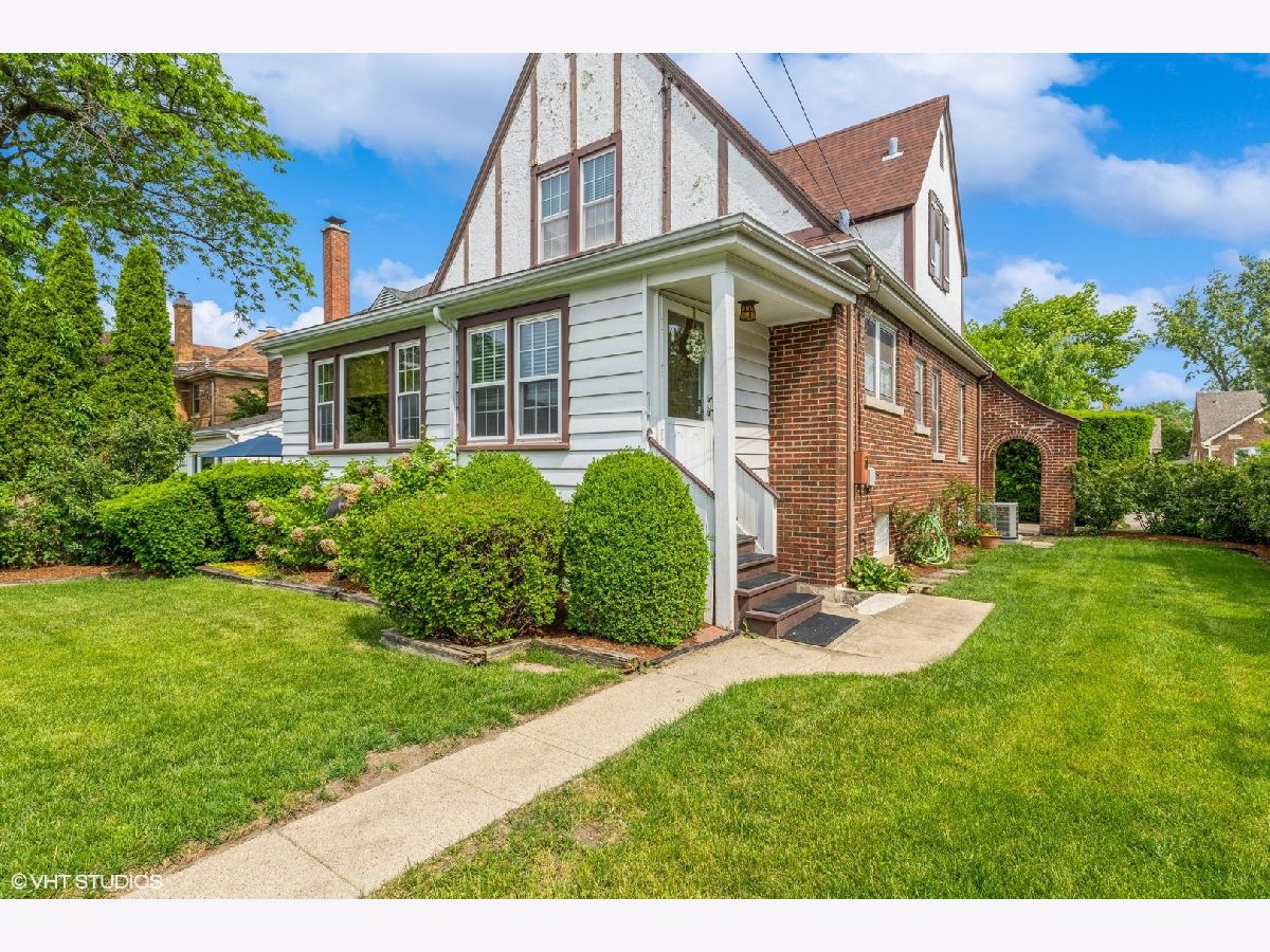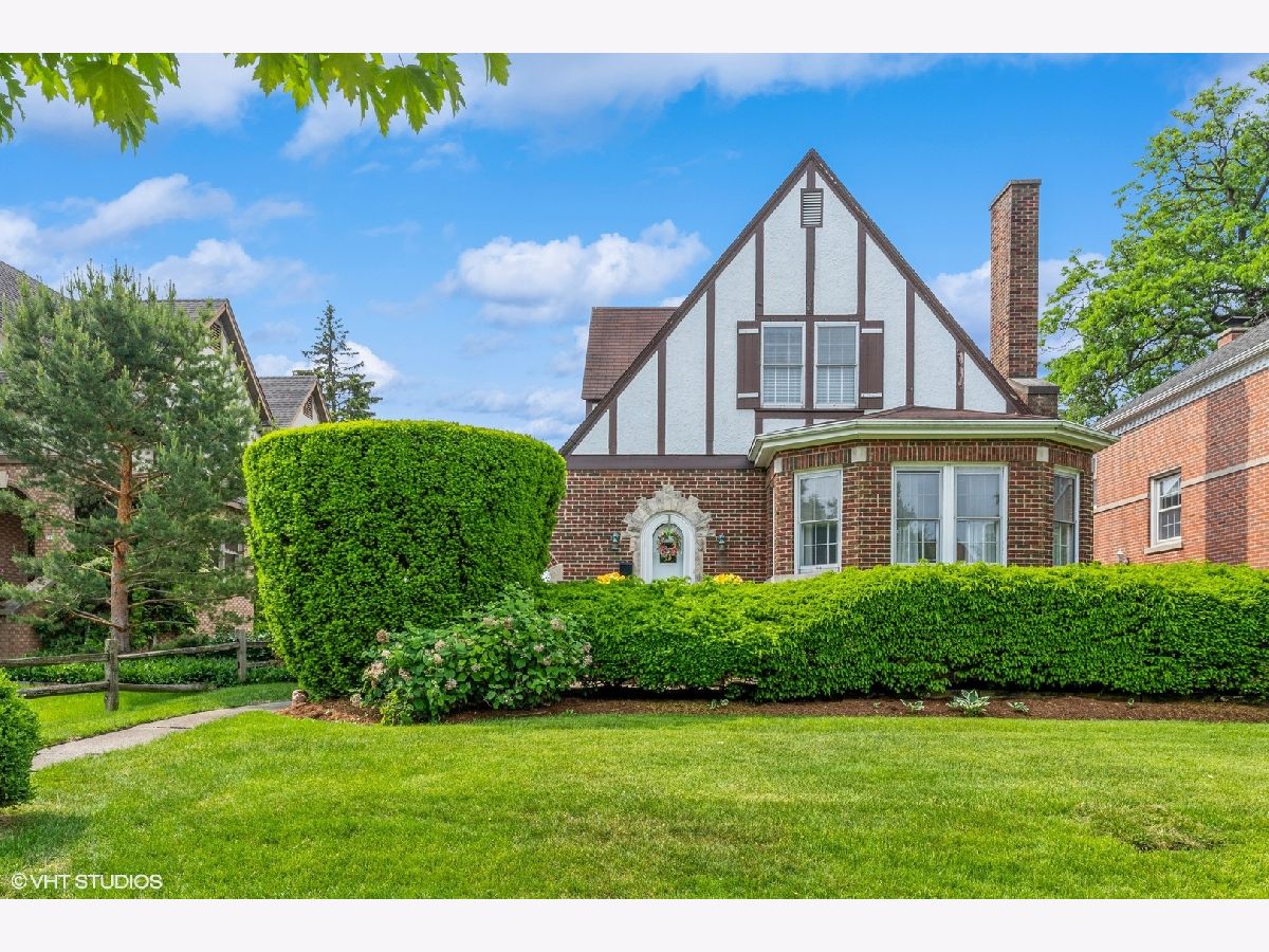 Charming brick English-style home nestled on a quiet, two-block-long street in a prime Park Ridge location. The first floor offers a spacious living room with a wood-burning fireplace, a formal dining room with views of the beautifully landscaped yard, kitchen with an adjacent cozy breakfast room, and a main-level bedroom with a convenient powder room. Upstairs, you'll find a full bathroom and two additional bedrooms-each with unique L-shaped closet space. The finished basement features a large recreation room, laundry area, utility/work room, and an additional storage space as well as exterior access. Recent updates include a new furnace (2023), many newer thermal-pane windows, and a 2-car garage (2001). Enjoy the lovely side yard and a private, fenced backyard with a charming patio area next to the garage-perfect for relaxing or entertaining. Ideally located near Edison Park dining, South Park shopping, Uptown Park Ridge, Hidden Park, and Dairy Queen. Zoned for highly rated Roosevelt Elementary, Lincoln Middle School, and Maine South High School.
