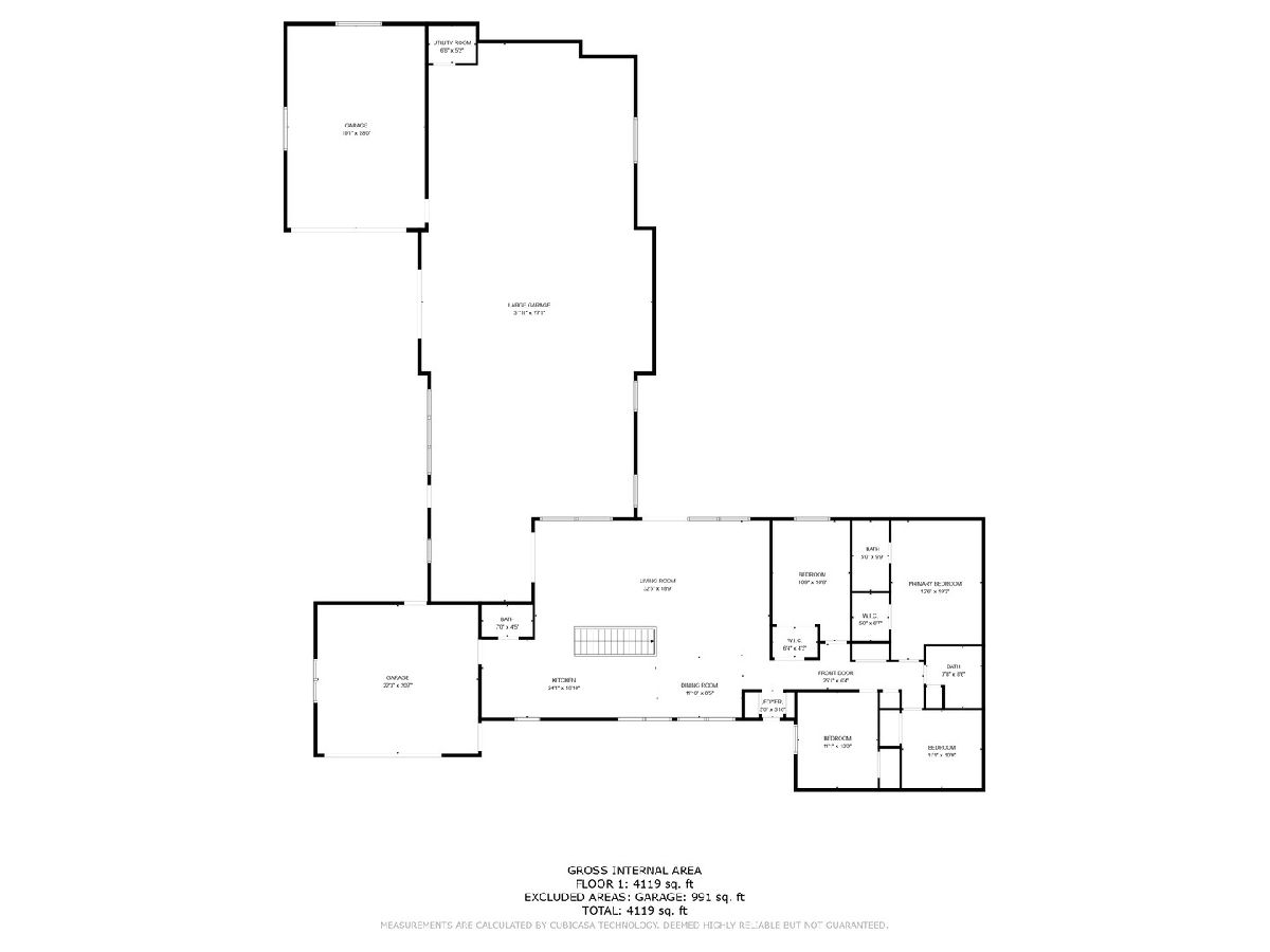 Opportunity Knocks! Large 4 bedroom ranch on .86 acre lot in area of large expensive homes. Open living room, dining room and kitchen with dramatic cathedral ceiling. Kitchen was remodeled years ago with modern cabinets, granite countertops and stainless appliances. Powder room was nicely remodeled at the same time. Huge rear addition constructed as a heated and cooled garage for a car collection, this area can be used as a family room, new primary suite, related living, home office, gym, studio, indoor pool, etc. There are endless possibilities to transform this home to your lifestyle. There are two 2 car attached garages and a partial basement that is unfinished. Being sold "AS IS". This house needs work or is a possible tear down to build your dream home in an area of $2M+ homes. Lot is approximately 133 x 282. Also, listed under Land.