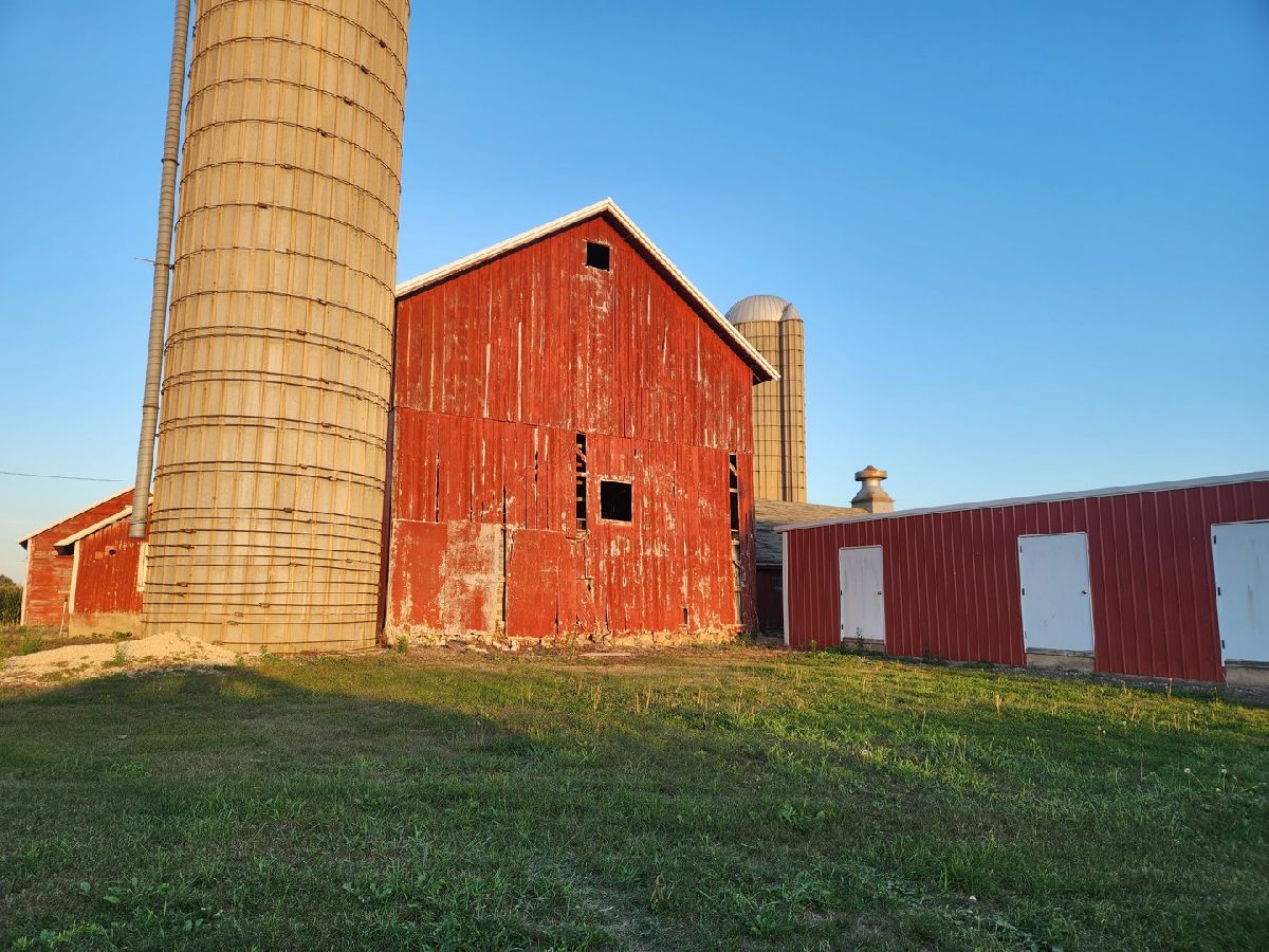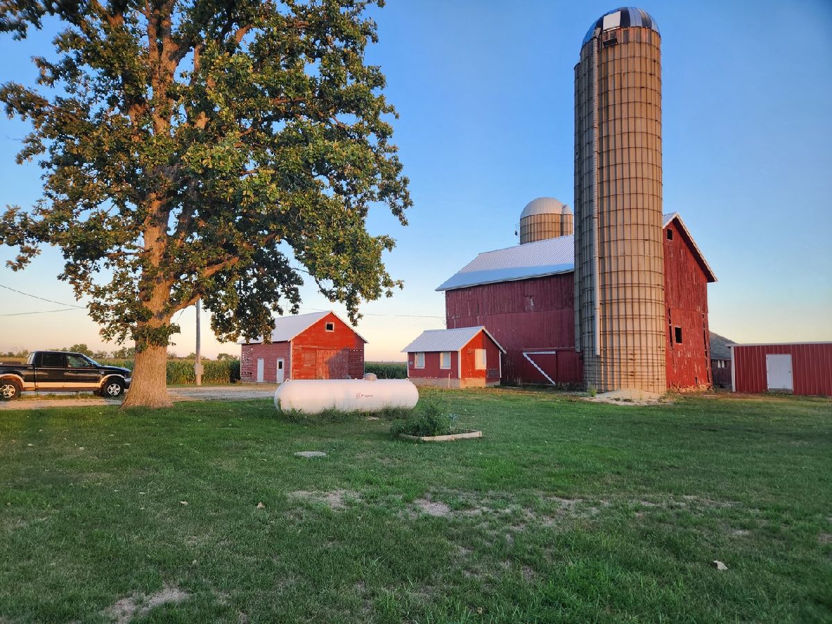 This is a wonderful farmstead with six acres and several out buildings, including a 40 x 90 Machine Shed with a 30 Ft. cement floor. Also the Red barn has 3 separate storage units 18 x 42 with a concrete floor, and throughout the farm there is loads of storage including a corn crib, two silos. The quaint farmhouse is larger than it appears. The Kitchen is bright overlooking views of the farm, The room off the kitchen could be a DR and partial FR combination, and a great Living Room with two smaller bedrooms downstairs, a Master Bedroom Suite upstairs. This is such a picturesque setting with great views of the countryside and the most beautiful sunrises and sunsets! Over the past few years some of the improvements made have been steel roof's on the outbuildings, newer roof on the house, lightening rods, newer water softener, High Energy furnace with AC condenser should new owners want AC, Most downstairs windows, newer eave and downspouts, and more. Property is Being sold "as is".