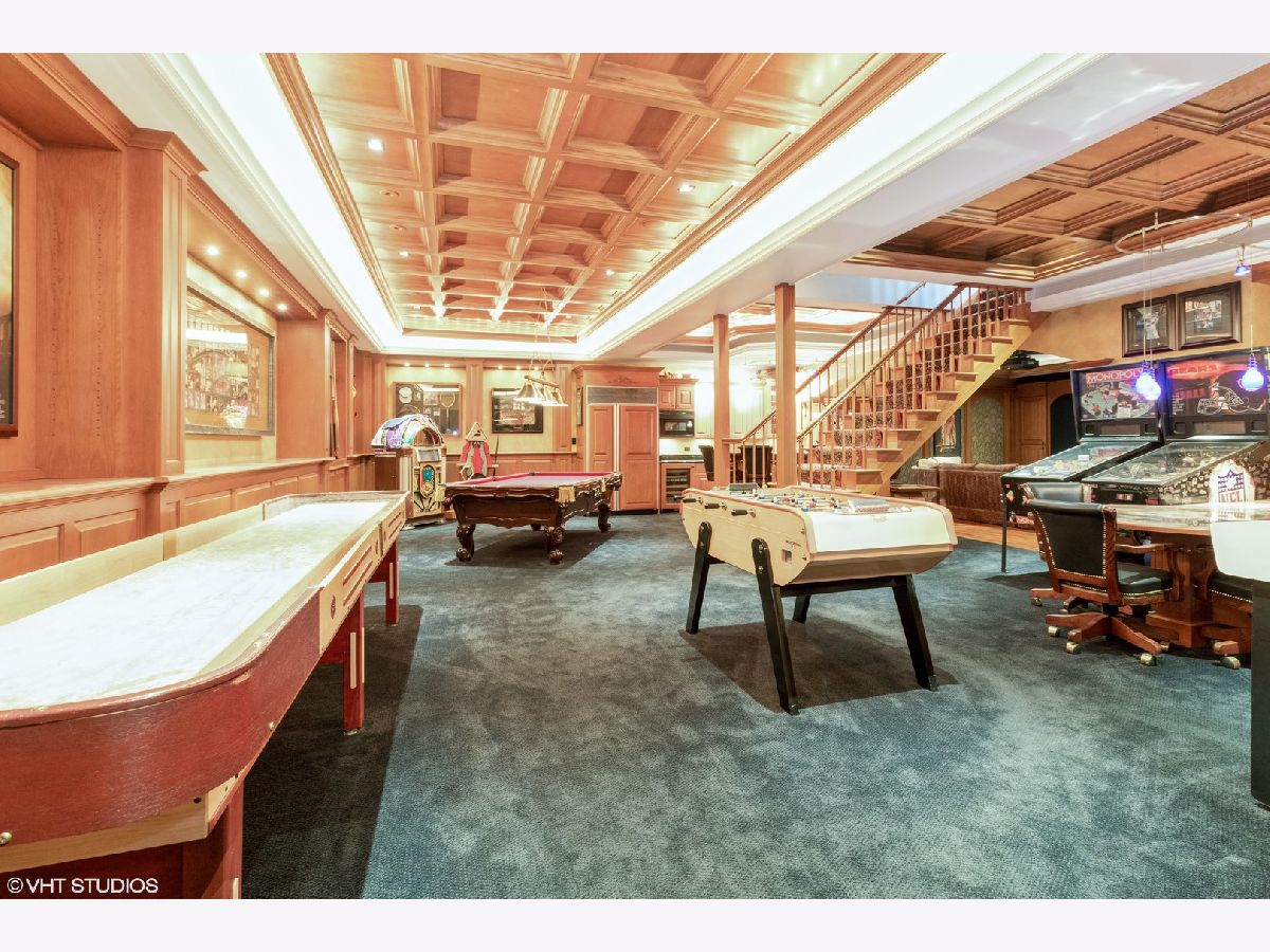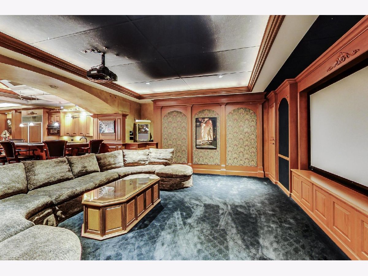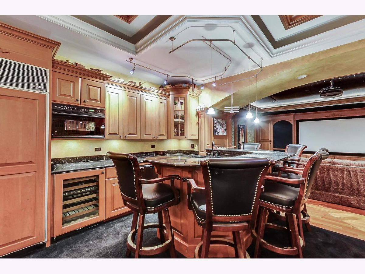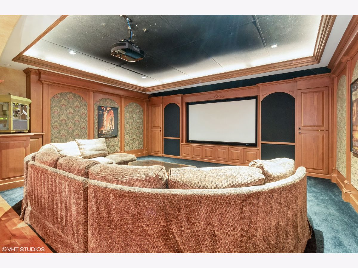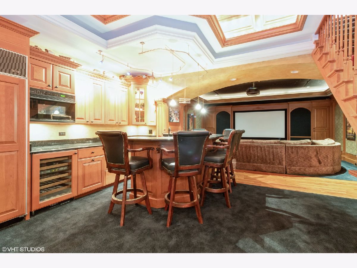 This home is EVERYTHING! An entertainer's dream! Located on a quiet, tree lined street, Mulberry Lane has it all. With nearly 7000 square feet of upgraded living, everyone is sure to find their perfect space. This unique home features two kitchens, two family rooms, a sunroom, an acoustically sound in-home theater space (with a sound system that rivals commercial theaters) and full finished lower level with 9 foot coffered ceilings finished in custom, hand designed solid wood. The details continue with solid wood wainscoting and floor to ceiling solid wood paneling throughout. Upgraded appliances in main floor chef's and lower level kitchens include Viking, Subzero and Thermador brands. The first floor primary bedroom suite and second bedroom with full bath, offers a flexible living space for all plans. The second floor hosts a large family room area, complete with custom, built-in wall units, a private office space, 3 bedrooms with two full baths including one ensuite arrangement, and a private reading nook or sitting area. An oversized laundry and craft or workroom area on the lower level is privately situated away from the full, finished recreation room. Location is stellar, of course, being centrally located minutes from award winning schools, the Morton Arboretum, major expressways, and minutes from beautiful downtown Glen Ellyn. Welcome home! *See feature sheet for additional details.
