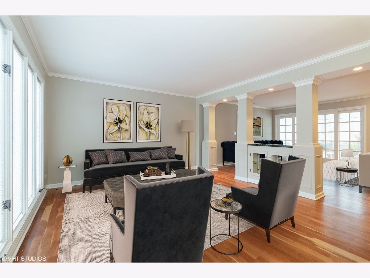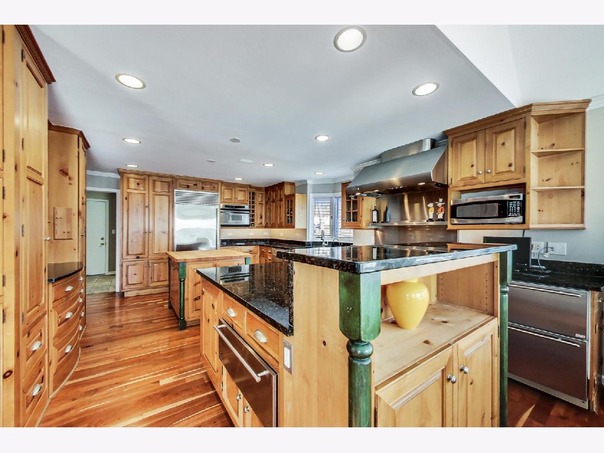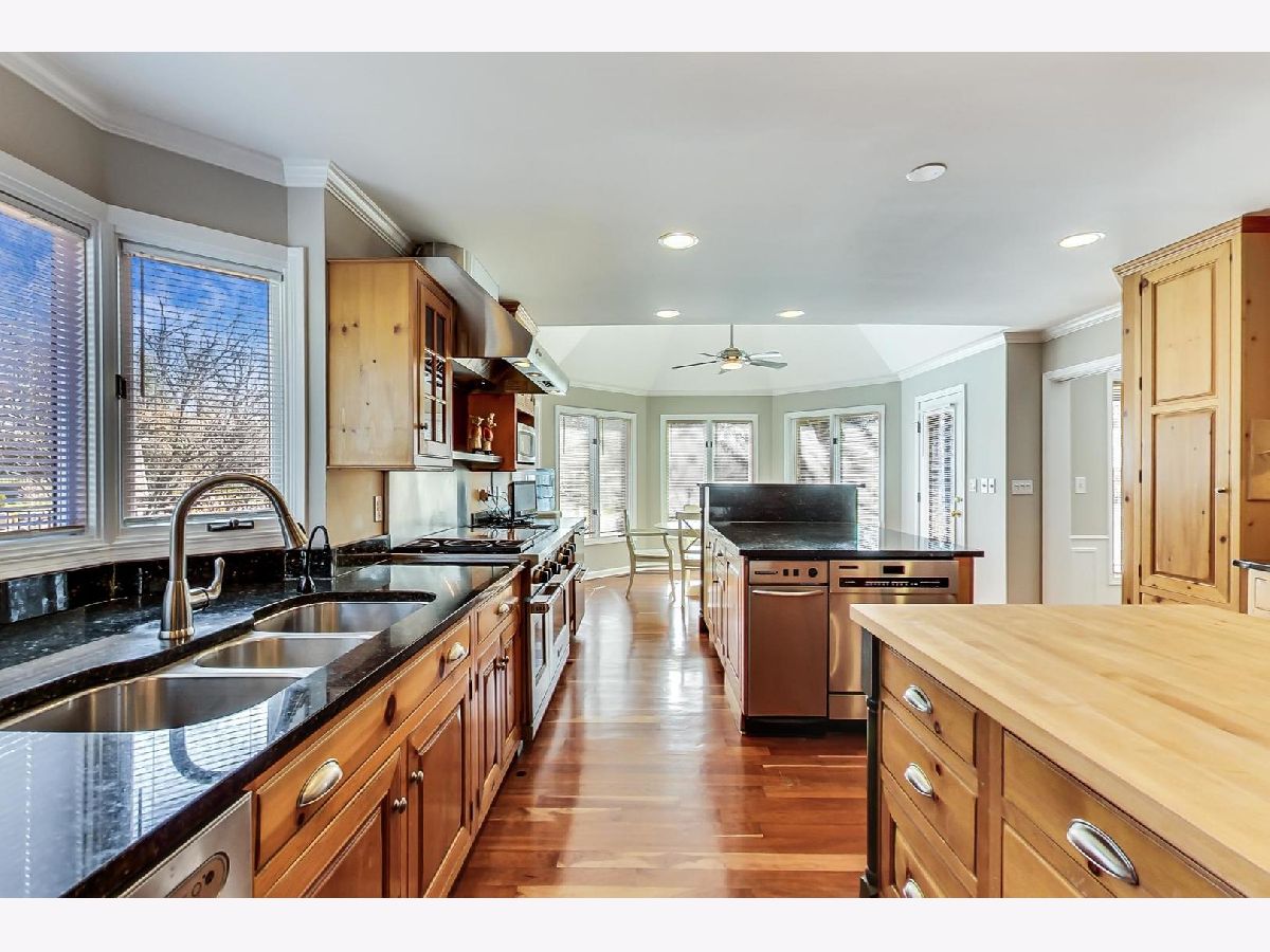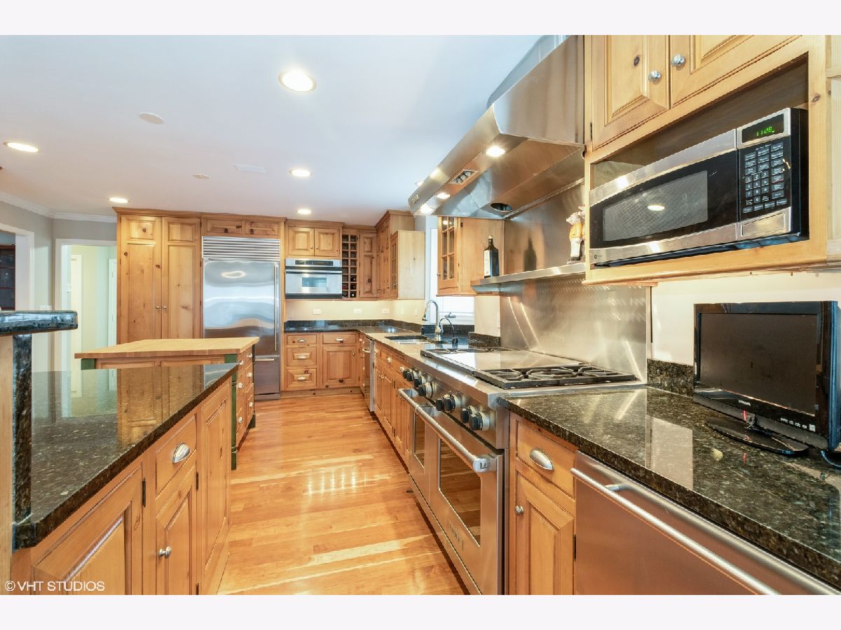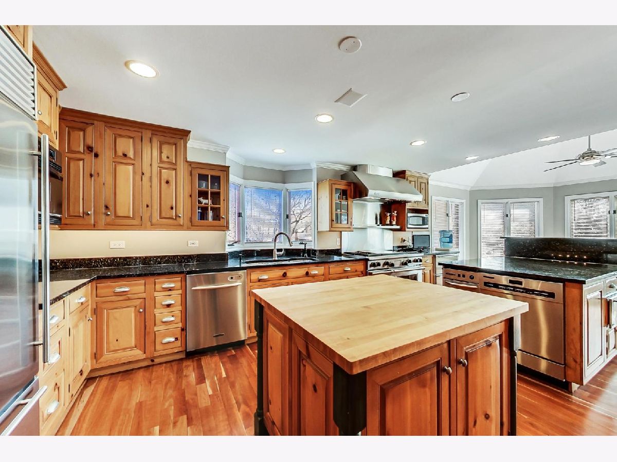 This home is EVERYTHING! An entertainer's dream! Located on a quiet, tree lined street, Mulberry Lane has it all. With nearly 7000 square feet of upgraded living, everyone is sure to find their perfect space. This unique home features two kitchens, two family rooms, a sunroom, an acoustically sound in-home theater space (with a sound system that rivals commercial theaters) and full finished lower level with 9 foot coffered ceilings finished in custom, hand designed solid wood. The details continue with solid wood wainscoting and floor to ceiling solid wood paneling throughout. Upgraded appliances in main floor chef's and lower level kitchens include Viking, Subzero and Thermador brands. The first floor primary bedroom suite and second bedroom with full bath, offers a flexible living space for all plans. The second floor hosts a large family room area, complete with custom, built-in wall units, a private office space, 3 bedrooms with two full baths including one ensuite arrangement, and a private reading nook or sitting area. An oversized laundry and craft or workroom area on the lower level is privately situated away from the full, finished recreation room. Location is stellar, of course, being centrally located minutes from award winning schools, the Morton Arboretum, major expressways, and minutes from beautiful downtown Glen Ellyn. Welcome home! *See feature sheet for additional details.