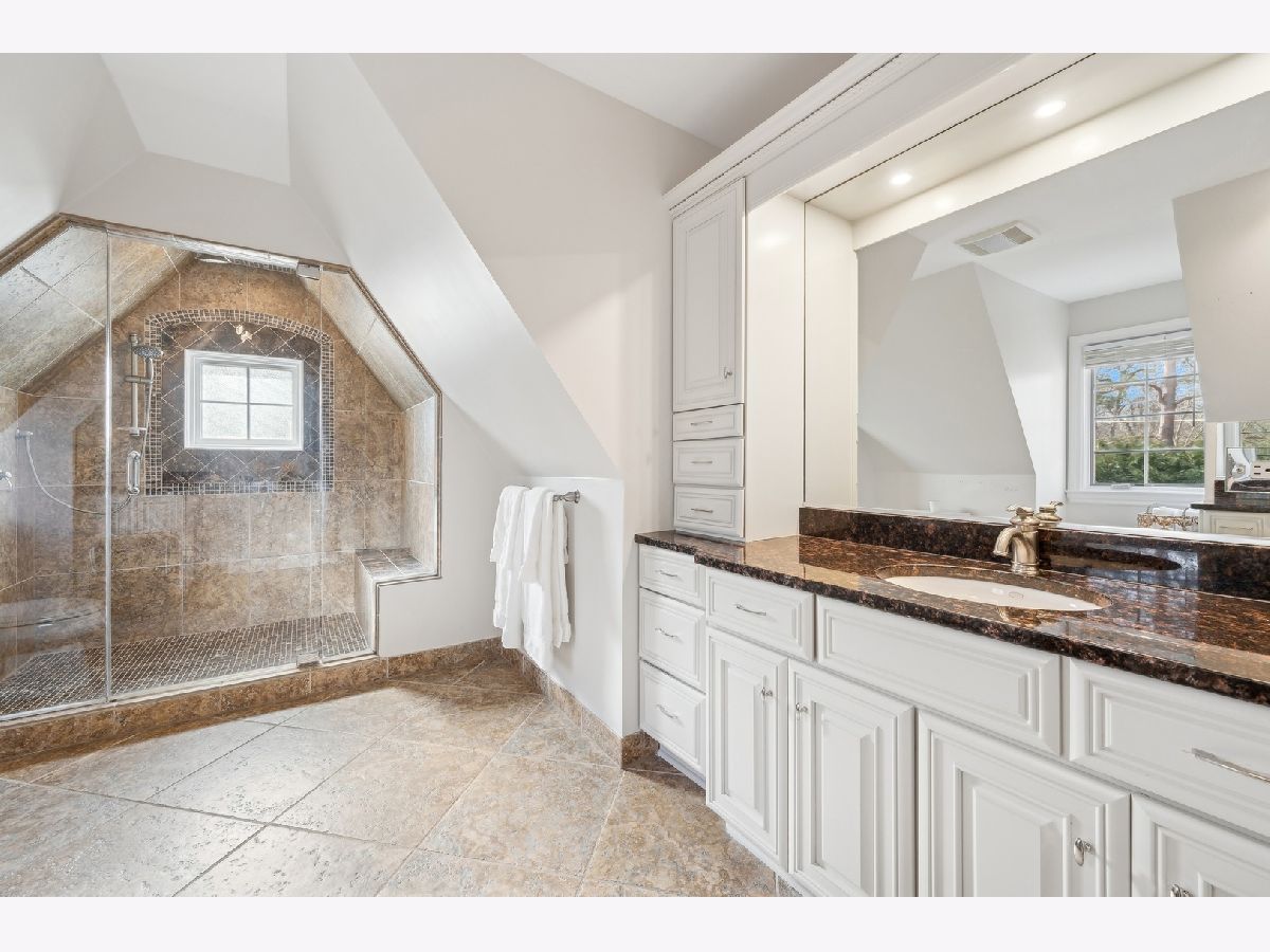Exquisite Lincolnshire residence nestled on half an acre in highly sought after Stevenson School District. Fully renovated and expanded over the years, this home seamlessly marries timeless elegance with modern luxury and top-tier finishes. Extra-wide foyer with soaring ceilings leads to the heart of the home with custom built-ins, fireplace, and french doors that open to the backyard and bluestone terrace. Sleek and modern, the kitchen features quartzite countertops, custom cabinets, top-of-the-line appliances, oversized center island, a separate breakfast nook, and a huge walk-in pantry. Formal entertaining spaces include a dining room with built-ins and a sophisticated living room. A beautifully appointed powder room, home office, 1st floor laundry and mudroom complete the space. Expect thoughtfully decorated guest bedrooms, a multi-purpose bonus family room, and a master suite with double-vanity bathroom and three walk-in closets. The fully finished basement has a full kitchen with temperature regulated wine cellar, fireplace, exercise room with rubber flooring, guest bedroom with en-suite bath, theater-style media room, and sprawling recreation room with a kid's stage. The exterior patio overlooks the massive fenced-in backyard space with gas fire pit. The home is finished in a DaVinci roof and an attached 3.5 car heated garage with epoxy flooring and storage. No detail has been spared in this meticulously designed retreat!