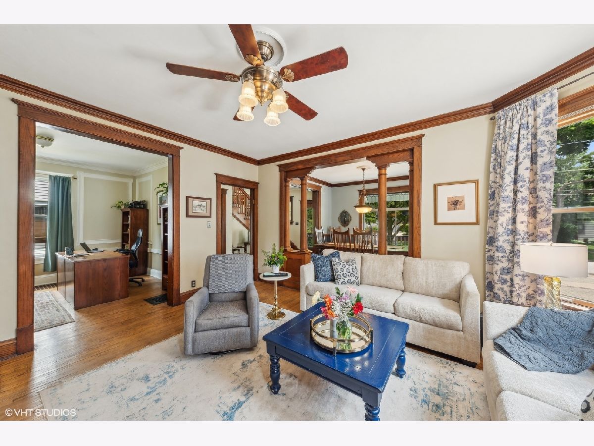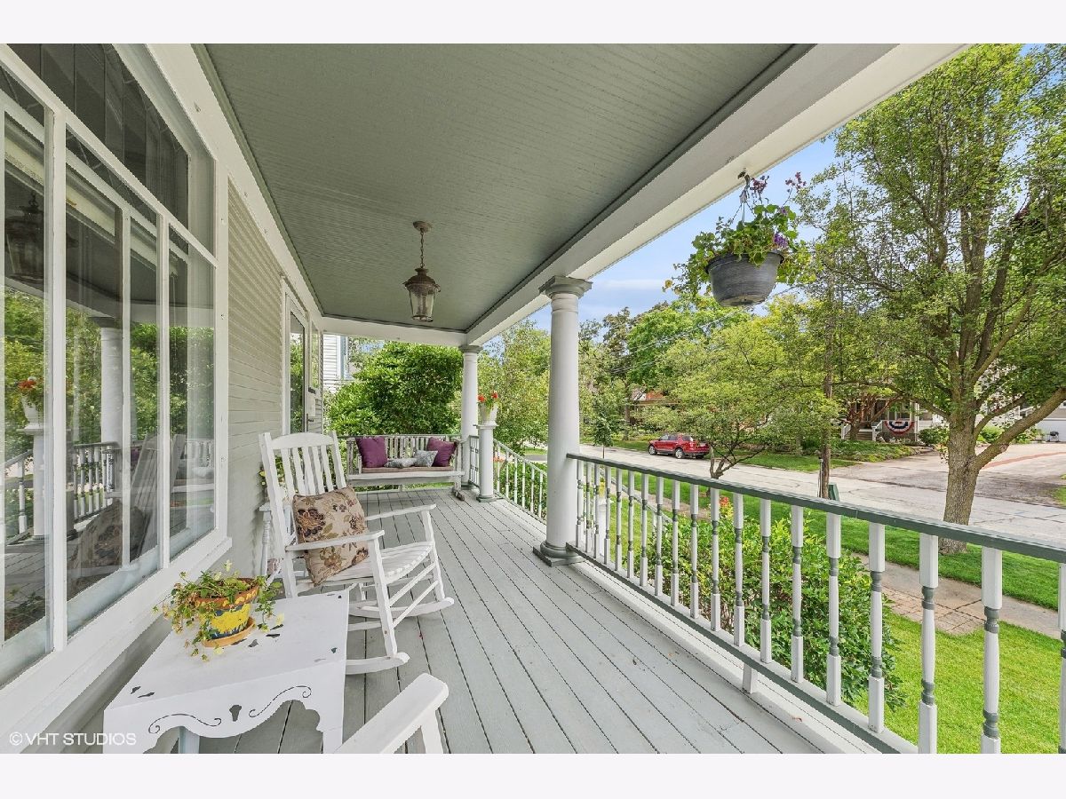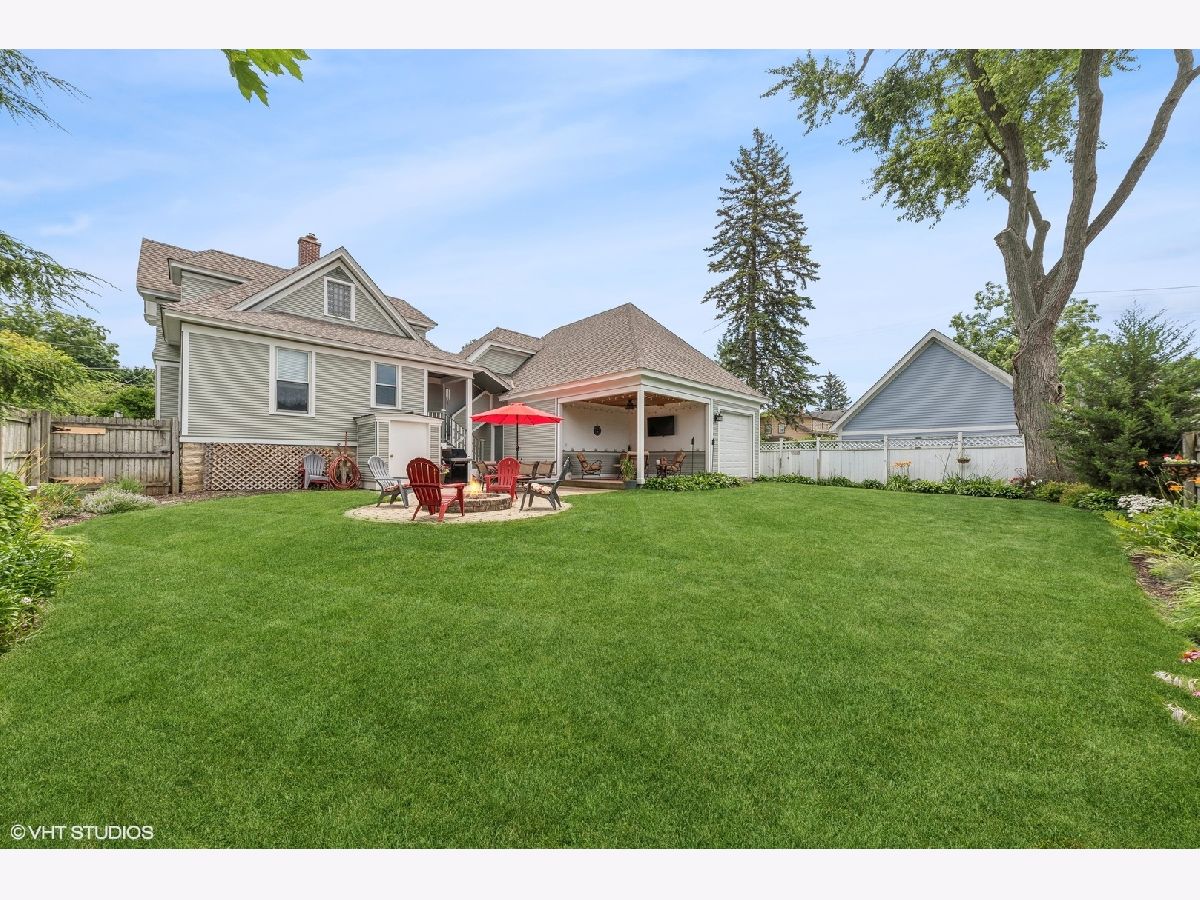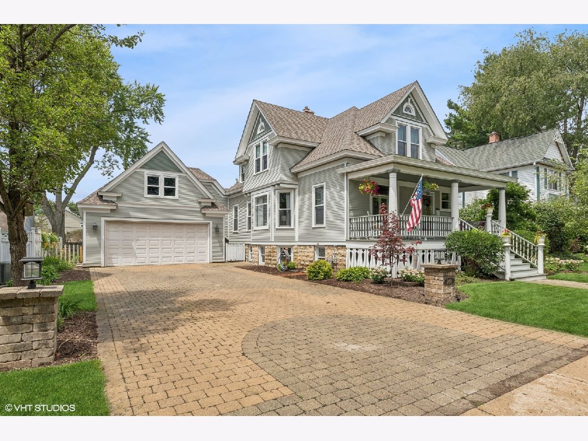 Welcome to this charming, restored Victorian home in the historic district of downtown Palatine. Once the residence of Herb Chidley, Palatine's beloved wildlife artist, who lived here from 1935 to 1999, this home offers a unique blend of history and modern comfort. Upon entering, you'll be greeted by the timeless allure of original wood molding, adding a touch of character throughout the home. The interior seamlessly blends modern conveniences with historic charm, creating a warm and inviting atmosphere. This lovely residence features a spacious floor plan with four bedrooms, including one on the main level. All three bathrooms have been recently updated, including the stunning first-floor bathroom with high-contrast colors, geometric tile, a restored original clawfoot tub, and luxurious finishes. At the heart of the home is a large, bright kitchen with ample counter space and custom cherry cabinets, perfect for preparing and enjoying meals with loved ones. The first floor includes a dining room, living room, and office, thoughtfully laid out for relaxation, entertainment and functionality for daily living. Step outside to discover comfortable outdoor living areas, perfect for unwinding or hosting gatherings. The outdoor space features a paver patio with a built-in fire pit, a covered outdoor living room with a TV, speakers, and a ceiling fan, and lovingly landscaped front and back yards with vibrant perennials. The uncommon, oversized, heated, and insulated three-car garage is ideal for large projects, automotive enthusiasts, and for storing larger recreational vehicles. Above the garage is a spacious walk-up loft that offers additional space for storage, hobbies, or potential conversion into a studio or workspace. The unfinished lower level provides ample storage or potential for future customization. For peace of mind, many important functional updates have been completed, including a new roof, water and sewer lines, exterior drain tile, blown-in insulation, paint and restoration of the siding and exterior trim, and 200-amp service. Located on a quiet, tree-lined street, this home is just blocks from the Metra train, elementary school, and all the best downtown restaurants, coffee shops, and entertainment. It is also in the highly sought-after 211 School District. With its distinctive character and ample space, this Victorian home presents a rare opportunity to own a piece of history while enjoying modern comforts. Don't miss your chance to make this unique property your own!