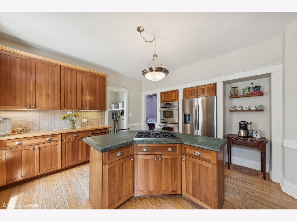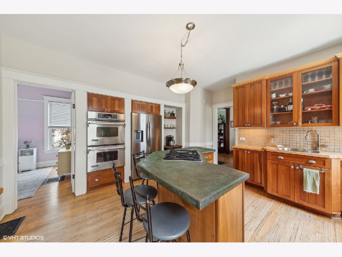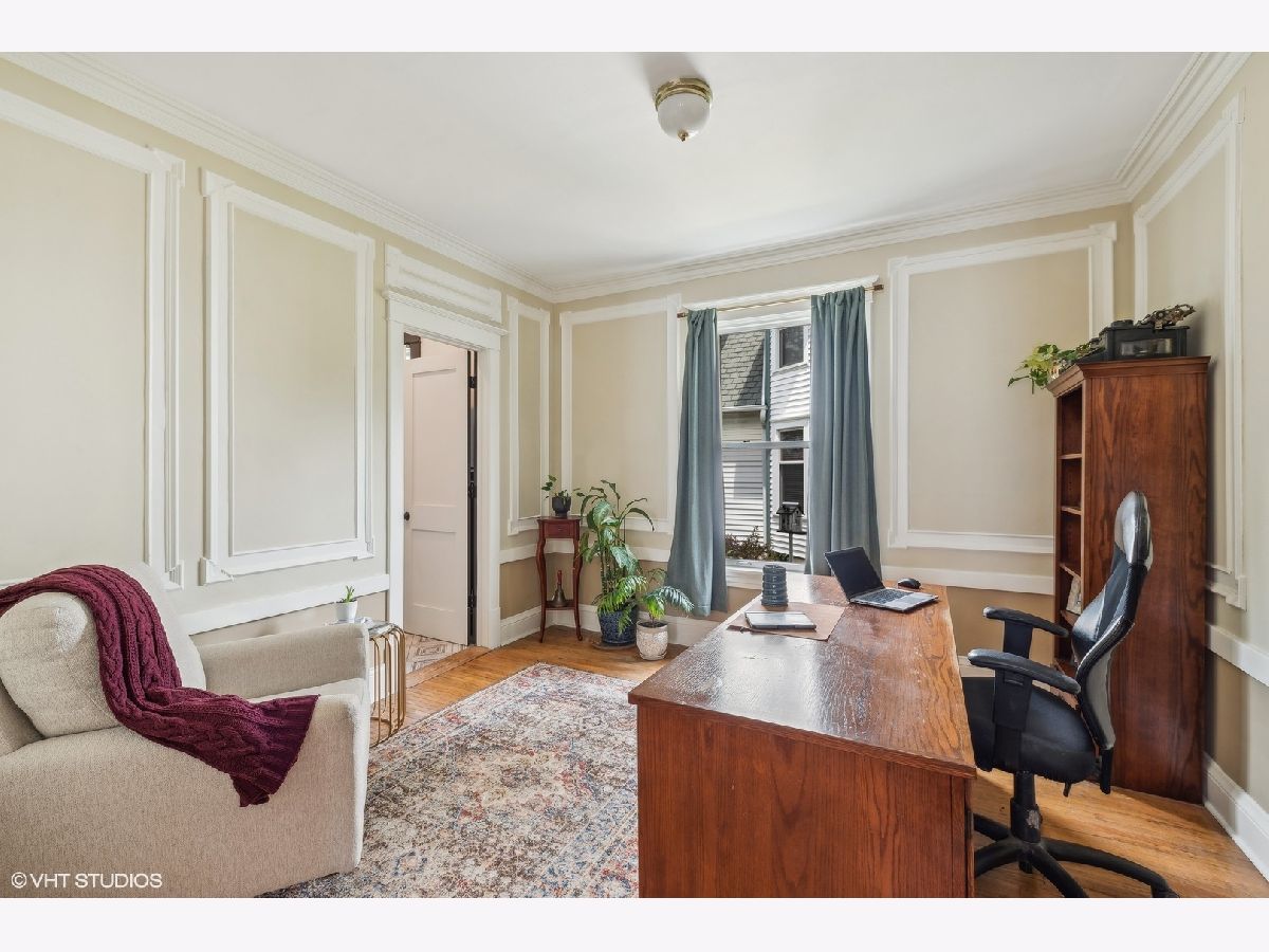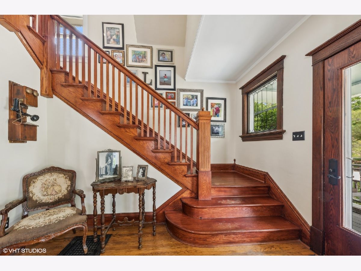 Welcome to this charming, restored Victorian home in the historic district of downtown Palatine. Once the residence of Herb Chidley, Palatine's beloved wildlife artist, who lived here from 1935 to 1999, this home offers a unique blend of history and modern comfort. Upon entering, you'll be greeted by the timeless allure of original wood molding, adding a touch of character throughout the home. The interior seamlessly blends modern conveniences with historic charm, creating a warm and inviting atmosphere. This lovely residence features a spacious floor plan with four bedrooms, including one on the main level. All three bathrooms have been recently updated, including the stunning first-floor bathroom with high-contrast colors, geometric tile, a restored original clawfoot tub, and luxurious finishes. At the heart of the home is a large, bright kitchen with ample counter space and custom cherry cabinets, perfect for preparing and enjoying meals with loved ones. The first floor includes a dining room, living room, and office, thoughtfully laid out for relaxation, entertainment and functionality for daily living. Step outside to discover comfortable outdoor living areas, perfect for unwinding or hosting gatherings. The outdoor space features a paver patio with a built-in fire pit, a covered outdoor living room with a TV, speakers, and a ceiling fan, and lovingly landscaped front and back yards with vibrant perennials. The uncommon, oversized, heated, and insulated three-car garage is ideal for large projects, automotive enthusiasts, and for storing larger recreational vehicles. Above the garage is a spacious walk-up loft that offers additional space for storage, hobbies, or potential conversion into a studio or workspace. The unfinished lower level provides ample storage or potential for future customization. For peace of mind, many important functional updates have been completed, including a new roof, water and sewer lines, exterior drain tile, blown-in insulation, paint and restoration of the siding and exterior trim, and 200-amp service. Located on a quiet, tree-lined street, this home is just blocks from the Metra train, elementary school, and all the best downtown restaurants, coffee shops, and entertainment. It is also in the highly sought-after 211 School District. With its distinctive character and ample space, this Victorian home presents a rare opportunity to own a piece of history while enjoying modern comforts. Don't miss your chance to make this unique property your own!