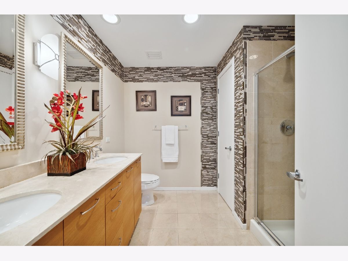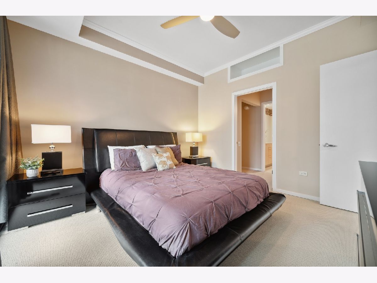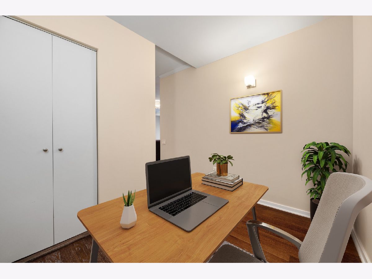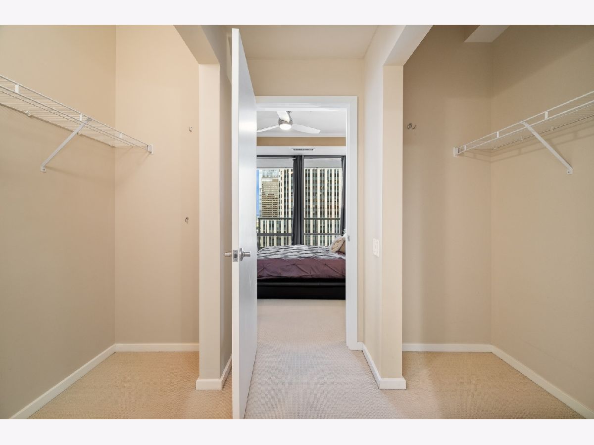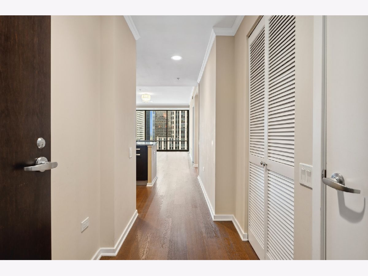 South facing 2 Bedroom plus Den 2 Bath condo in prime Streeterville location. Open floorplan with spacious living dining space featuring floor to ceiling windows showcasing a picturesque view of the skyline, iconic Michigan Avenue buildings and view of the lake for fireworks. Large U-shaped kitchen with Breakfast Bar, stone countertops Kitchen Aid Appliances and Thermador Deluxe Range. You will enjoy the light filled living dining room with hardwood floors, open to the kitchen. The split bedroom floor plan offers a primary suite on one side of the home and a second bedroom and den on the other side of the home allowing for serene privacy. The primary suite offers double closets, a stone bath with walk in shower and double vanity and linen storage. The second bedroom offers a wall of closets and adjacent stone bath with tile accents. A den or home office with hardwood floors and closet is perfect for working from home or can accommodate a day bed or pull-out sofa for extra guests. Enjoy the balcony for summer grilling or evening relaxing. Great condition condo with convenient location to Michigan Ave, and the lake front. The professionally managed building offers, 24 hr. door staff, exercise room, weight room, outdoor pool, pet run, and grill area and roof top garden. Whole Foods Grocery conveniently just an elevator ride away, along with Egg Harbor and many other restaurants and shopping venues just steps away.