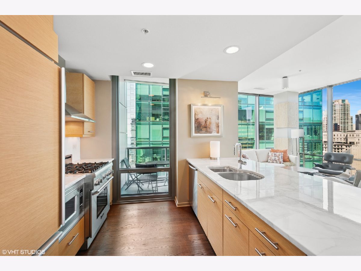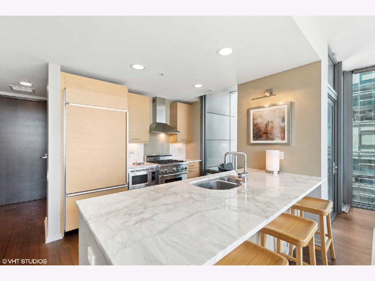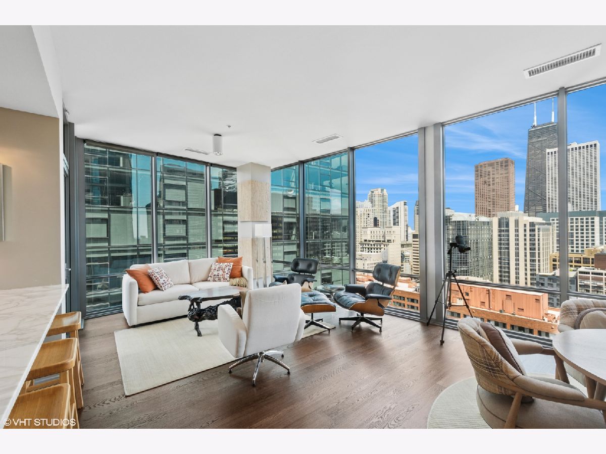 Step into elevated living in this meticulously designed one bedroom, one and a half bath luxury condominium. Perfect for the discerning buyer, this elegant, professionally designed residence combines modern upgrades with timeless style. The open concept living space features rich hardwood throughout creating warmth and continuity. Floor- to- ceiling windows frame breathtaking city, river and lake views . A gourmet kitchen is appointed with Sub Zero and Thermador appliances, sleek custom cabinetry and glistening marble countertops. You will be surrounded by views as you enjoy your morning coffee or host friends in style. The spacious primary suite includes a glamorous bathroom with premium finishes and custom, built in storage closets. A sleek powder room adds convenience for your guests. If you are looking for an unparelleled residence or in- town in one of the Chicago's most desirable full amenity buildings this is for you. This luxury condominium includes 24 hour door staff, fitness centers, outdoor pool and sundeck, party room, movie room and business center . This gently used in-town is available turnkey (with exceptions) . Garage parking is offered at $40,000. Garage monthly HOA fee is 98.64. Building reserves are $4,450,000.