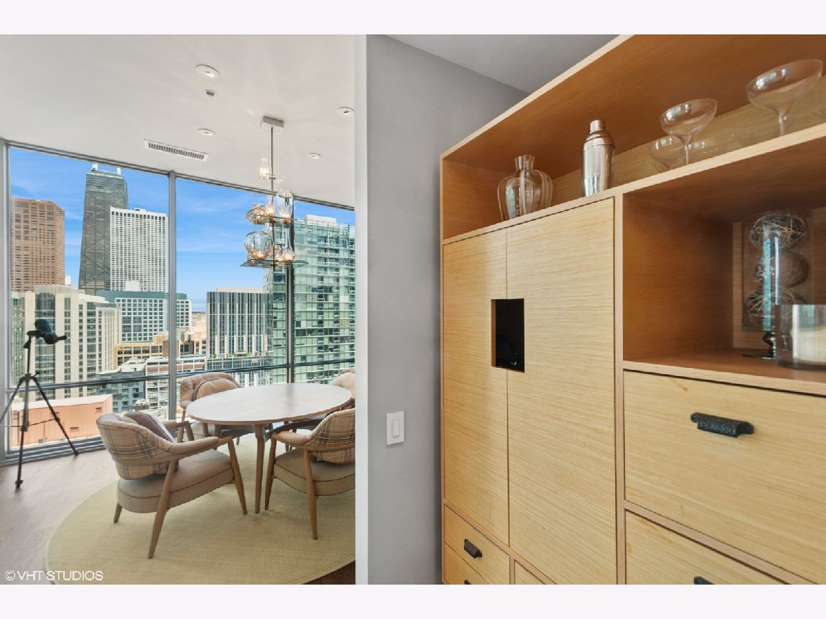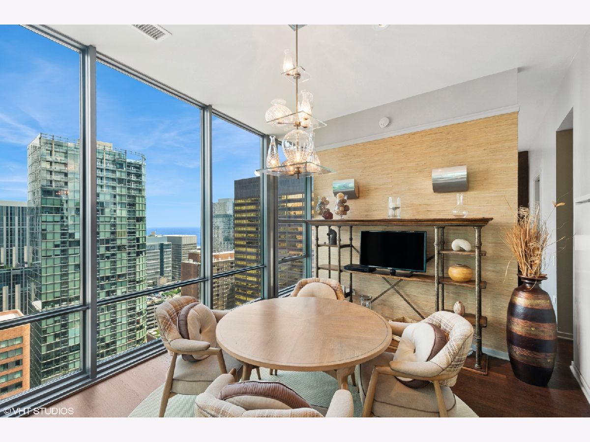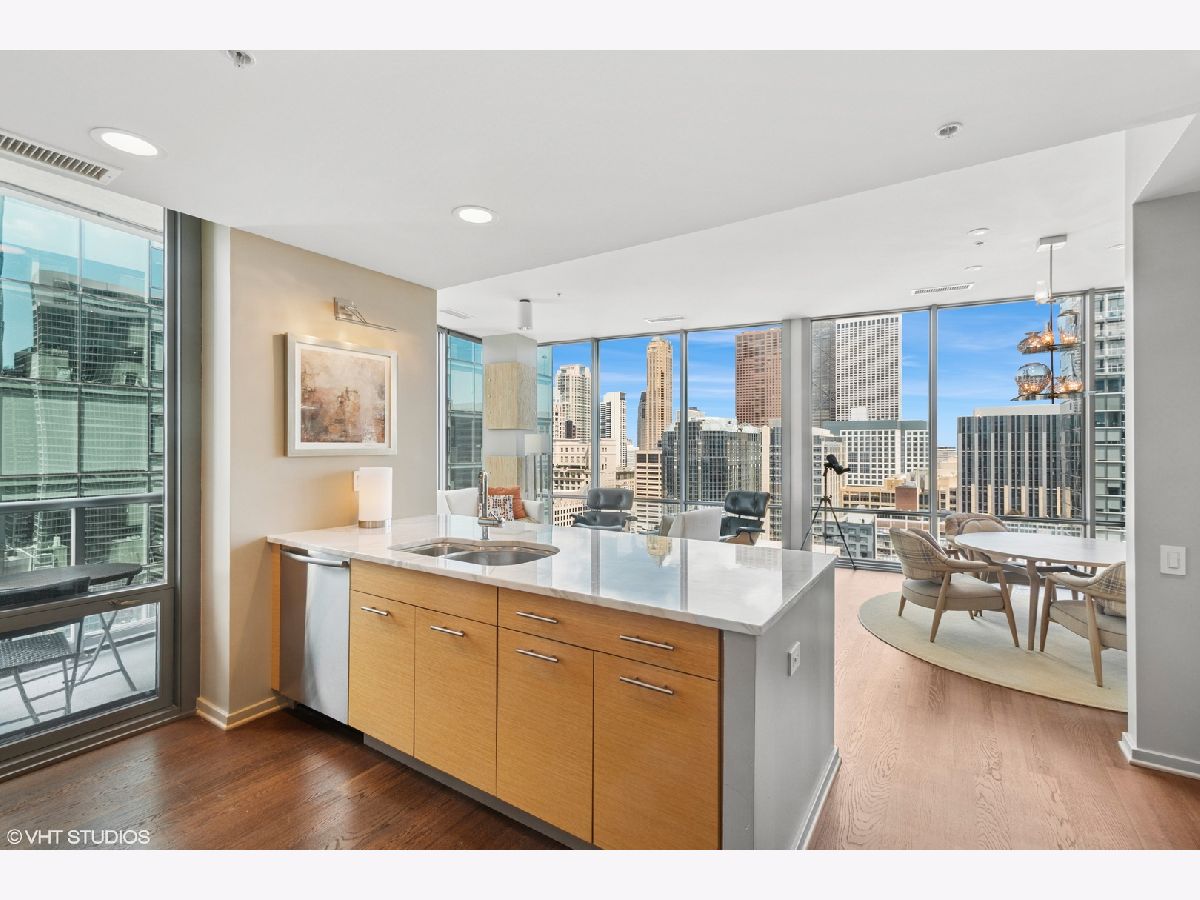 Step into elevated living in this meticulously designed one bedroom, one and a half bath luxury condominium. Perfect for the discerning buyer, this elegant, professionally designed residence combines modern upgrades with timeless style. The open concept living space features rich hardwood throughout creating warmth and continuity. Floor- to- ceiling windows frame breathtaking city, river and lake views . A gourmet kitchen is appointed with Sub Zero and Thermador appliances, sleek custom cabinetry and glistening marble countertops. You will be surrounded by views as you enjoy your morning coffee or host friends in style. The spacious primary suite includes a glamorous bathroom with premium finishes and custom, built in storage closets. A sleek powder room adds convenience for your guests. If you are looking for an unparelleled residence or in- town in one of the Chicago's most desirable full amenity buildings this is for you. This luxury condominium includes 24 hour door staff, fitness centers, outdoor pool and sundeck, party room, movie room and business center . This gently used in-town is available turnkey (with exceptions) . Garage parking is offered at $40,000. Garage monthly HOA fee is 98.64. Building reserves are $4,450,000.