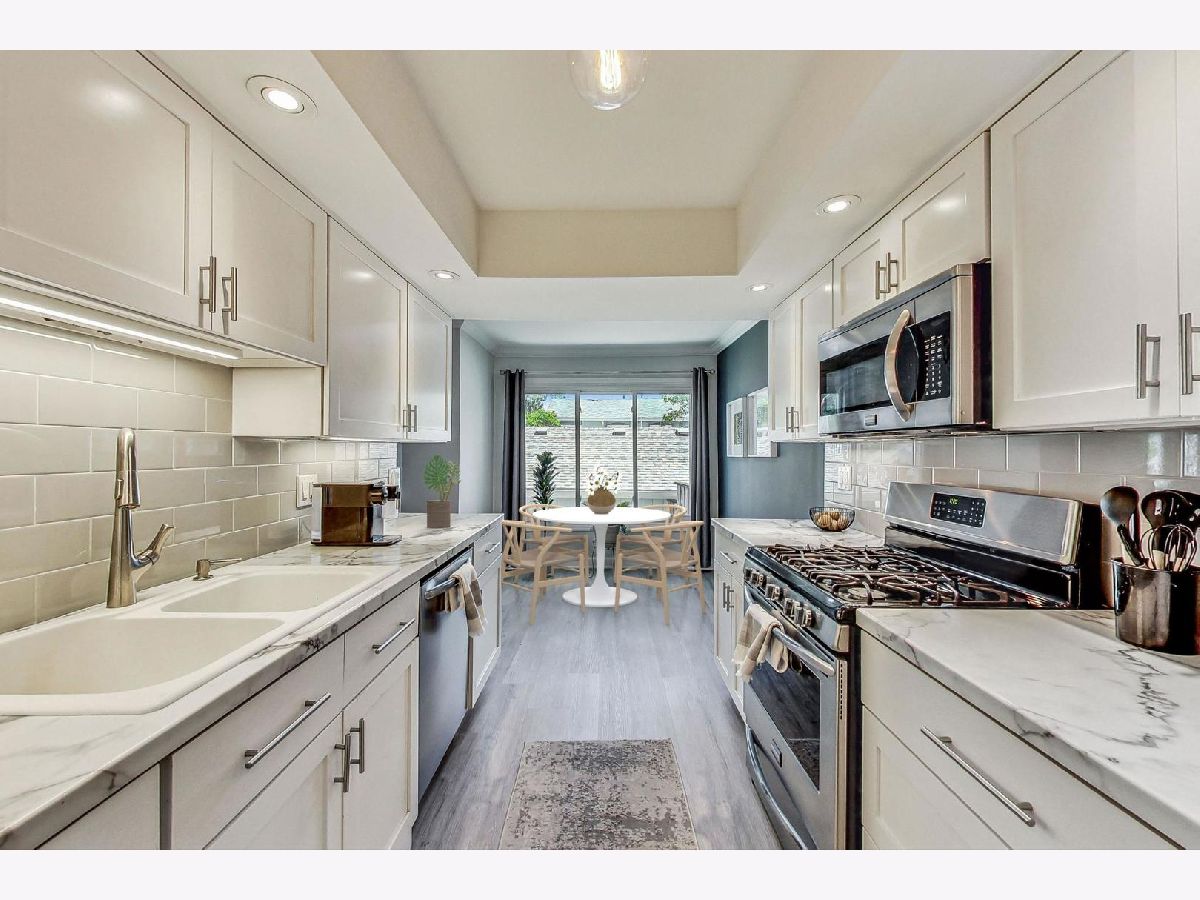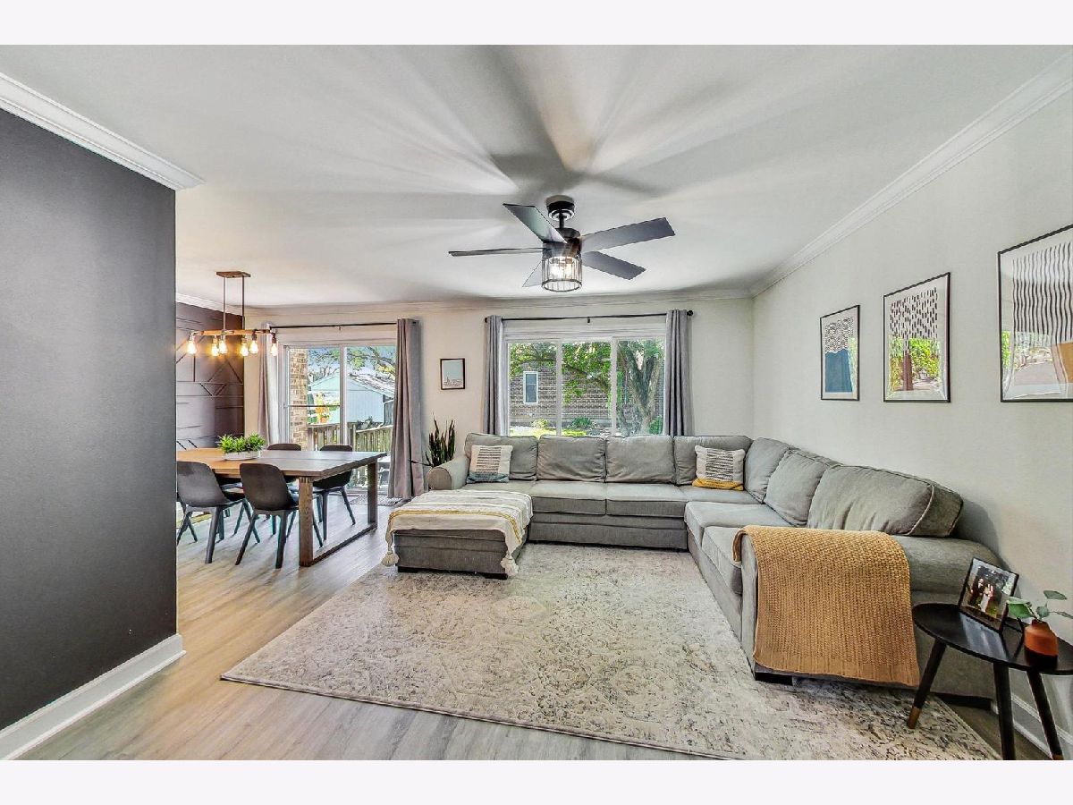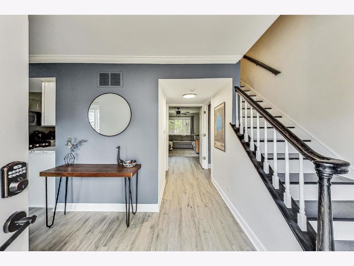 Come check out one of the most updated and beautiful homes in highly coveted Westlake Townhomes! This 3 bedroom, 1.5 bath home has been updated with all the updates and modern amenities you want. The main level floor plan features great flow with an open floor plan and an updated all-white kitchen with stainless steel appliances. The large living/dining space flows seamlessly into the private backyard and patio area for summer days and nights spent outside. The eat-in kitchen features an area for an additional dining nook, or extra space for a home office showcasing huge windows overlooking the private front patio. This home was professionally repainted in neutral whites and greys, and now includes a stylish and custom black accent wall in the dining room. The flooring was replaced throughout the home with LVP, including in the lower level - no carpet to be found! Upgraded and modern lighting throughout gives this home a contemporary vibe. Powder room updated with new vanity, fixtures and lighting in 2021. The second floor of this home features three bedrooms, all with great natural light and spacious closets. One full bath featuring double sinks rounds out the top level. Beautifully finished lower level with custom built-in bar and shelves, all new flooring, and a huge Rec Room with tons of space to hang out and watch TV or host great parties. A comfortable laundry/utility room rounds out the lower level. New roof in 2022. Furnace/AC replaced in 2017. Oversize one car garage provides parking, plus additional storage space. Large driveway can accommodate two additional cars. Westlake Townhomes is a lovely community with low association dues and excellent included amenities like a Clubhouse/party room, indoor swimming pool, several tot parks, basketball courts, tennis courts, plus Westlake Park and walking path which is just across the street from this home. Great location where you can walk into town (or 5-minute drive), or stroll over to neighborhood gems like Pronto's Pizza and Enzo's. Easy walk to schools, easy drive to Metra, expressways and much more!