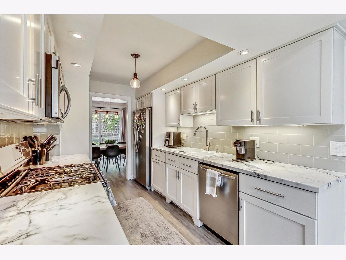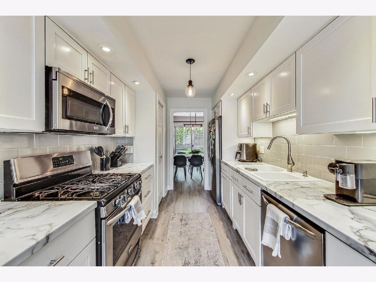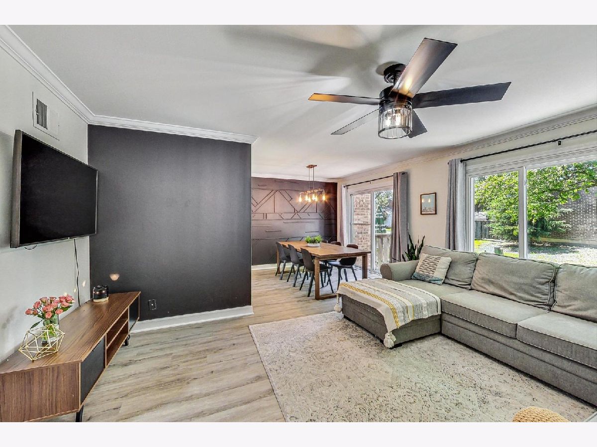 Come check out one of the most updated and beautiful homes in highly coveted Westlake Townhomes! This 3 bedroom, 1.5 bath home has been updated with all the updates and modern amenities you want. The main level floor plan features great flow with an open floor plan and an updated all-white kitchen with stainless steel appliances. The large living/dining space flows seamlessly into the private backyard and patio area for summer days and nights spent outside. The eat-in kitchen features an area for an additional dining nook, or extra space for a home office showcasing huge windows overlooking the private front patio. This home was professionally repainted in neutral whites and greys, and now includes a stylish and custom black accent wall in the dining room. The flooring was replaced throughout the home with LVP, including in the lower level - no carpet to be found! Upgraded and modern lighting throughout gives this home a contemporary vibe. Powder room updated with new vanity, fixtures and lighting in 2021. The second floor of this home features three bedrooms, all with great natural light and spacious closets. One full bath featuring double sinks rounds out the top level. Beautifully finished lower level with custom built-in bar and shelves, all new flooring, and a huge Rec Room with tons of space to hang out and watch TV or host great parties. A comfortable laundry/utility room rounds out the lower level. New roof in 2022. Furnace/AC replaced in 2017. Oversize one car garage provides parking, plus additional storage space. Large driveway can accommodate two additional cars. Westlake Townhomes is a lovely community with low association dues and excellent included amenities like a Clubhouse/party room, indoor swimming pool, several tot parks, basketball courts, tennis courts, plus Westlake Park and walking path which is just across the street from this home. Great location where you can walk into town (or 5-minute drive), or stroll over to neighborhood gems like Pronto's Pizza and Enzo's. Easy walk to schools, easy drive to Metra, expressways and much more!
