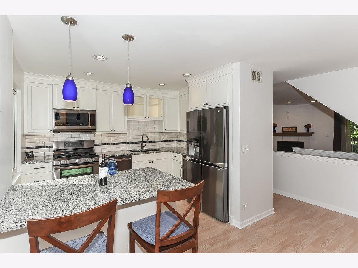It's a good life at 240 E. Parallel! Quiet, cul de sac location ~ and so very light, bright and airy! This perfectly situated end-unit has been recently and professionally renovated with top-to-bottom open concept kitchen rebuild ~ all new cabinets, black stainless-steel LG appliances, granite countertops, under-cabinet lighting, separate wine fridge and all new fixtures. Both of the full bathrooms on the upper level have also been completely gutted and professionally renovated with new tile, flooring, cabinets, granite countertops, fixtures and lighting. Solatube skylights installed in both upper bathrooms bring in tons of natural light. All windows were recently replaced with triple-pane glass units along with a new sliding glass door. Three upstairs bedrooms, all with vaulted ceilings and great closet space ~ the master bedroom has a huge walk-in closet with custom Elfa multi-level racking. This unit also features a main level bedroom/den with brand new carpet that has its own bathroom. Full-sized washer/dryer in unit. Two car attached garage with recently upgraded door, 240v/30a level 2 car charging receptacle and extra cabinetry of additional storage. Close to train, Palatine schools, Community Park, Village Hall and the soon-to-open Amazon distribution center.