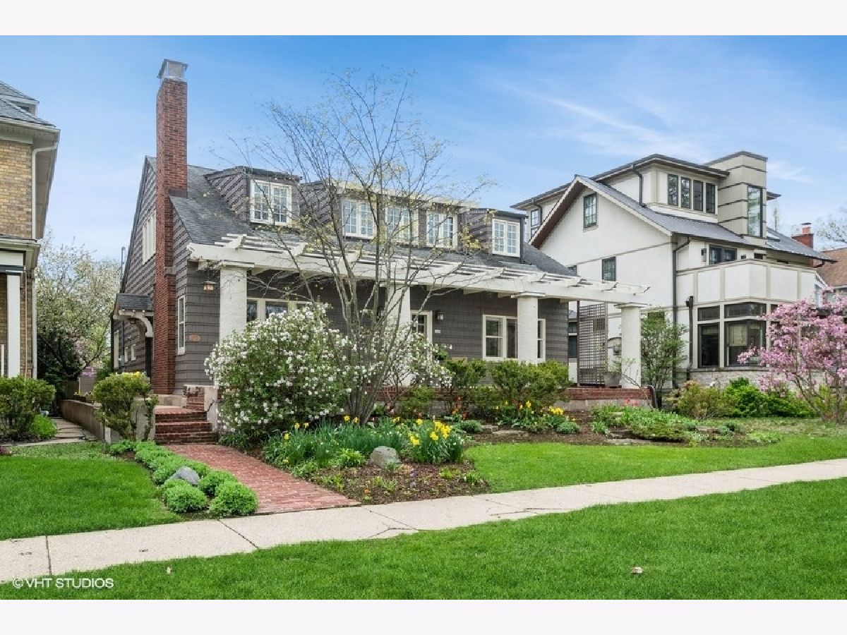 The perfect blend of modern convenience and vintage grace! This beautifully crafted 1911 home was designed by and for Arthur Howell Knox. The sweeping front lawn, a feature only a few homes have on Park Place, welcomes and leads you to the prominent front terrace with distinctive columns and pergola. The cozy entry leads to the spacious living room highlighted by the brick wood burning fireplace. The living room offers original French doors that lead to the expansive front patio. The sun filled dining room opens to both the kitchen and also has the original French doors leading to the brick paver patio overlooking the lushly landscaped backyard. The kitchen was renovated to enhance the character of the home yet embrace all modern amenities and showcase the view of the backyard. The first floor offers 2 large bedrooms and a full bath all showcasing the charm of yesteryear. The second floor provides all of todays conveniences with 4 true bedrooms including the large primary bedroom with a walk in closet, traditional wall closet and a full bath with a linen closet. The hall bath has 2 skylights to help maximize natural light. The lower level is partially finished with a rec room, flexible space room for home office or gym, a workshop space and utility room. The backyard was designed with nature in mind and has space for a large garden or grass area and the 2 car garage is accessed from the alley. Truly an amazing home in a phenomenal location close to the Metra Train, all of the shops and restaurants Central St has to offer, Howell Park and the newly redone Independence Park!