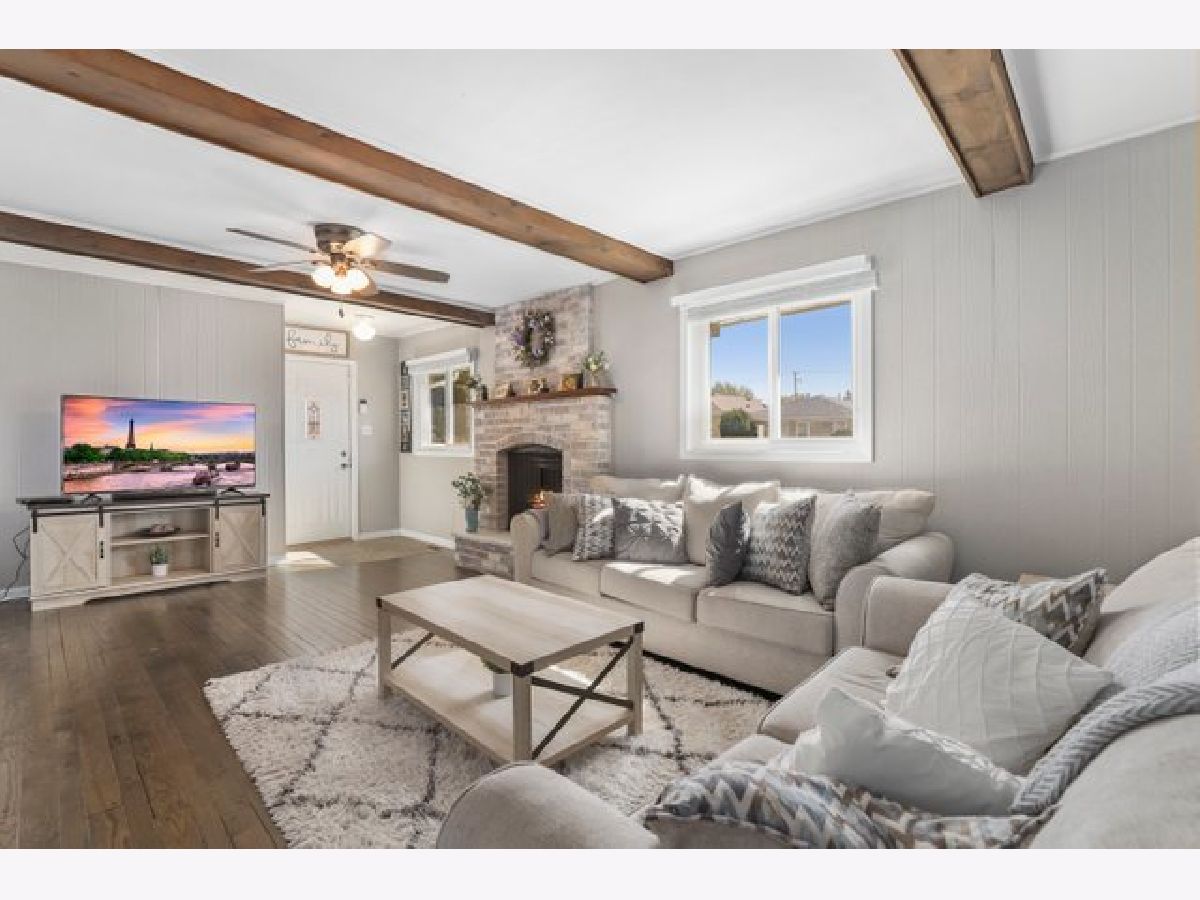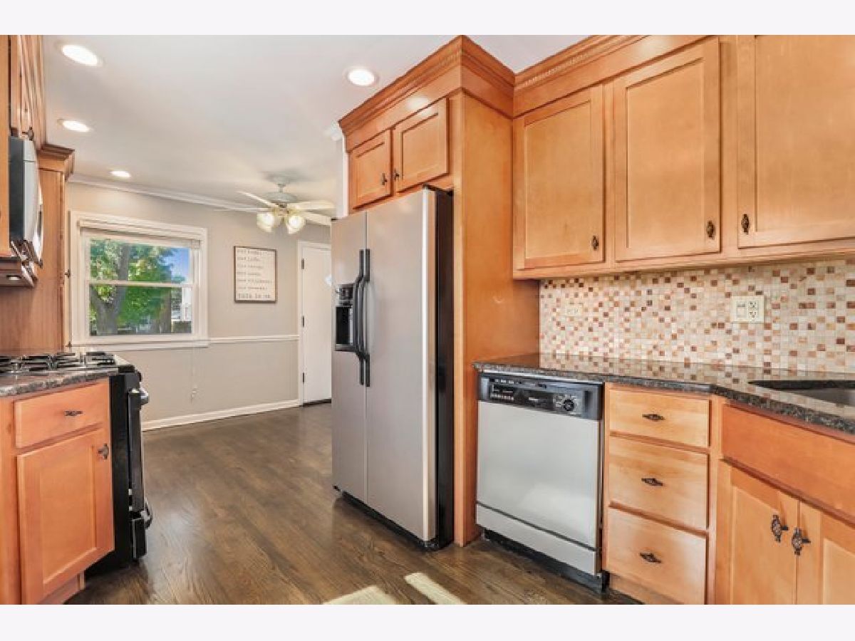 Impeccably maintained with many recent updates this 3BR / 2BA one story home is flooded with natural light from front to back. A corner lot located on lovely trees lined street this home will not disappoint. Wood floors throughout and recent bathroom updates. Master bedroom with en-suite bath and 2 other good sized bedrooms and full bath all one level. Kitchen features granite tops , stainless steel appliances and 42" maple shaker style cabinets beautifully finished with to the ceiling crown molding. The family room addition features a white washed brick fireplace and charming wood beam accents. Finished basement provides room for movie nights and/or work from home office. New exterior fence and deck create a relaxing space for outdoor entertaining. Convenient Elmwood Park location walking distance to train and parks. Don't wait!