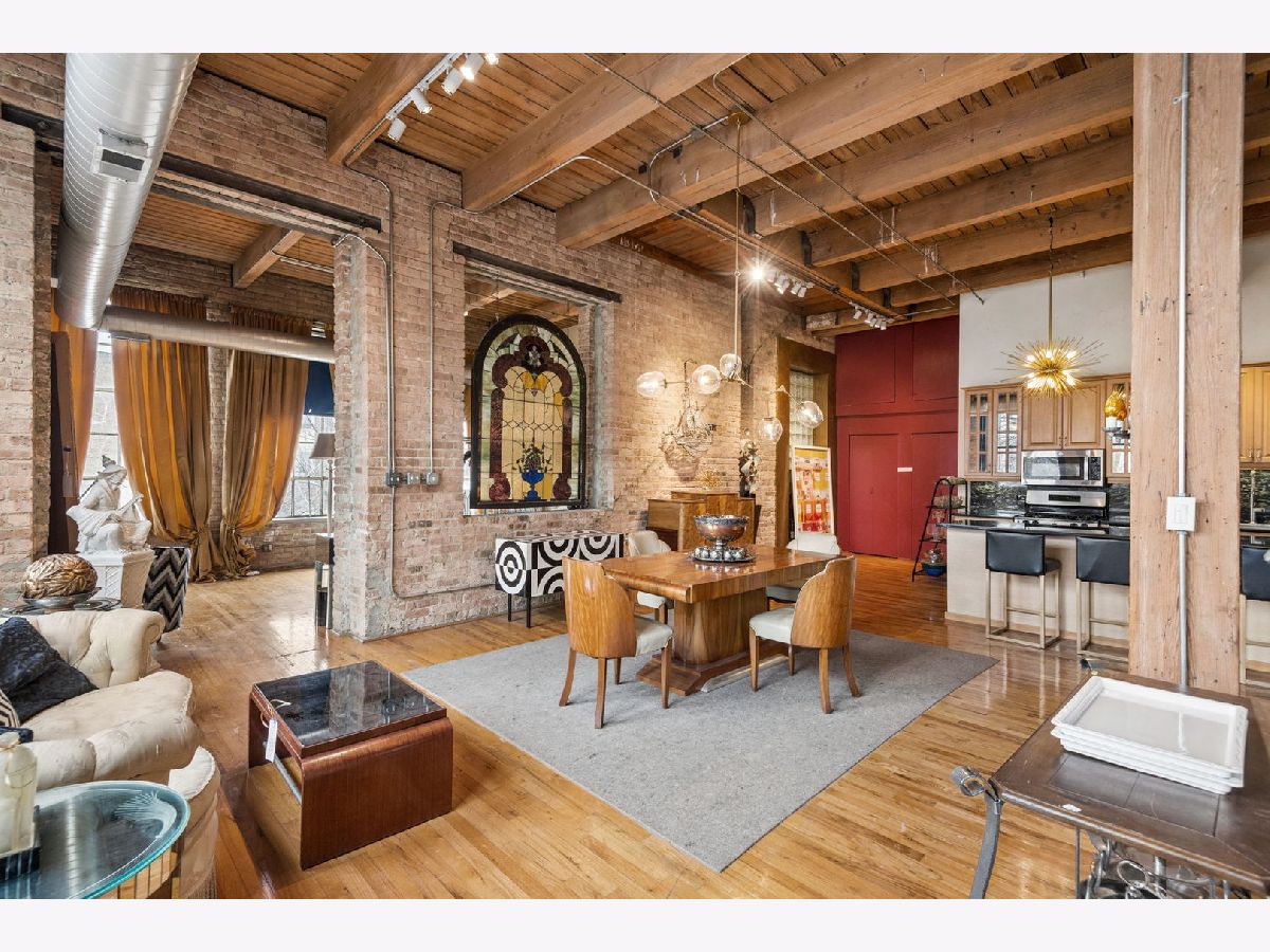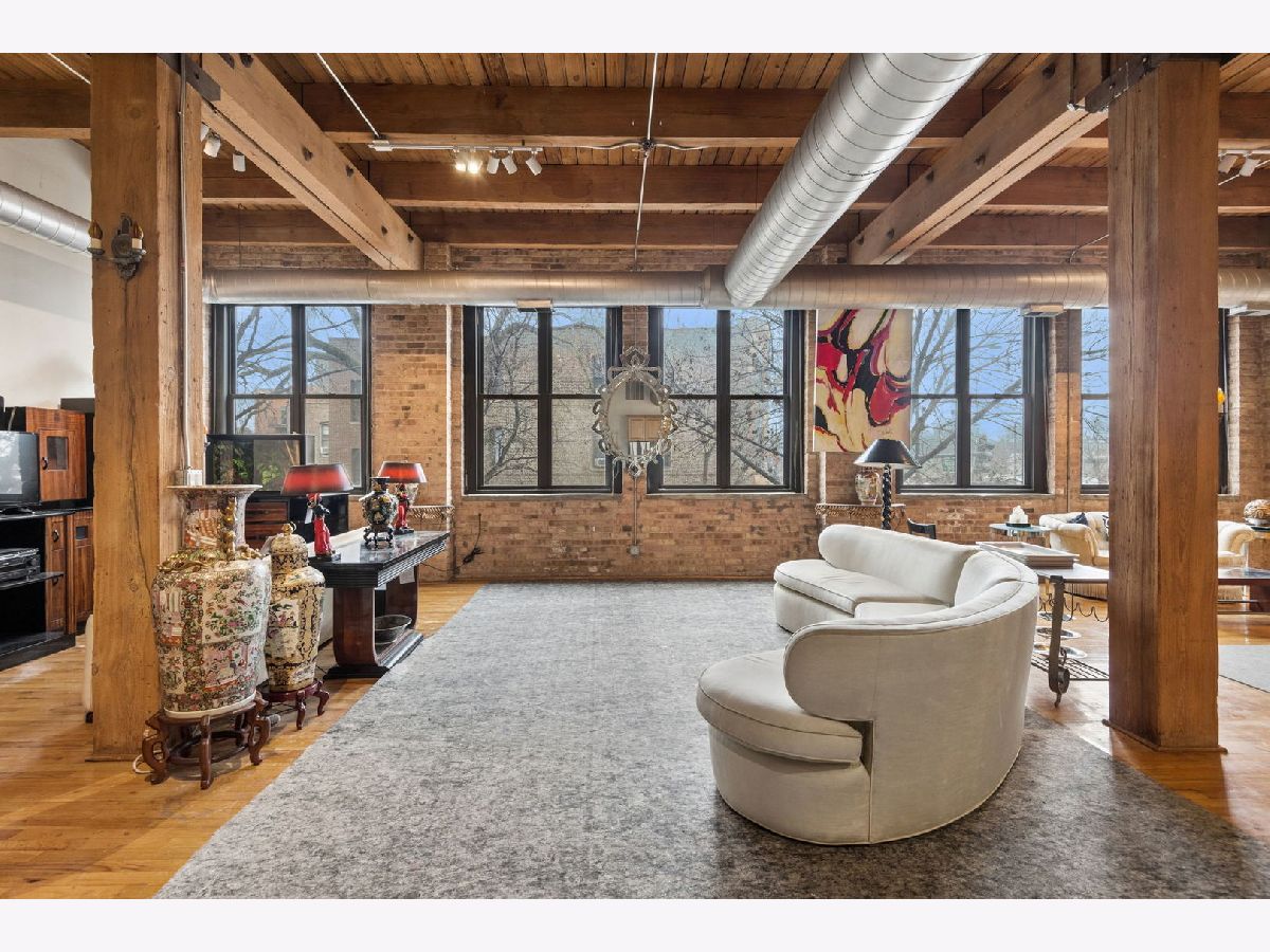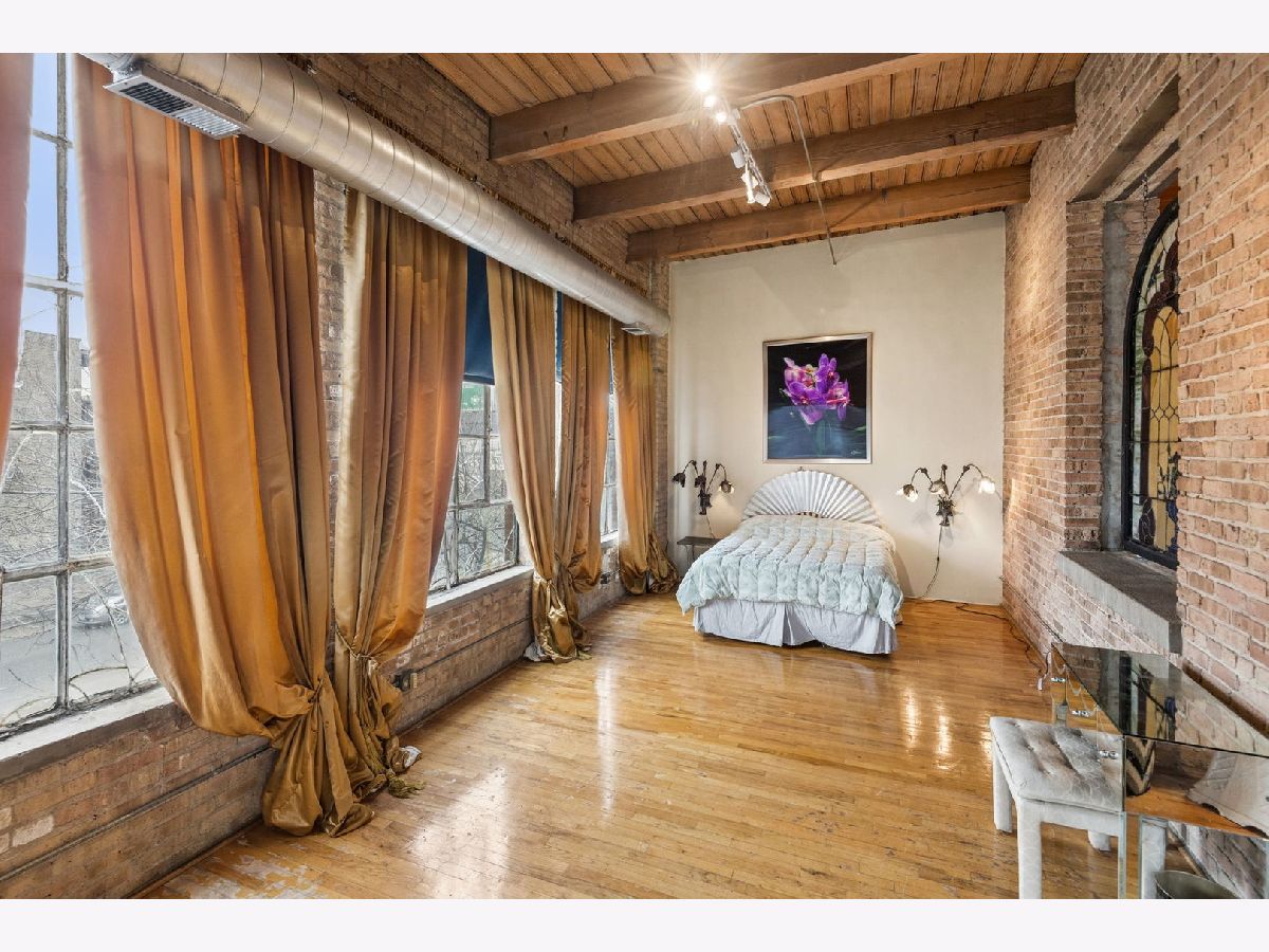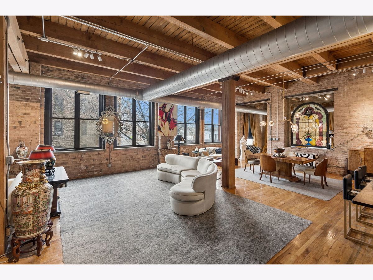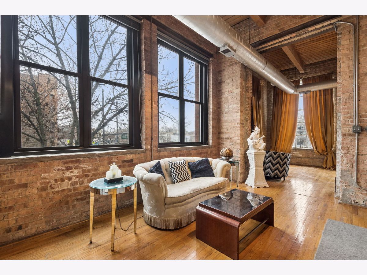 Rarely available - welcome to 2401 W Ohio #21 - in a boutique building in Ukrainian Village/Smith Park! If you want a large true loft space, this could be it! This is an estate sale and is being sold as-is. Built in 1909 with commercial space on the first floor and a service elevator in the building this expansive, light-filled corner unit (northeast corner) is approximately 1,633 sq ft and is truly a loft with soaring 13'+ timber ceilings, exposed brick, and oversized factory-style windows. This two bed unit is currently configured as a one bed, one bath with a huge walk-in closet. One space at the east end of the unit has been portioned off as a bedroom - with no door - and easily a second bedroom could exist at the west end of the unit just adjacent to a large walk-in closet. If you have seen a lot of lofts or loft wannabes, come see this one as it is stunning. Bring your thoughts and imagination and make this space your own. Unit has a full kitchen that is open to the living / dining area, with stainless appliances and a large island. Unit has one full bath, washer dryer in-unit and separate mechanicals as well. Hardwood floors throughout. Very easy permit parking on Ohio just west of the building. Easy zoned street parking. Pet friendly building. Building features common rooftop deck with grills & lovely garden and huge original freight elevator that makes moving in easy. Entire roof was replaced in late 2024. Working to get all building financials asap. No additional special assessments anticipated. Quick closing possible. Easy access to 90/94 and all that West Town has to offer.
