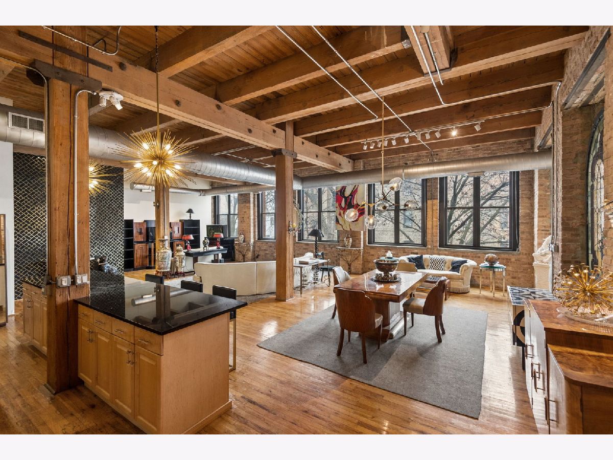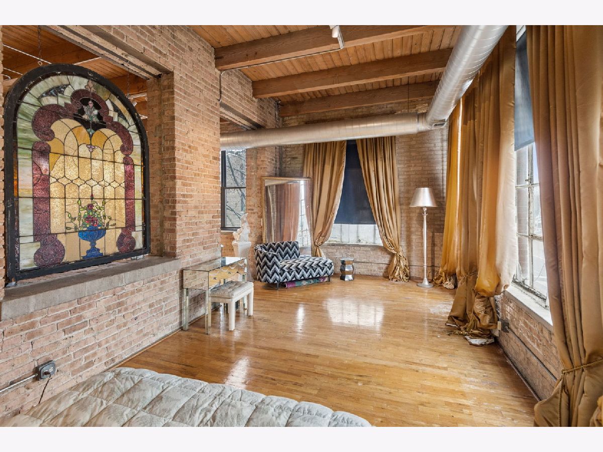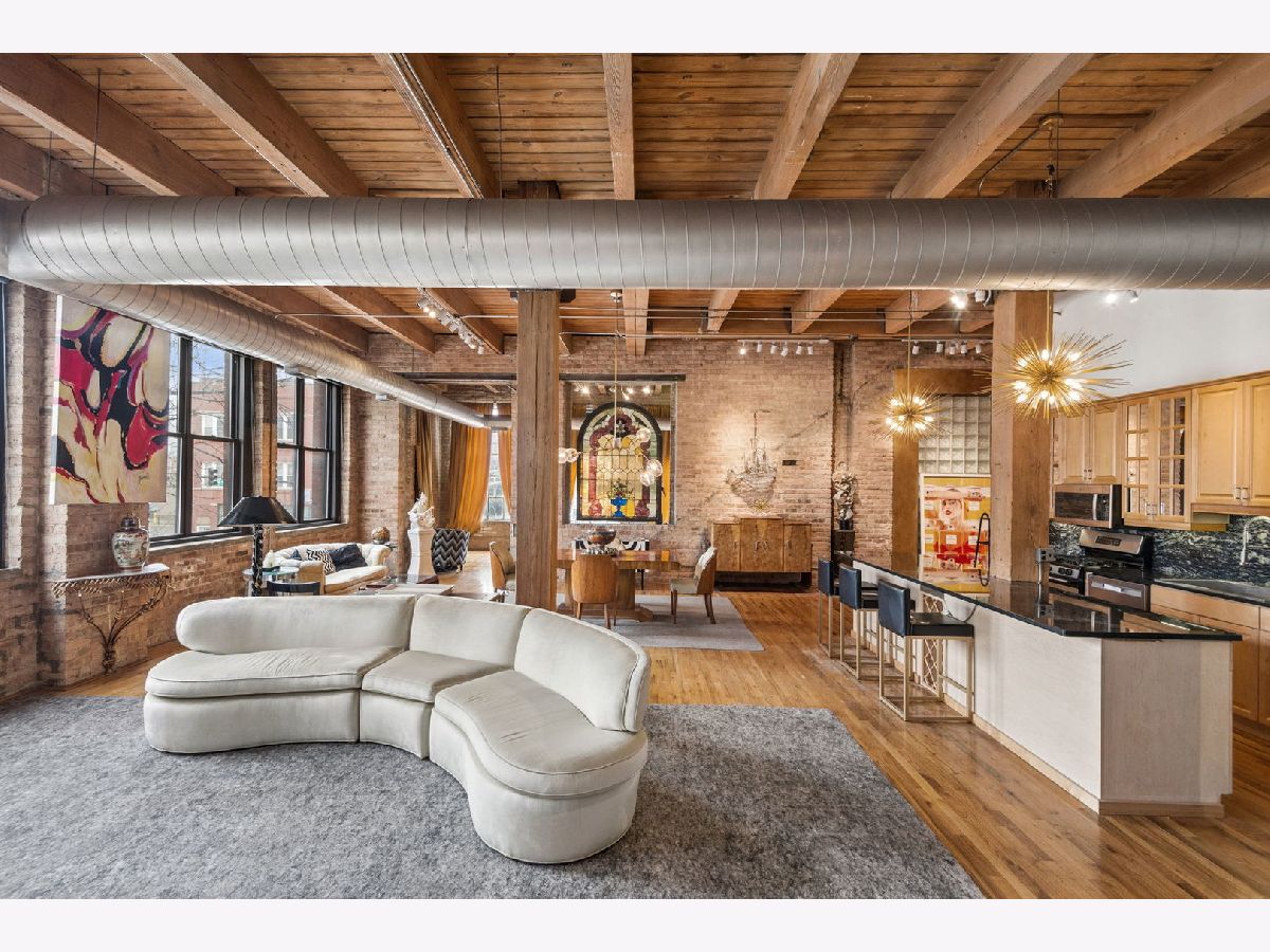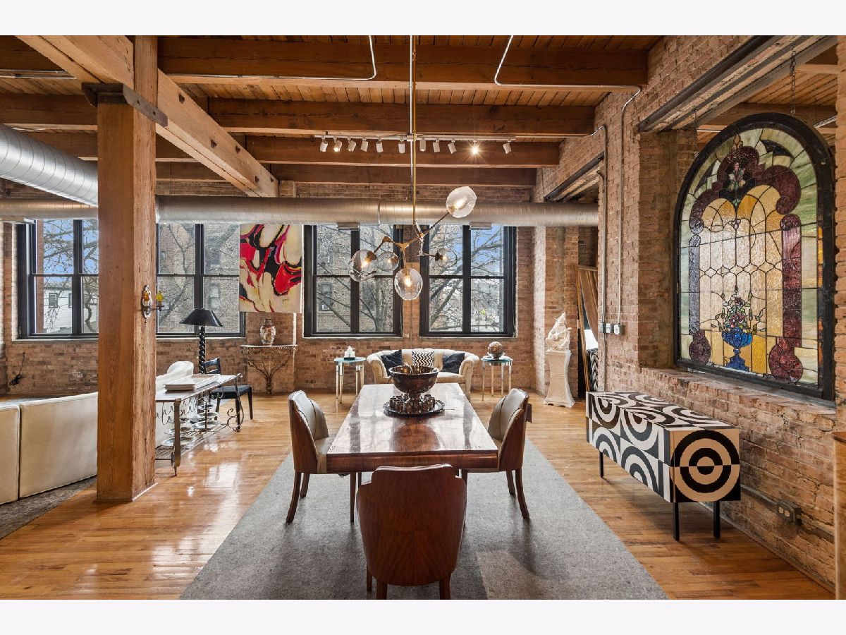 Rarely available - welcome to 2401 W Ohio #21 - in a boutique building in Ukrainian Village/Smith Park! If you want a large true loft space, this could be it! This is an estate sale and is being sold as-is. Built in 1909 with commercial space on the first floor and a service elevator in the building this expansive, light-filled corner unit (northeast corner) is approximately 1,633 sq ft and is truly a loft with soaring 13'+ timber ceilings, exposed brick, and oversized factory-style windows. This two bed unit is currently configured as a one bed, one bath with a huge walk-in closet. One space at the east end of the unit has been portioned off as a bedroom - with no door - and easily a second bedroom could exist at the west end of the unit just adjacent to a large walk-in closet. If you have seen a lot of lofts or loft wannabes, come see this one as it is stunning. Bring your thoughts and imagination and make this space your own. Unit has a full kitchen that is open to the living / dining area, with stainless appliances and a large island. Unit has one full bath, washer dryer in-unit and separate mechanicals as well. Hardwood floors throughout. Very easy permit parking on Ohio just west of the building. Easy zoned street parking. Pet friendly building. Building features common rooftop deck with grills & lovely garden and huge original freight elevator that makes moving in easy. Entire roof was replaced in late 2024. Working to get all building financials asap. No additional special assessments anticipated. Quick closing possible. Easy access to 90/94 and all that West Town has to offer.