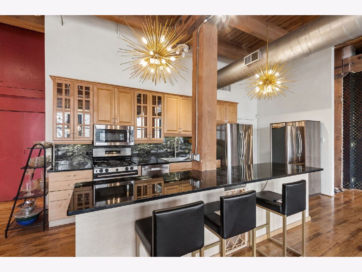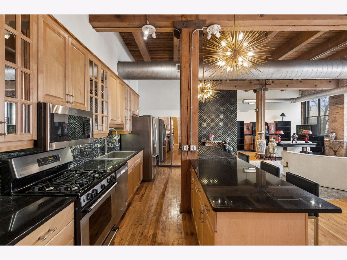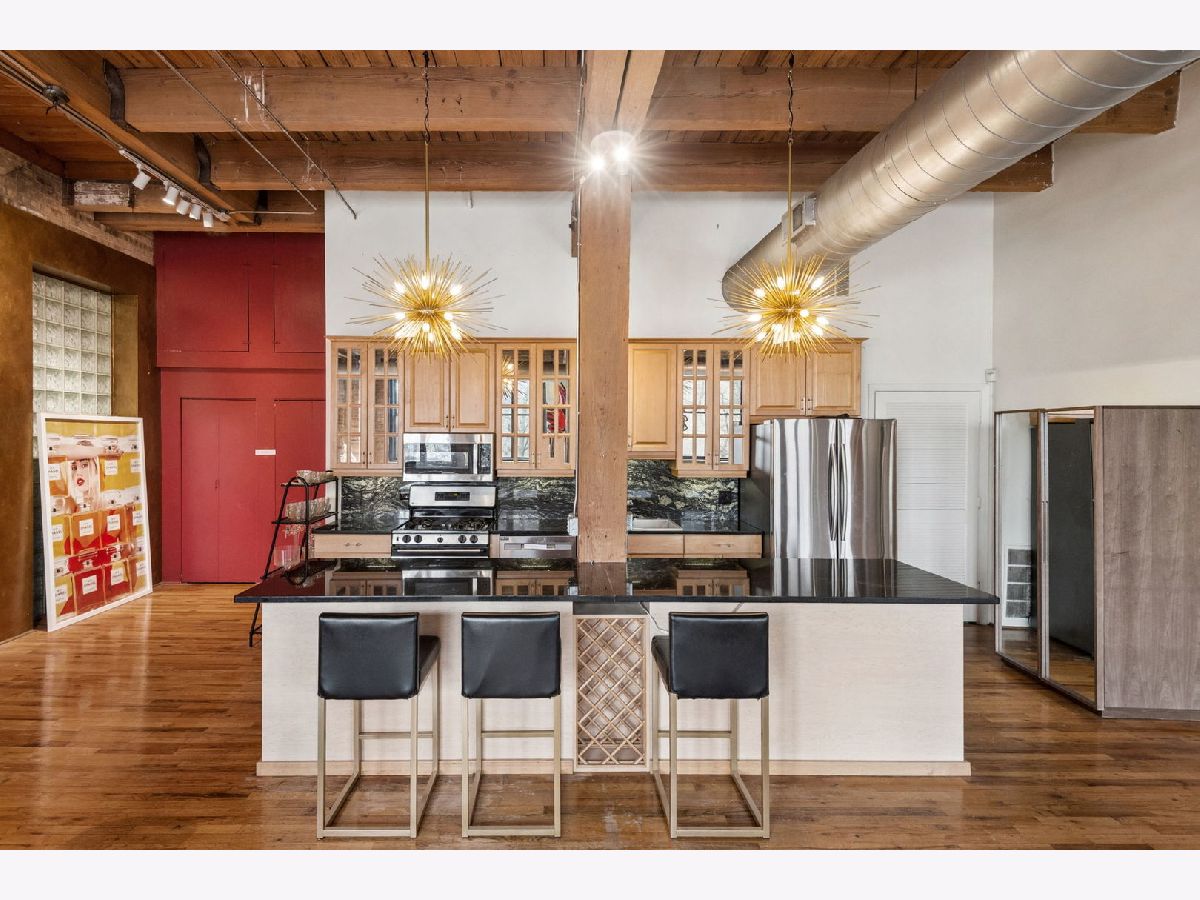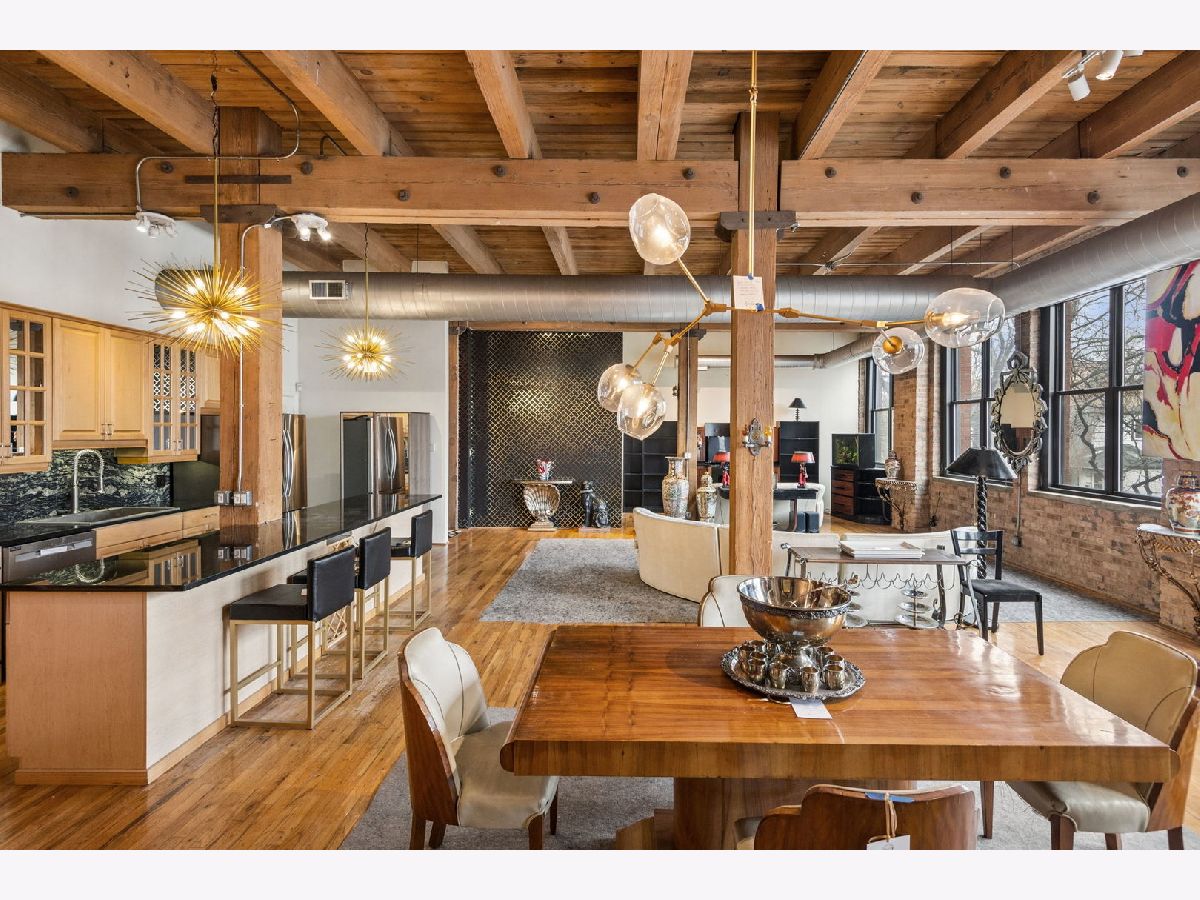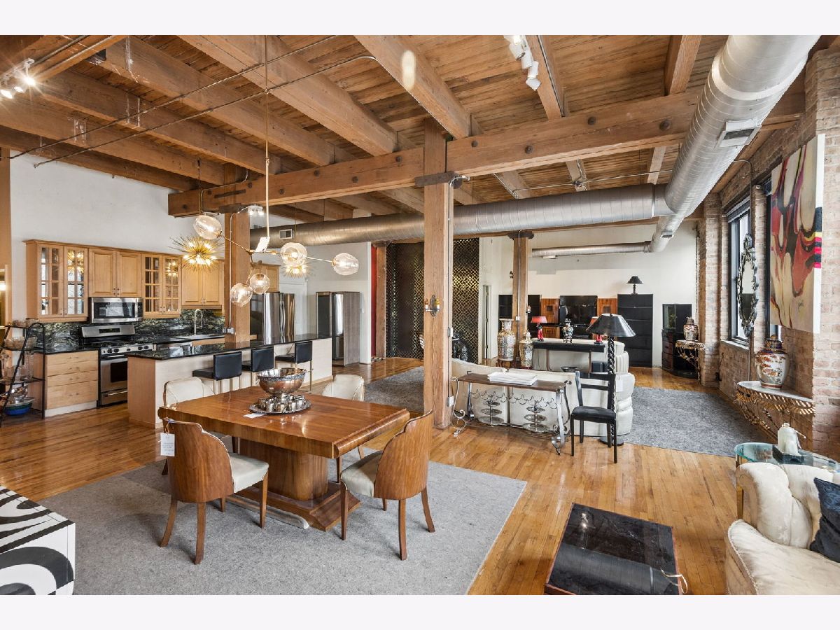 Rarely available - welcome to 2401 W Ohio #21 - in a boutique building in Ukrainian Village/Smith Park! If you want a large true loft space, this could be it! This is an estate sale and is being sold as-is. Built in 1909 with commercial space on the first floor and a service elevator in the building this expansive, light-filled corner unit (northeast corner) is approximately 1,633 sq ft and is truly a loft with soaring 13'+ timber ceilings, exposed brick, and oversized factory-style windows. This two bed unit is currently configured as a one bed, one bath with a huge walk-in closet. One space at the east end of the unit has been portioned off as a bedroom - with no door - and easily a second bedroom could exist at the west end of the unit just adjacent to a large walk-in closet. If you have seen a lot of lofts or loft wannabes, come see this one as it is stunning. Bring your thoughts and imagination and make this space your own. Unit has a full kitchen that is open to the living / dining area, with stainless appliances and a large island. Unit has one full bath, washer dryer in-unit and separate mechanicals as well. Hardwood floors throughout. Very easy permit parking on Ohio just west of the building. Easy zoned street parking. Pet friendly building. Building features common rooftop deck with grills & lovely garden and huge original freight elevator that makes moving in easy. Entire roof was replaced in late 2024. Working to get all building financials asap. No additional special assessments anticipated. Quick closing possible. Easy access to 90/94 and all that West Town has to offer.