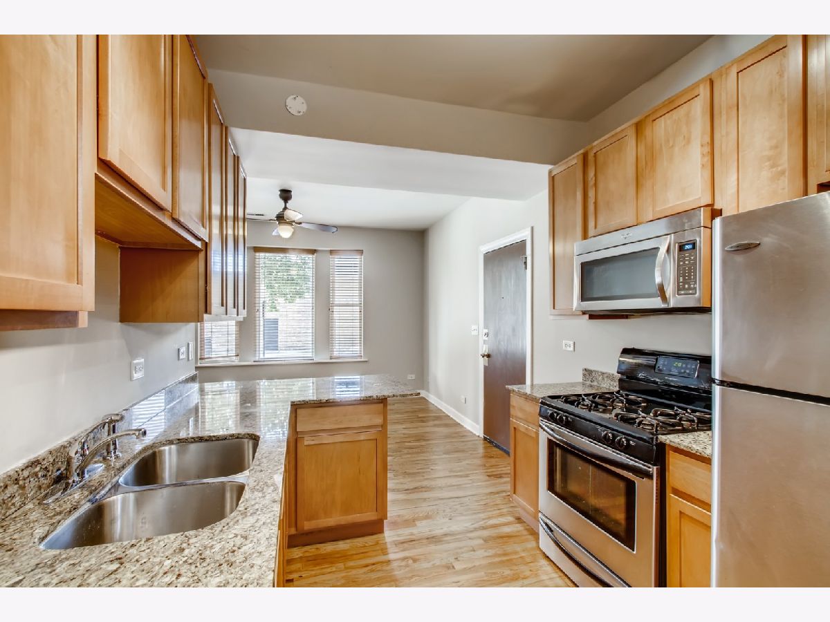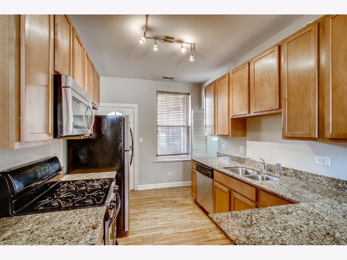 Beautiful 2 bedroom condo in red hot Logan Square location! Unit features recently renovated kitchen with granite counters, breakfast bar, and stainless appliances. Hardwood Floors throughout, central AC, and laundry in unit. Bathroom features a large Jacuzzi Tub. Unit has access to outdoor deck and additional storage. Building is pet and investor friendly. Close to public transportation, shops, nightlife, and more!