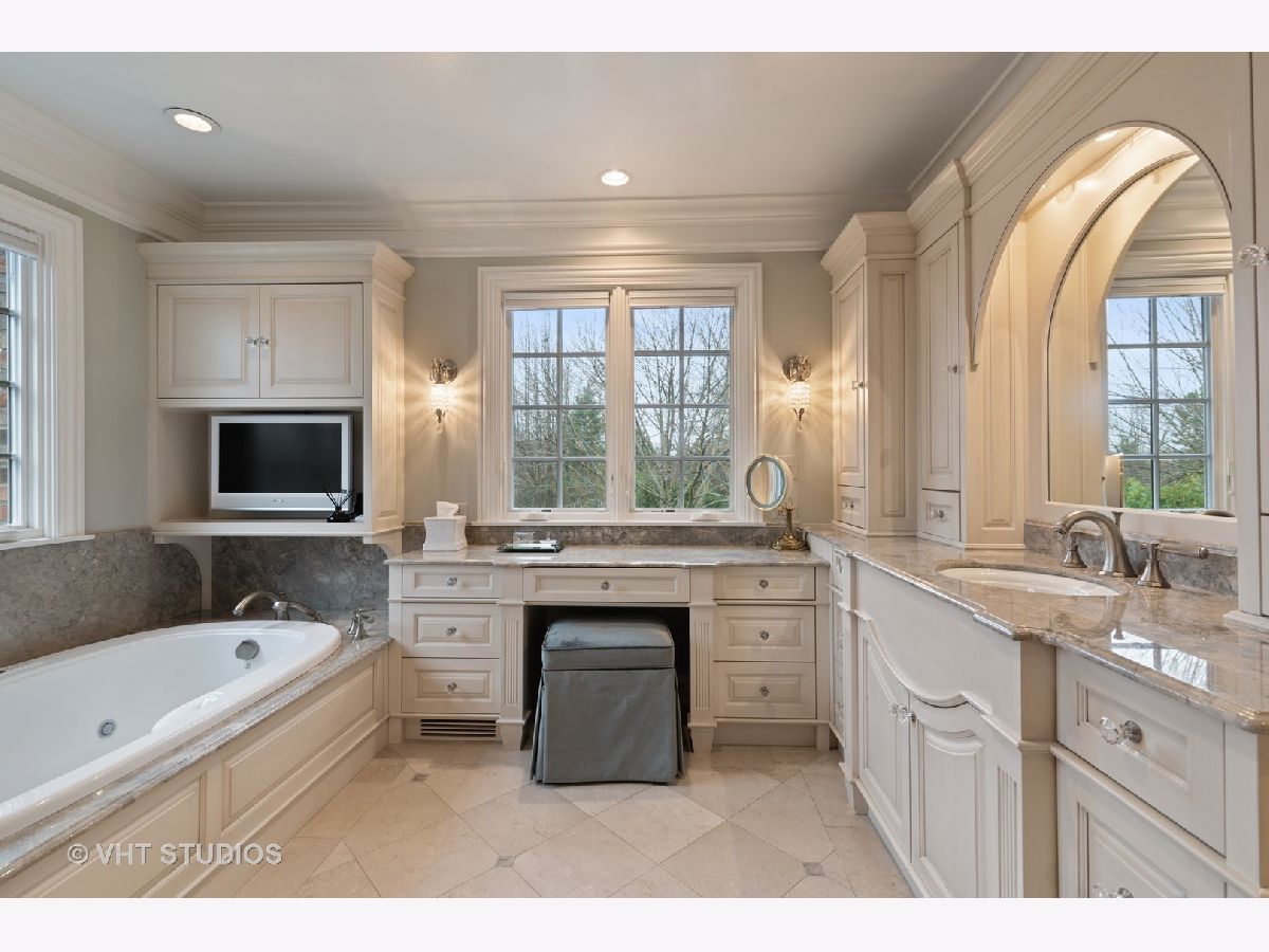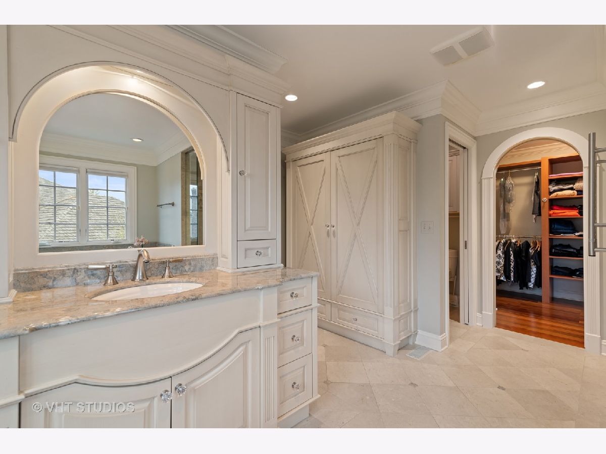 When only the best will do! Magnificent renovations by Orren Pickell and Benvenuti and Stein are featured throughout this elegant 5 bedroom, 5.1 bath home with hardwood floors and custom millwork throughout. Gourmet kitchen with Woodmere 42" solid and glass front cabinets, granite countertops, center island, breakfast bar, and stainless steel appliances including SubZero, Miele, and Thermador. First floor bedroom and en-suite bath. Family room with vaulted ceilings, limestone gas log fireplace, wet bar, and French doors to the patio. The master suite is a retreat with a lake view, and stunning en-suite bath with steam shower and walk-in closet. Second floor library. Bedrooms two and three are connected by a Jack and Jill bath, bedroom four has an en-suite bath. Large lower level with full bath and cedar closets. Beautiful brick paver patio with speakers, large yard, and views of the lake. Stunning home in a stunning location!
