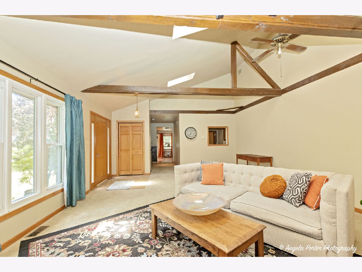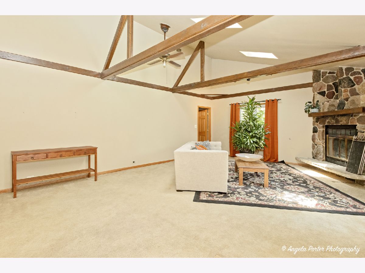 Welcome to this spacious and inviting 3 bedroom, 2 bath ranch home, perfect for comfortable living and entertaining. The living/great room boasts a stunning vaulted and beamed ceiling, complemented by a magnificent floor-to-ceiling stone fireplace The adjoining family and dining rooms seamlessly open to a fantastic wrap-around deck, ideal for enjoying quiet summer nights or hosting lively gatherings. There is a total of 3 fireplaces in this home, full unfinished basement for additional living space. Additional features include access to Forest Lake, oversized 2-car garage with lots of storage space or man/she cave. Situated on 3 generous lots with 1 PIN#. Mature landscaping all around the home that provides privacy, and plenty of outdoor space for relaxation and recreation. Don't miss the opportunity to make this charming property your own!