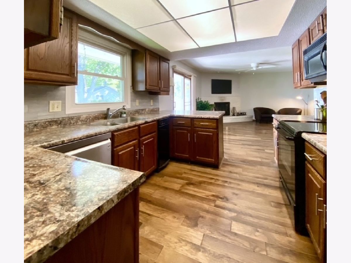 Sprawling brick ranch that marks all the boxes! Owners planned on this being their forever home, investing close to 50K in quality improvements and renovations. Gorgeous curb appeal, two living spaces, 3 bedrooms and two 2 full baths The big back yard is fenced, has mature trees, seasonal perennials, a quality garden shed, and a newly added private separate fenced in patio area. The list goes on, big bedrooms and large closets, all the bedrooms and family room have ceiling fans. The spacious front room has a beautiful picture window. Attractive new hardwood all areas except bedrooms with new carpet. The kitchen has updated backsplash and counters, lots of and a formal separate dining area. Kenmore High-end Counter Depth, Smart French Door Refrigerator, Fingerprint Resistant new 2022. LG - Smart Top Control Top of the line Bosch Dishwasher with QuadWash, TrueSteam,Rack, PrintProof, Stainless Steel, new in 2021. The family room and kitchen are wide open, with the lovely all white brick fireplace. Convenient laundry room off the family room, with matching kitchen cabinets and a "slop" sink. Brand new furnace and a/c in 2021. New roof and gutters, with extra large spouts due to length of house, 2020. Ovesized 2.5 bay garage with separate work bench area in the back. Winding, tree lined street with neighbors showing pride of ownership. Super low taxes too. You will NOT be disappointed with this one! Will not last...priced to SELL!