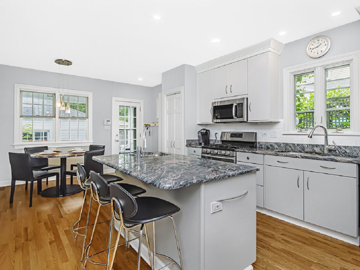 Lovely, move-in condition home in desirable NW Evanston! This fabulous house has been added on and updated in meticulous detail throughout. The generous living room has a wood burning fireplace and built-in bookshelves. Formal dining room with a serving area/butler's pantry. The first-floor family room has French doors to the dining room and pocket doors to the kitchen. Fabulous eat-in kitchen has a large island with breakfast bar, granite countertops, 42" cabinets, and stainless-steel appliances. First floor full bathroom. The room-sized screened porch overlooks the enchanting yard, which was professionally landscaped and is maintained by Chalet. Primary suite has 2 closets, including a large walk in, built-in bookcases and a tray ceiling. The large private bathroom has a jacuzzi tub, shower and double vanity. Two more bedrooms and a hall bath complete the second floor. The basement has a recreation room, laundry, half bathroom, shop area and plenty of room for storage. The 2-car garage is insulated and has loft storage. Desirable Willard elementary/Evanston Township High School. Wonderful location, walk to Bent and Lovelace Parks, close to Central Street shopping, dining and entertainment, Westfield Mall and easy access to the expressway.