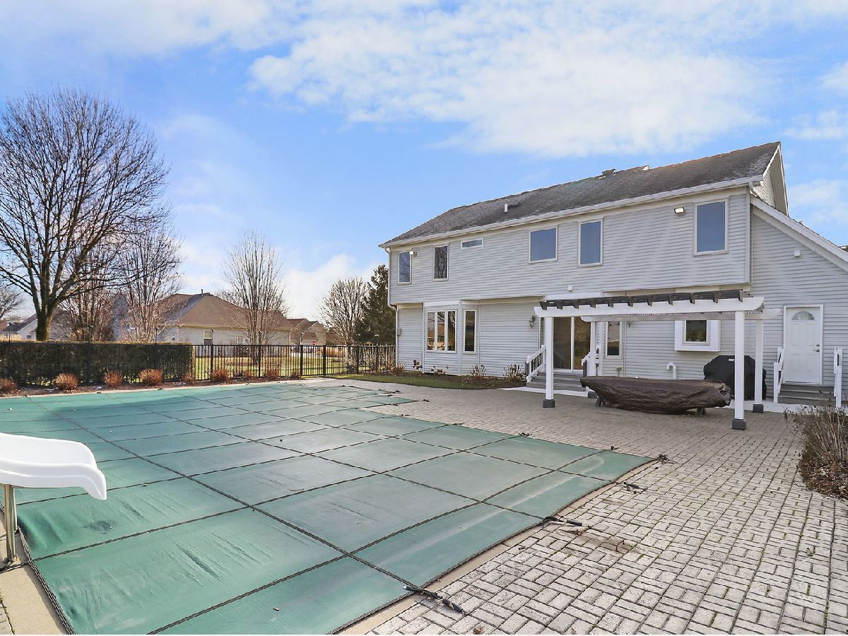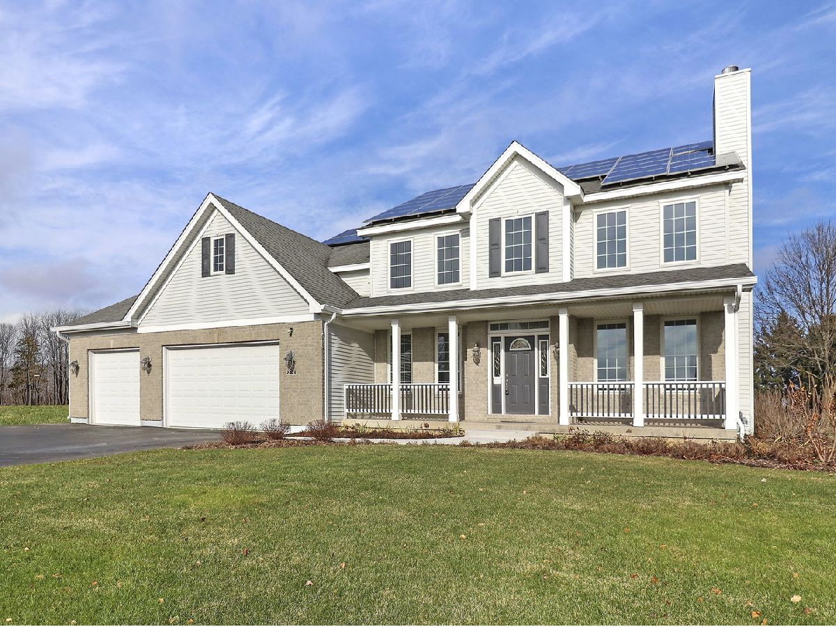 This stunning 4 bedroom, 3.5 bathroom home is nestled on a peaceful lot that backs up to farmland, offering privacy and breathtaking views. Step inside and you'll immediately notice the attention to detail and high-end finishes throughout. The kitchen features Corian countertops, solid oak cabinets, and brand new appliances. With two spacious pantries and a convenient second-floor laundry room, storage and organization are a breeze. The living room is the perfect place to unwind, boasting a gas plumed, wood-burning fireplace for cozy evenings. The entire house is equipped with smart lights, allowing you to control the ambiance with a simple touch. Upstairs, the primary bedroom suite offers a tranquil retreat with ample closet space and an en-suite bathroom. The other three bedrooms are all generously sized and share a beautifully updated full bathroom. Outside, the heated in-ground salt water pool is a true oasis and the fenced area ensures privacy while you enjoy a refreshing swim. The pool shed is wired with electricity, providing convenience for poolside gatherings. Additional amenities of this home include an oversized heated 3-car garage for all your parking and storage needs, additional parking outside the garage, a storage shed, and an open front porch where you can relax and take in the serene surroundings. Furthermore, this home is energy efficient with solar panels on the roof to help you save on utility costs and new Andersen windows keep the interior bright and well-insulated. Don't miss the opportunity to make this incredible property your own. Schedule a showing today!