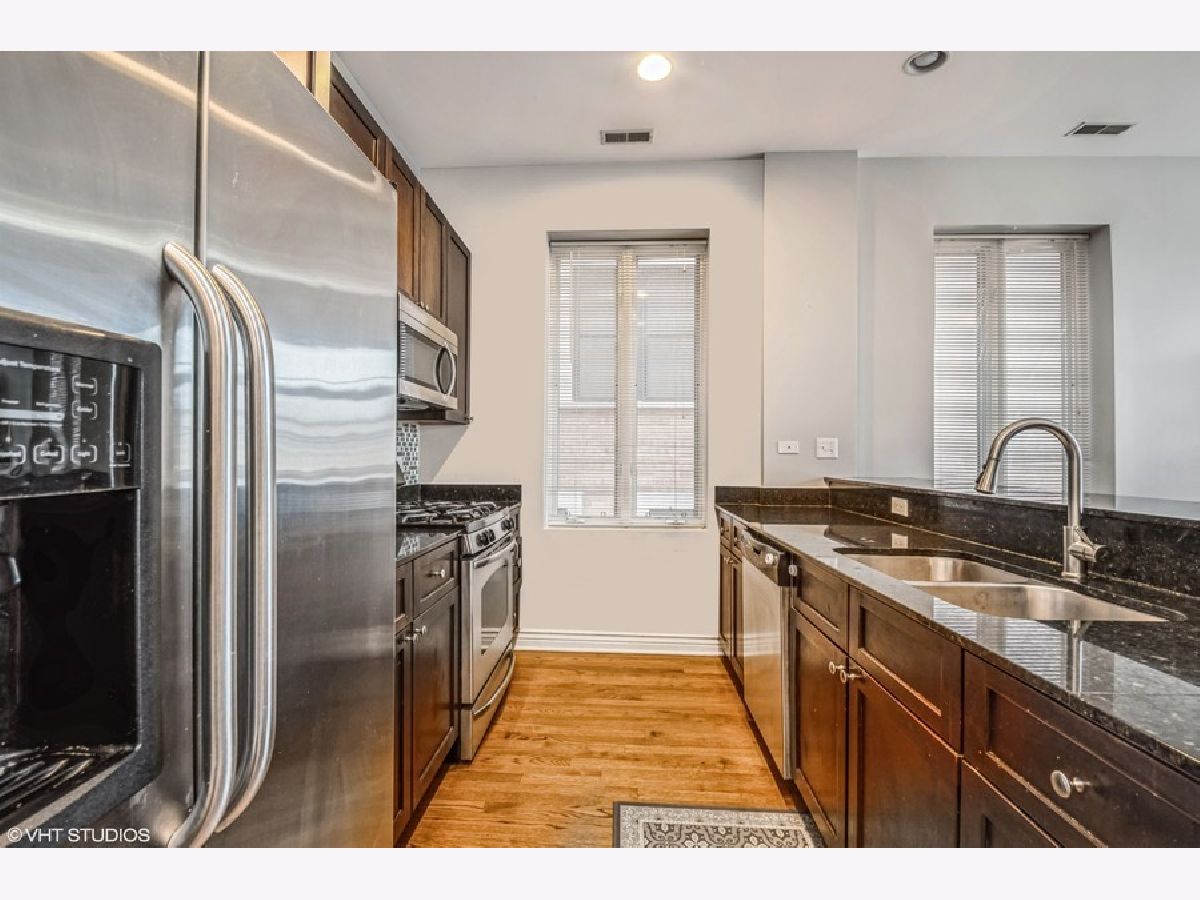 This corner-unit 2-bedroom, 2-bathroom condominium is located in the Lincoln Square neighborhood. Only blocks from the transportation, dining, and entertainment options of Lincoln Avenue, this home is also in walking distance to the green space of Legion Park on the North Branch of the Chicago River. The 10' ceilings provide plentiful natural light throughout, and owners may enjoy the outdoors from the large balcony found off of the living room. The chef's kitchen is loaded: features include an oversized breakfast bar, granite countertops, a full-height backsplash, 42" maple Shaker cabinets, and undermount sinks. The primary suite boasts a separate jacuzzi tub and European-height dual vanities. The home has in-unit washer and dryer, and one included corner garage parking spot is large enough to provide extra storage on-site