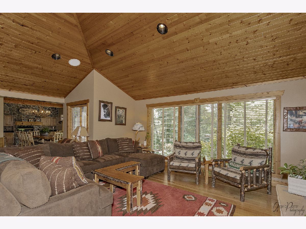 Love luxurious cabin living? This well-thought-out knotty pine rustic home is for you. From the paver walkway all the way to wooded outdoor oasis, you will feel like you are at a retreat. Hardwood floors, 4 natural stone fireplaces, wood-beamed vaulted ceilings and floor-to-ceiling windows, this is a vacation you never have to leave! The kitchen, remodeled in 2019, boasts hickory cabinets, granite and slate countertops, new SS appliances (2021). The huge dining room with fireplace, white cedar beams, a built-in bar area, and floor-to-ceiling windows for amazing views. This addition was completed in 1991. This beautiful 5 bed 4 bath estate sits on just about an acre of meticulously landscaped grounds with sprinkler system. Very private setting with incredible outdoor spaces including a large deck with a screened-in gazebo overlooking a natural stone waterfall and pond. Grand paver patio with firepit, outside tree lighting, not to mention the hot tub! Large master bedroom, full master bath with heated floors, large walk-in closet, and fireplace. Fully finished basement with family living space, bedroom, full bath with spa tub, wine cellar and cedar closet. Detached 2.5 car heated garage with closets. New roof, 2011; New AC zone 1 (2020); zone 2 (2015) plus many more mechanical upgrades. See the full list in the additional information section. Once you see this house, you'll never want to leave.