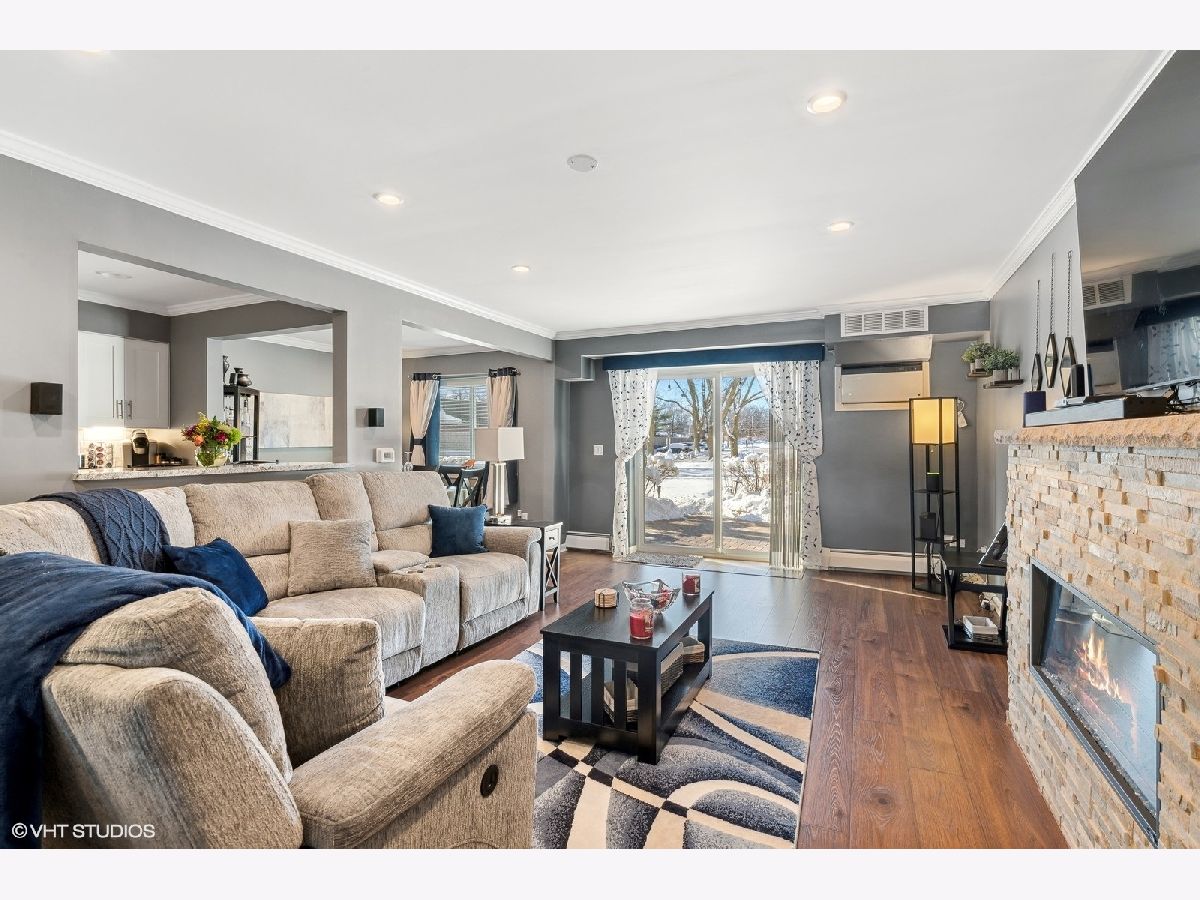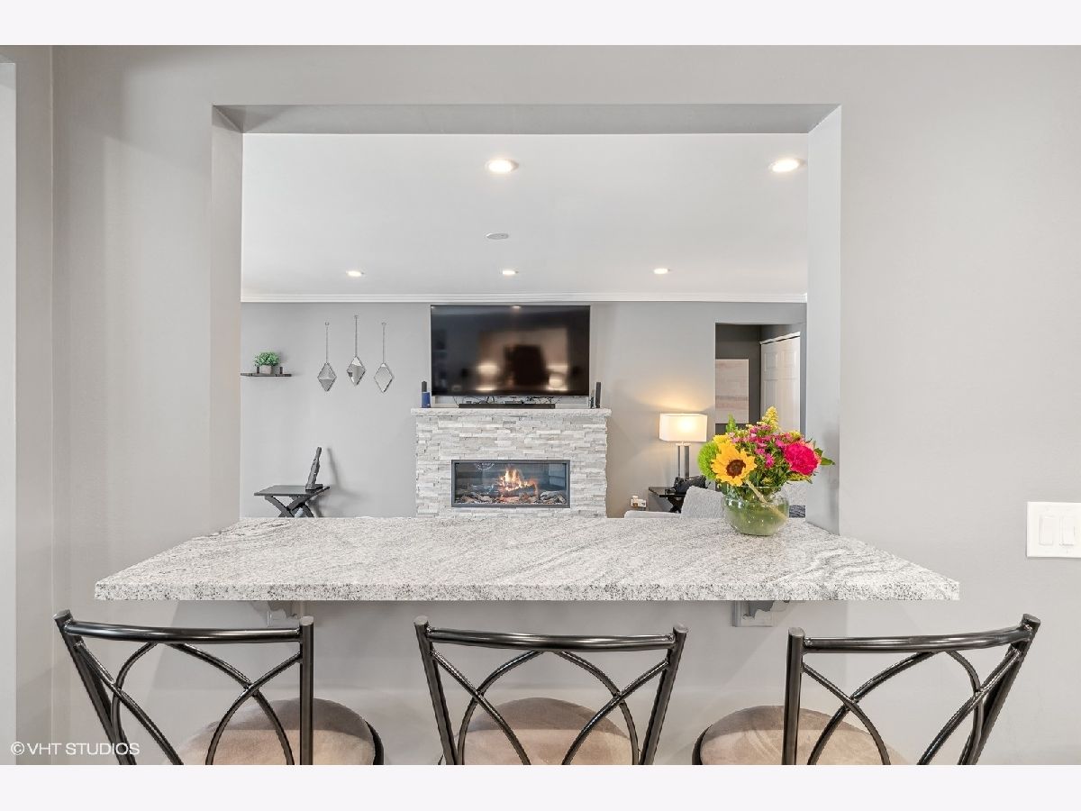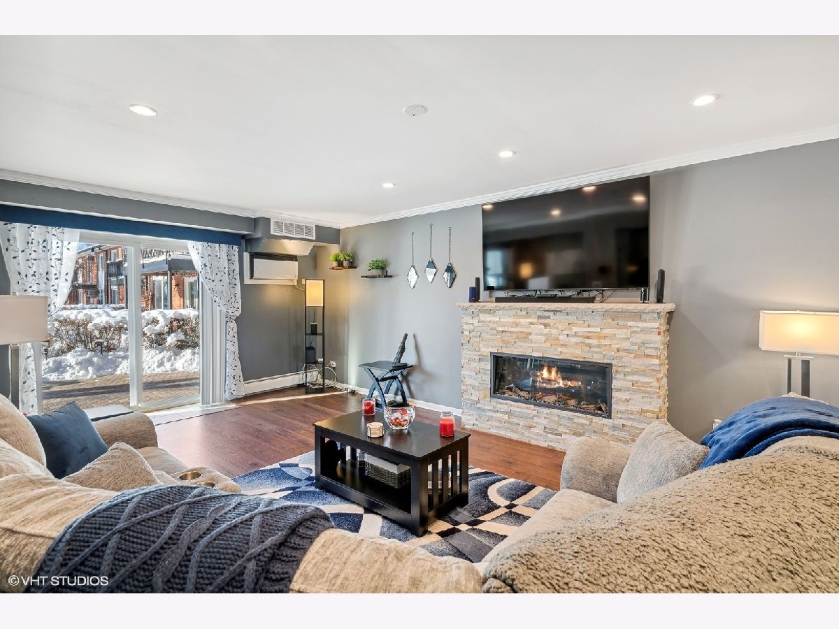 Wow! Wait until you see this extensively updated 1st floor condo. It is absolutely gorgeous, in pristine condition and has a TON of upgrades. Definitely one of the nicest units in this complex! Upgrades in the past year include a totally remodeled kitchen that sparkles with quality white cabinetry, granite counters, new sink and backsplash, stainless appliances (including beverage refrigerator), extended counter with stools, new flooring and a separate eating area/dining room. The large kitchen pass-through to the living room provides an open & airy feeling and makes this unit more entertainment friendly. The custom built-in electric fireplace with heater is a beautiful focal point to the spacious living room and lets you enjoy multi-colored flames or a single color of your choice. Create the ambiance you are looking for at the touch of a button! Both bedrooms are a nice size and have wood laminate flooring, and the primary bedroom offers a large walk-in closet and updated private bath. Other upgrades include new LVP flooring in Living room, Dining Room and Hallway, recessed lighting, crown molding, custom paint throughout in today's colors and 2 beautifully updated baths with granite counters. ALL windows and sliding glass door were replaced in 2023. Enjoy quiet time on the new brick paver patio with accent lighting and new landscaping. So much is new in this condo...the list goes on. Association fees include heat, water, scavenger, snow and lawn care and use of pool and tennis/basketball court. The roof on this building was replaced in 2019 so no need to worry about upcoming assessments. Convenient location close to shopping & restaurants. Just 10 minutes away from the fun night life in downtown Arlington Heights. It promises a little of something for everyone and offers tons of restaurants to please every palate! Worth a look! I guarantee you won't be disappointed!