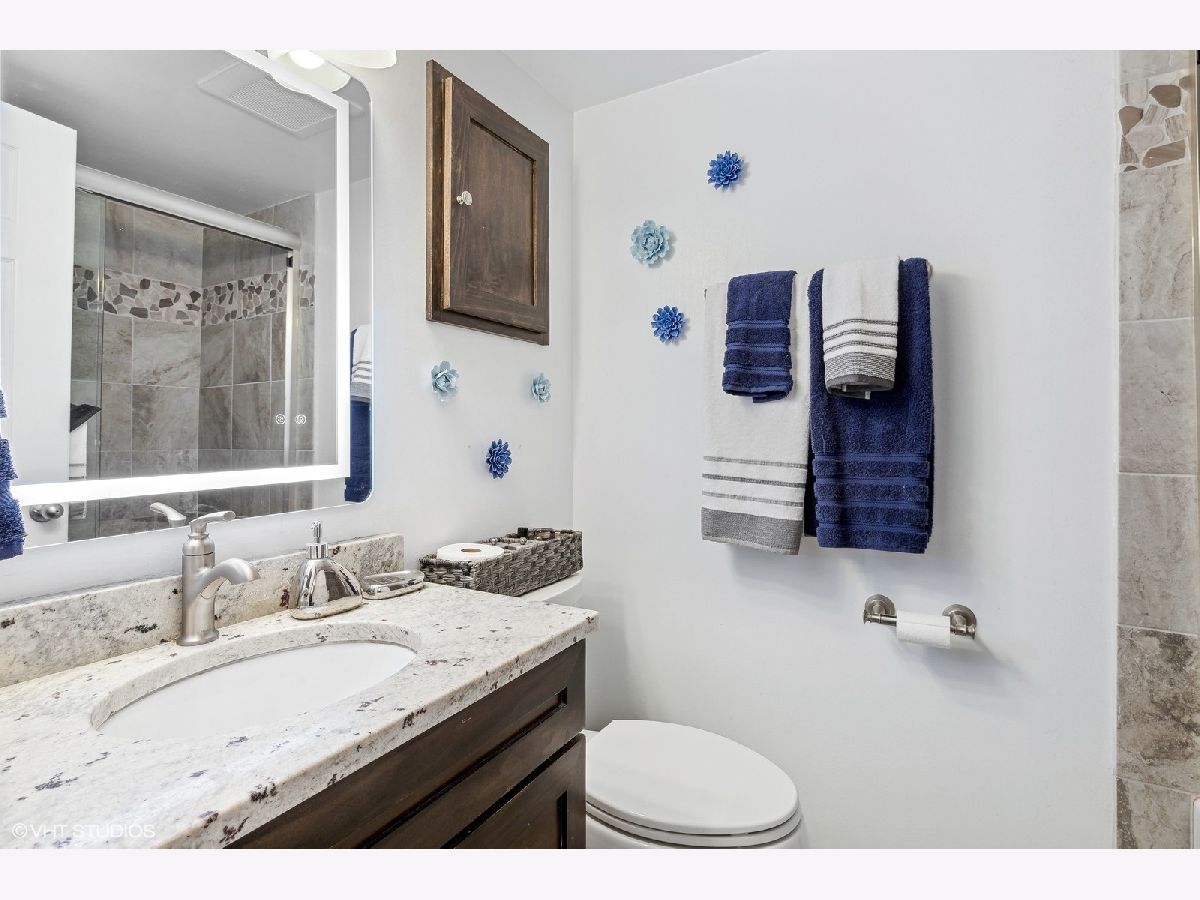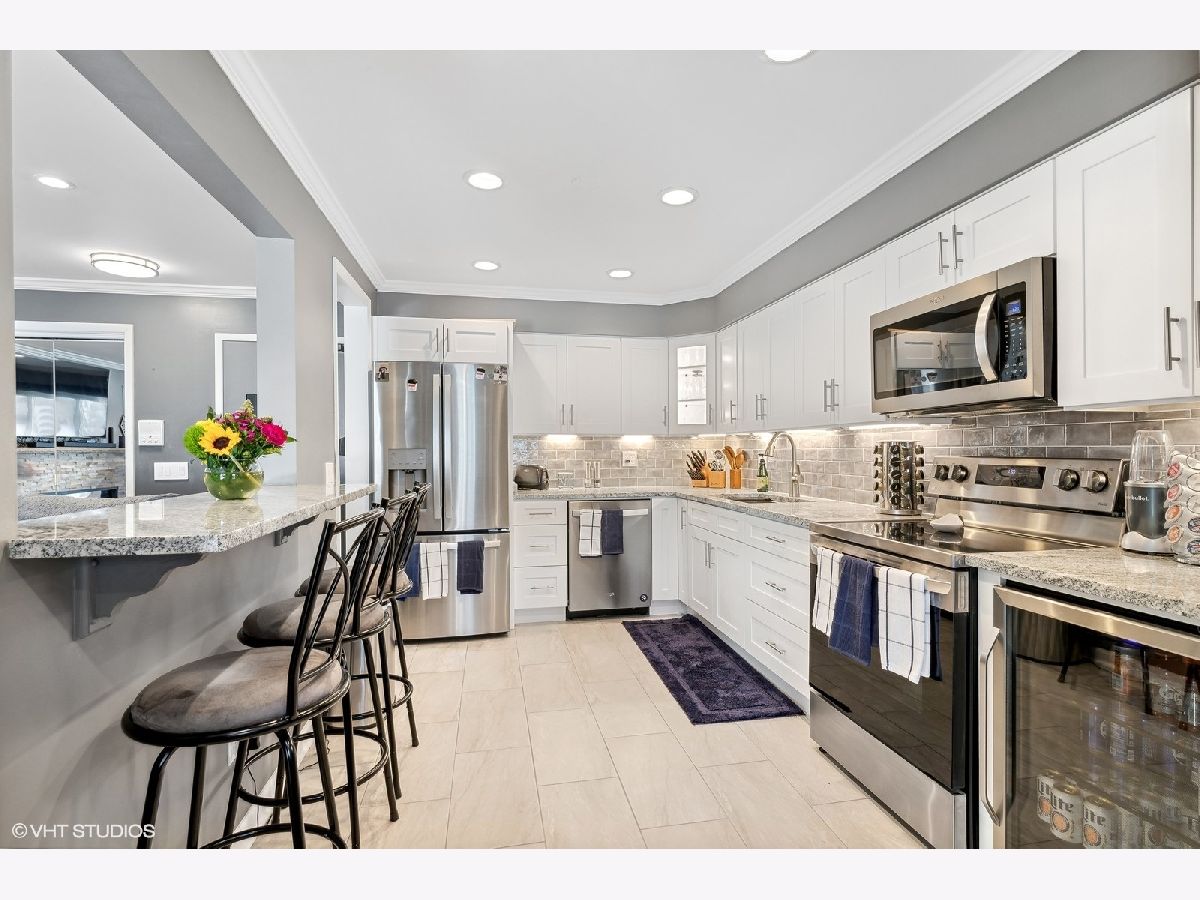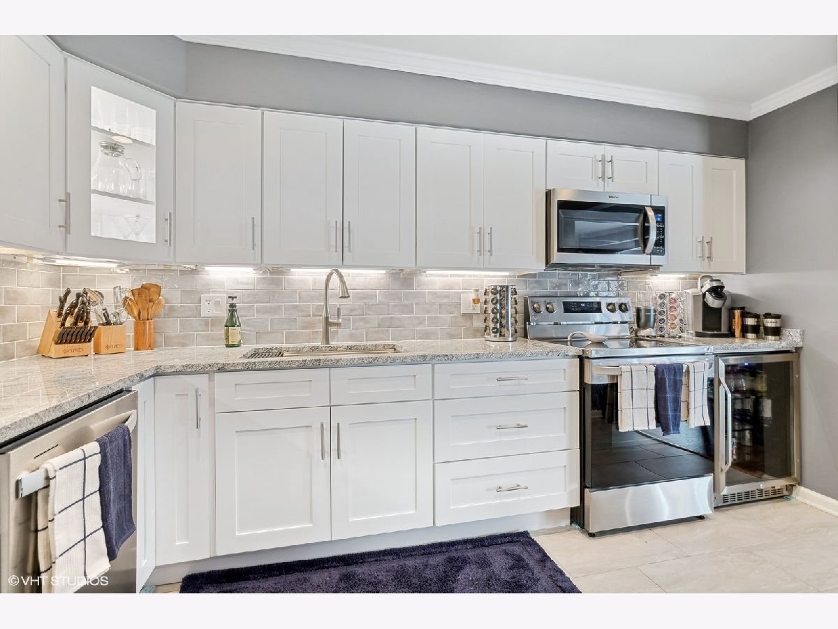 Wow! Wait until you see this extensively updated 1st floor condo. It is absolutely gorgeous, in pristine condition and has a TON of upgrades. Definitely one of the nicest units in this complex! Upgrades in the past year include a totally remodeled kitchen that sparkles with quality white cabinetry, granite counters, new sink and backsplash, stainless appliances (including beverage refrigerator), extended counter with stools, new flooring and a separate eating area/dining room. The large kitchen pass-through to the living room provides an open & airy feeling and makes this unit more entertainment friendly. The custom built-in electric fireplace with heater is a beautiful focal point to the spacious living room and lets you enjoy multi-colored flames or a single color of your choice. Create the ambiance you are looking for at the touch of a button! Both bedrooms are a nice size and have wood laminate flooring, and the primary bedroom offers a large walk-in closet and updated private bath. Other upgrades include new LVP flooring in Living room, Dining Room and Hallway, recessed lighting, crown molding, custom paint throughout in today's colors and 2 beautifully updated baths with granite counters. ALL windows and sliding glass door were replaced in 2023. Enjoy quiet time on the new brick paver patio with accent lighting and new landscaping. So much is new in this condo...the list goes on. Association fees include heat, water, scavenger, snow and lawn care and use of pool and tennis/basketball court. The roof on this building was replaced in 2019 so no need to worry about upcoming assessments. Convenient location close to shopping & restaurants. Just 10 minutes away from the fun night life in downtown Arlington Heights. It promises a little of something for everyone and offers tons of restaurants to please every palate! Worth a look! I guarantee you won't be disappointed!