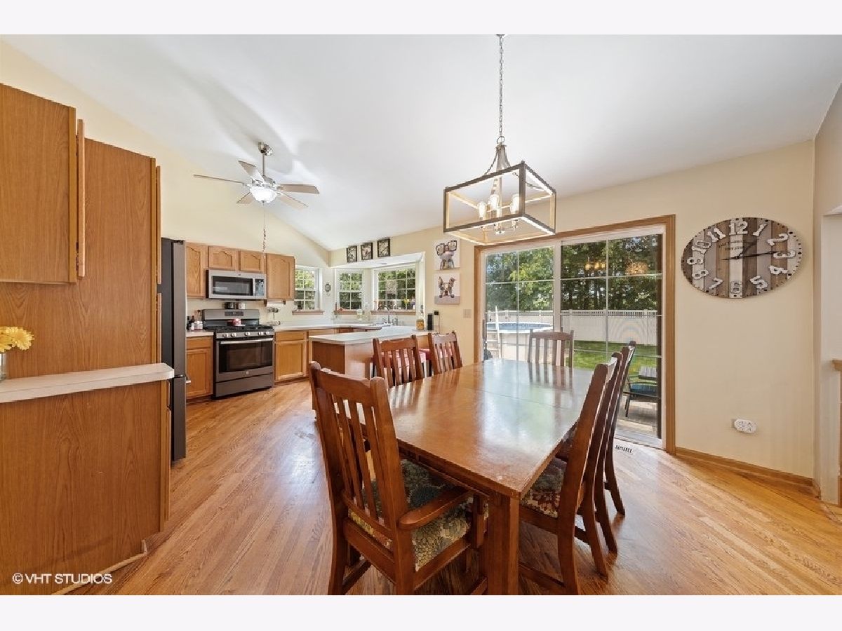 Vacation at home! Wonderful 3 bed, 2 bath home in the Riverwalk Subdivision. Ideal for outdoor entertaining with your own private above-ground pool, privacy fenced back yard, and concrete patio with fire pit! Open concept kitchen/dining/sunken family room area. Well maintained with recent updates to major items - new high efficiency furnace and AC unit in 2017, new tear-off roof 2018, all kitchen appliances replaced with stainless steel 2019 and new pool liner in 2020. Hardwood flooring on main level living room and kitchen/dining as well as the master bedroom. Yard also has a sprinkler system and backs to tree-lined open space. Low taxes and Plainfield schools, close to shopping and I55/I80 highways. Come for a visit today!