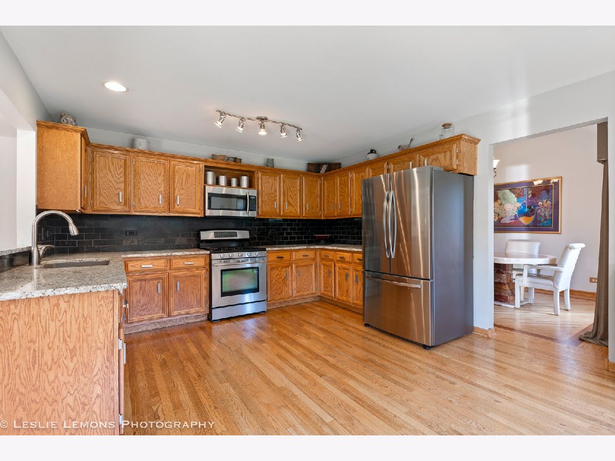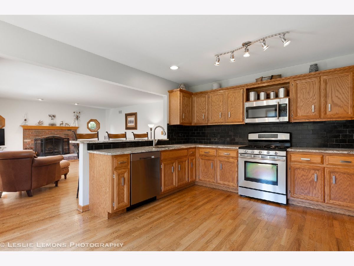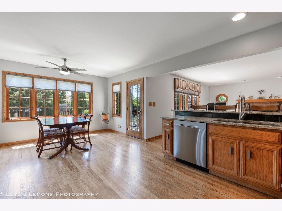 Outstanding home with 3,810 sq. ft., includes full finished basement and a work/utility room. Gorgeous, spacious yard with lush grass, & mature trees offering privacy and delightful landscaped perennial flower beds. Full fence with fence posts just installed in 2021. Custom stone patio with one of a kind, vintage late 1800's Chicago trolly car route walkway granite stone fireplace and attached gas stainless steel grill. Fully fenced. Interior Hardwood floors with decorative inlays throughout the main floors. Soft Neutral interior painting. Plenty of Kitchen cabinetry. Stainless Steel Samsung Refrigerator (2023), dishwasher (2021), stove/oven and microwave. Kitchen & Bath Granite beautiful counter tops. Kitchen has full tiled backsplash. Family room so comfortable with masonry brick fireplace. Fireplace has new glass windows installed in 2022. Expansive windows & fancy octagon windows. Unique, newer lighting. Fans in all bedrooms, (2 new fans). Full, open floor plan finished basement with built-in bookcases, cedar wood Wine cellar, custom bar with lead glass inset on cabinet doors, seating in front and behind the bar, Custom brick wall outlines Cast Iron hentilator type controlled with separate thermostat, free standing fireplace, and beverage & wine cooler refrigerators included. Basement insulated for sound reduction of music and media. Plenty of storage within built-in shelving closets, & work room. Well cared for and maintained home. Comfortable & serene living. Easy access to I55 Hwy and Rt 59 and Rt. 30. Shopping, services, downtown Plainfield located approx. 2 miles.