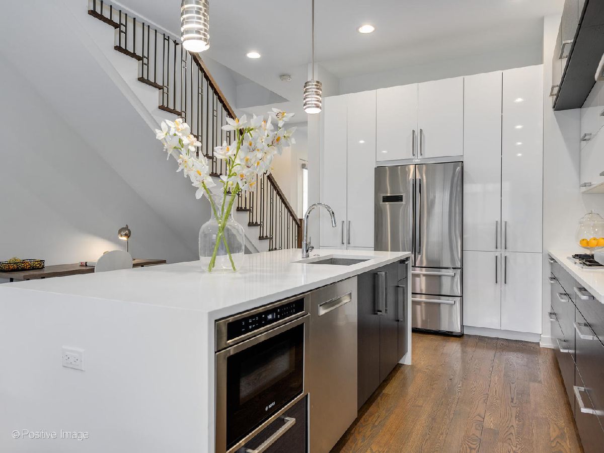 MASSIVE Newer construction STUNNER with 5 bedrooms 3.1 bathrooms, 2 car garage and full length roof top located on a very desirable block in West Bucktown. Modern, ALL BRICK 4200SF single family home that has natural light pouring in. Enter into the side entrance to a formal living room with an eye catching fireplace. Separating the formal from the rest of the home is a nicely tucked away half bath (exactly where you want it!). You will appreciate this extra wide floor plan and feel every bit of it entering into the very sleek, modern kitchen with flat paneled cabinetry, high-end Bosch appliances package, sizable breakfast bar with waterfall countertops, and beautiful pendant lighting. The kitchen opens up to a spacious living room that is perfect for entertaining and larger families. You will love the lower level with great ceiling height and SPACE along with a convenient wet-bar and 2 more bedrooms. Come to the 2nd floor where you will find 3 generously sized bedrooms- primary bedroom has a large walk-in closet and the spa bath has dual sinks and a huge stand alone shower finished with beautiful porcelain tile and a 15 ft terrace overlooking a tree-lined street. Awesome paved private back yard! Located to the CTA blue line, shopping. restaurants, the 606 trail. PRIME LOCATION!!!