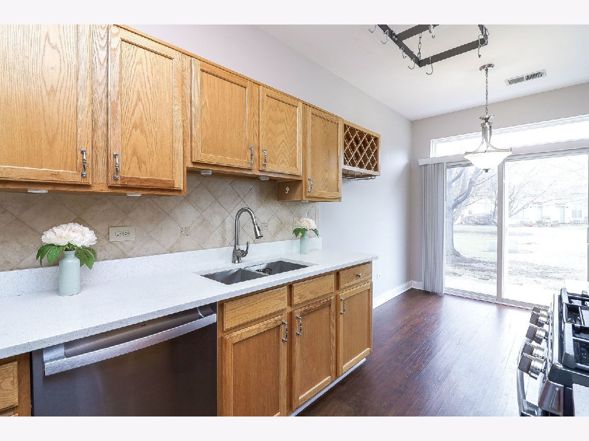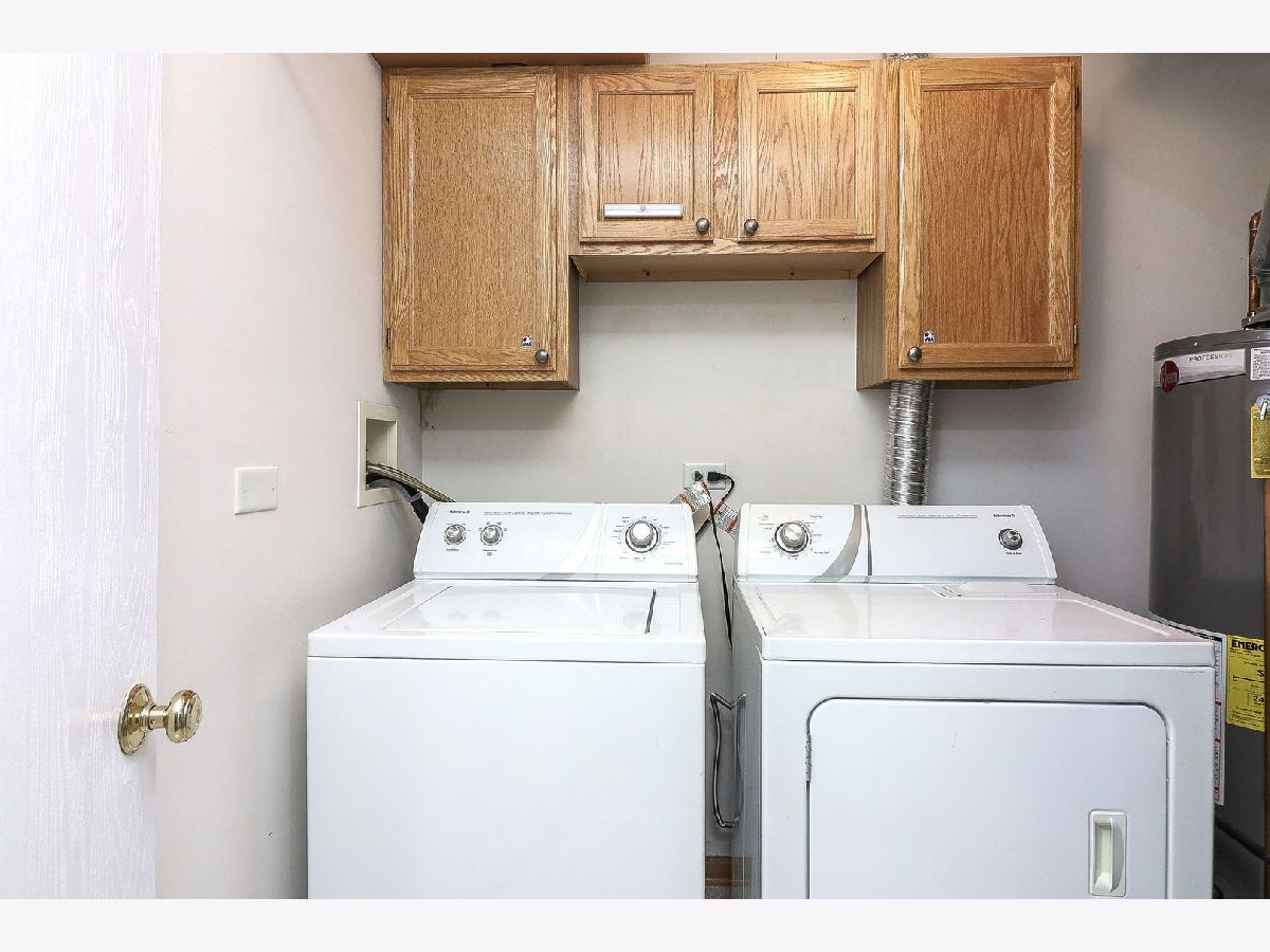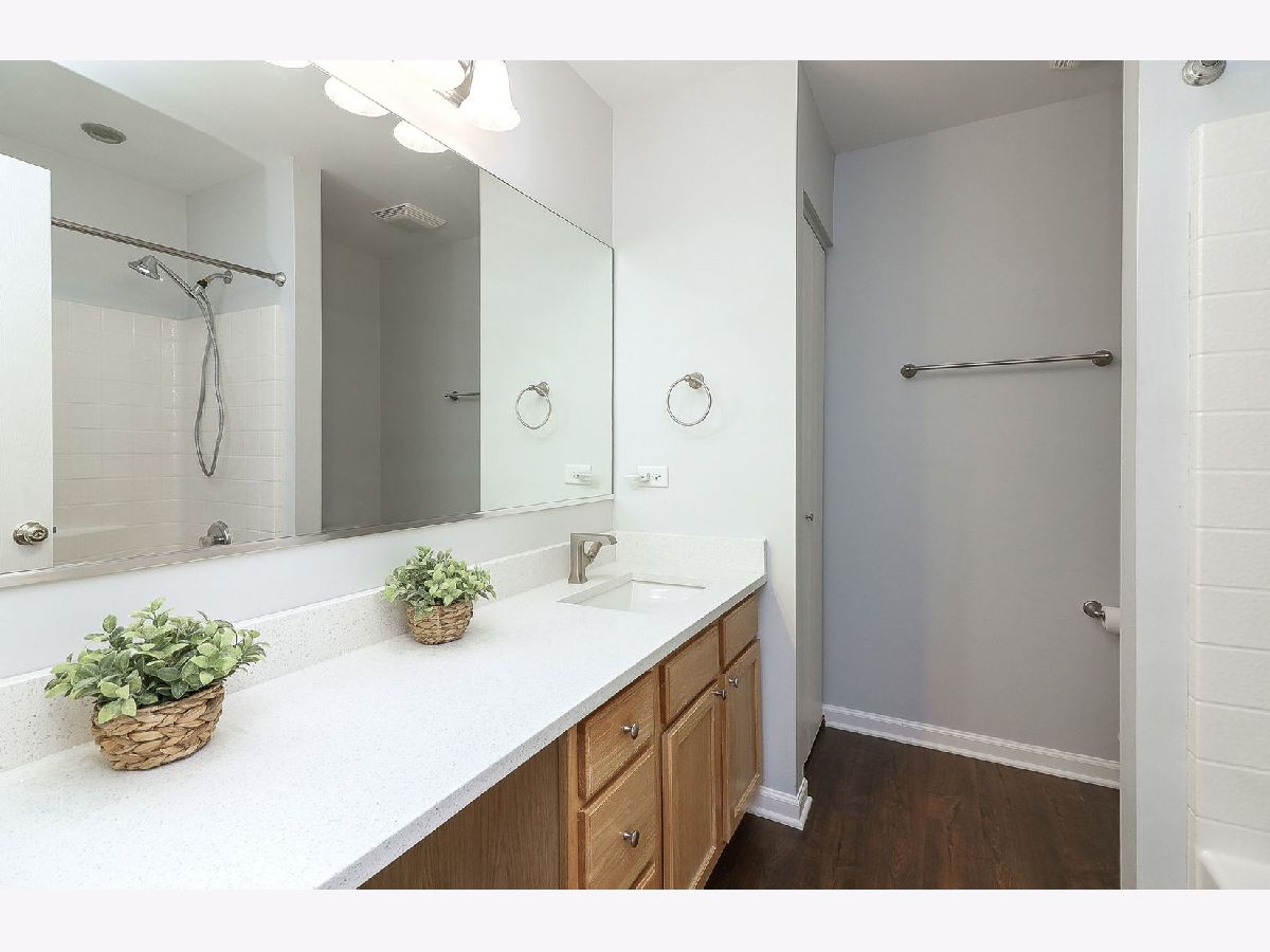 This beautifully designed two-story home offers both comfort and convenience, nestled in a prime location near shopping centers, top-rated schools, banks, great parks with playgrounds and bicycle paths, scenic walking and running trails. Within 3 miles proximity to Park n Ride station, offering easy acces to the city of Chicago. The first floor area has an open concept layout. The eat-in kitchen gets great natural light, featuring oak-colored storage cabinets with a built-in wine rack, quartz countertops, two deep stainless steel sinks, and new stainless steel appliances installed in 2024. Convenient powder room on the first floor and a coat closet, additional storage space under the stairs. Updated luxury vinyl plank flooring throughout the entire floor. The second floor offers two generously sized bedrooms with cathedral ceilings, walk-in closets, and private full bathrooms. The master bathroom includes a built-in dresser for added convenience. The second-floor laundry room is equipped with a large washer, dryer, and wall cabinets. The one-car garage is designed for functionality, featuring epoxy flooring, a built-in hobby table with lamps, extra shelving for storage, and an available ceiling-mounted electric heater and fan. The garage is also all set up for your electric car charger. The inviting outdoor space features mature, lush green trees that provide shade and tranquility, complementing the backyard patio-an ideal setting for relaxation or entertaining. This is an exceptional find for those seeking comfort and convenience! A must see as soon as possible!