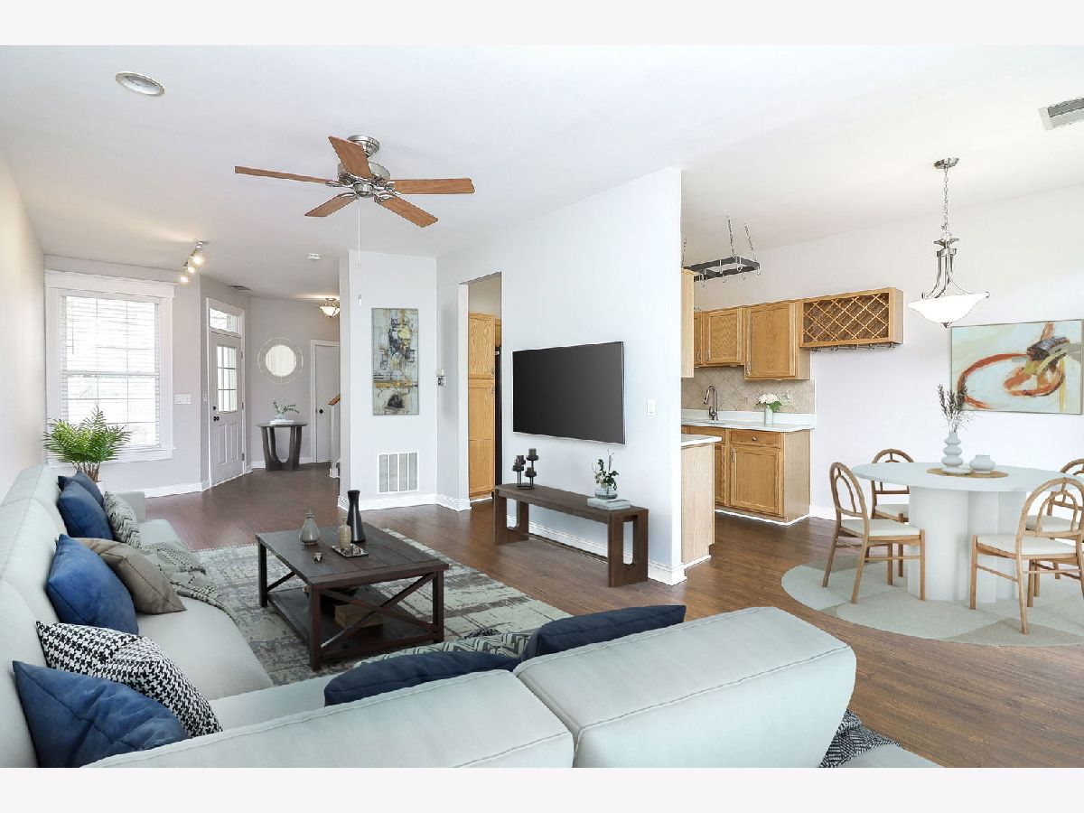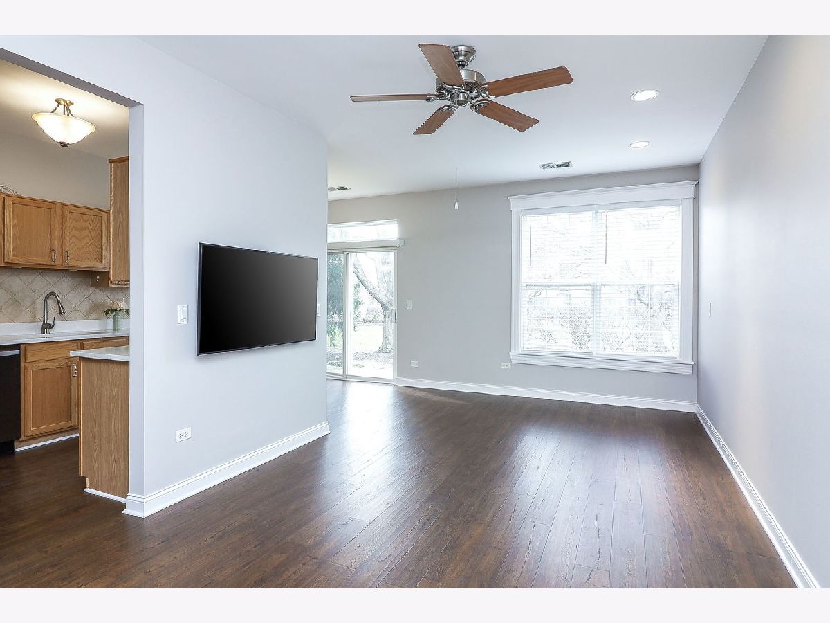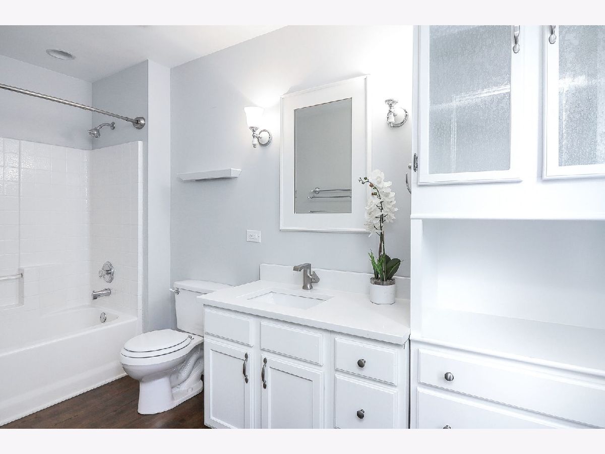 This beautifully designed two-story home offers both comfort and convenience, nestled in a prime location near shopping centers, top-rated schools, banks, great parks with playgrounds and bicycle paths, scenic walking and running trails. Within 3 miles proximity to Park n Ride station, offering easy acces to the city of Chicago. The first floor area has an open concept layout. The eat-in kitchen gets great natural light, featuring oak-colored storage cabinets with a built-in wine rack, quartz countertops, two deep stainless steel sinks, and new stainless steel appliances installed in 2024. Convenient powder room on the first floor and a coat closet, additional storage space under the stairs. Updated luxury vinyl plank flooring throughout the entire floor. The second floor offers two generously sized bedrooms with cathedral ceilings, walk-in closets, and private full bathrooms. The master bathroom includes a built-in dresser for added convenience. The second-floor laundry room is equipped with a large washer, dryer, and wall cabinets. The one-car garage is designed for functionality, featuring epoxy flooring, a built-in hobby table with lamps, extra shelving for storage, and an available ceiling-mounted electric heater and fan. The garage is also all set up for your electric car charger. The inviting outdoor space features mature, lush green trees that provide shade and tranquility, complementing the backyard patio-an ideal setting for relaxation or entertaining. This is an exceptional find for those seeking comfort and convenience! A must see as soon as possible!