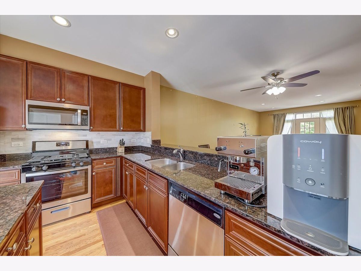 Absolutely nothing to do but move into this nicely updated 4Bed/3Bath townhome in Elmwood Park! 3 levels of living space. 1st floor w/en-suite bedroom, also perfect for home office or private family room. Freshly painted attached 2 car garage. 2nd floor features hardwood floors and recessed lighting throughout. Kitchen has new stainless steel stove, microwave and refrigerator, granite countertops w/large peninsula, subway tile backsplash, and private balcony w/new Trex decking. Large bright and sunny living room w/gas fireplace has floor-to-ceiling windows, and the Juliet balcony provides views of the beautiful tree-lined courtyard. Washer and dryer off the kitchen. 3rd floor w/3 nicely sized bedrooms including primary bedroom that has en suite bath with double vanities and large walk-in closet. All 3 bathrooms have been refreshed with brand new quartz countertops and new fixtures. Very low monthly HOA that covers landscaping, building exterior care, snow removal, and insurance. Excellent location to Metra, schools, Central Park and I-290.