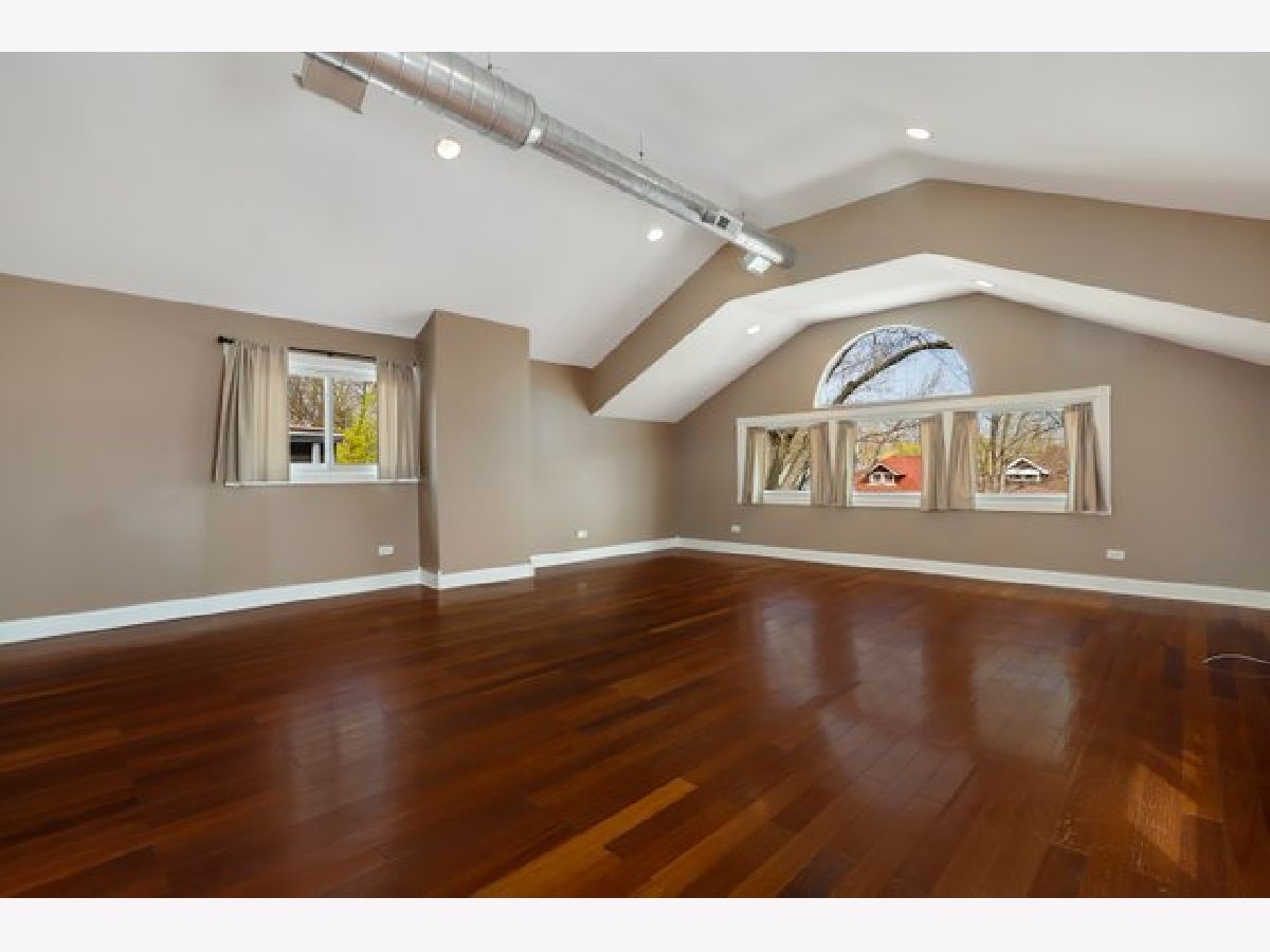 Sun drenched and spacious 5 bedroom, 3 full bath beauty sits in the heart of West Ridge. Main level with hardwood floors throughout, full bath, bedroom and extra wide living/dining space. Newly renovated kitchen with custom white cabinets, quartz counter tops, stainless steel appliances and gas lit fireplace. Back breakfast/office/flex room leads to two story back deck, landscaped yard and patio plus 2.5 car garage. Upper level has three bedrooms plus full bath (separate shower and tub) and hardwood floors throughout. French doors open the way to an expansive primary bedroom (500+ sq ft) with a soaring ceiling. Lower level with recreation space, bedroom and full bath. Blocks to both Warren and Indian Boundary parks and minutes to expressway and trains.